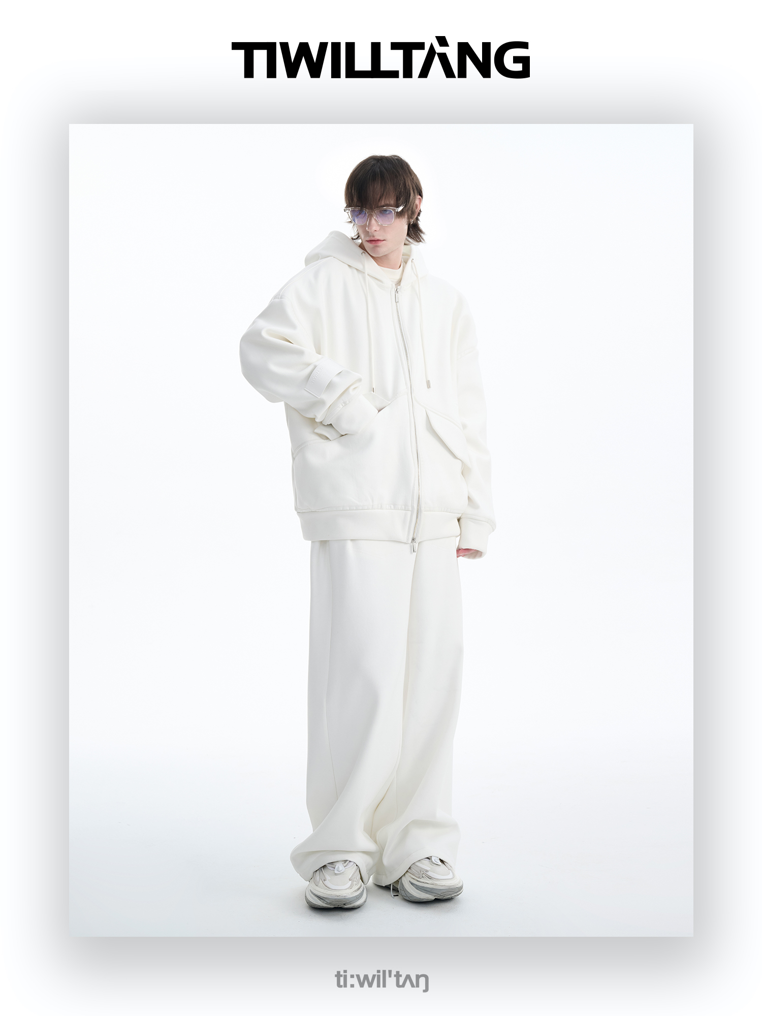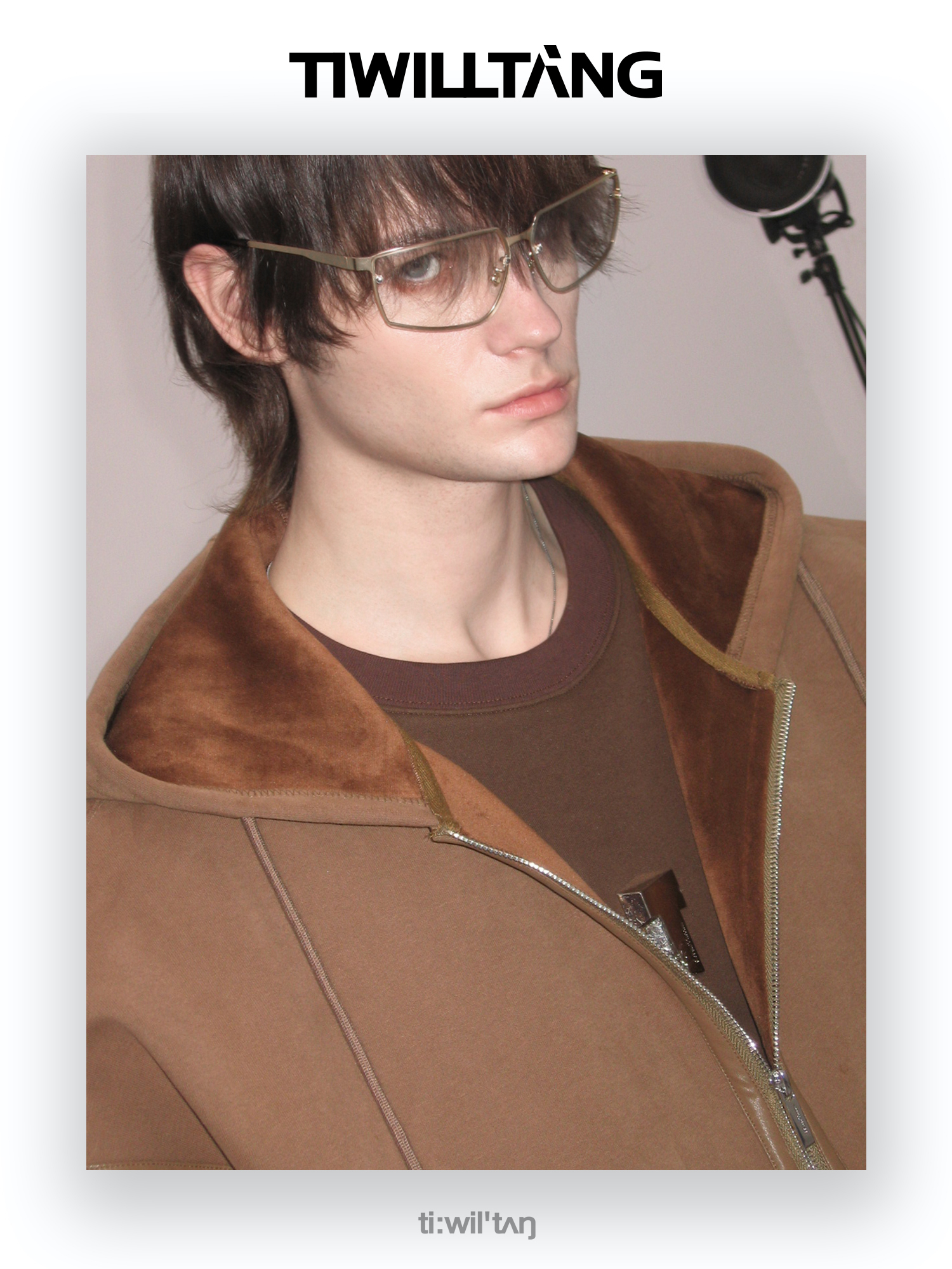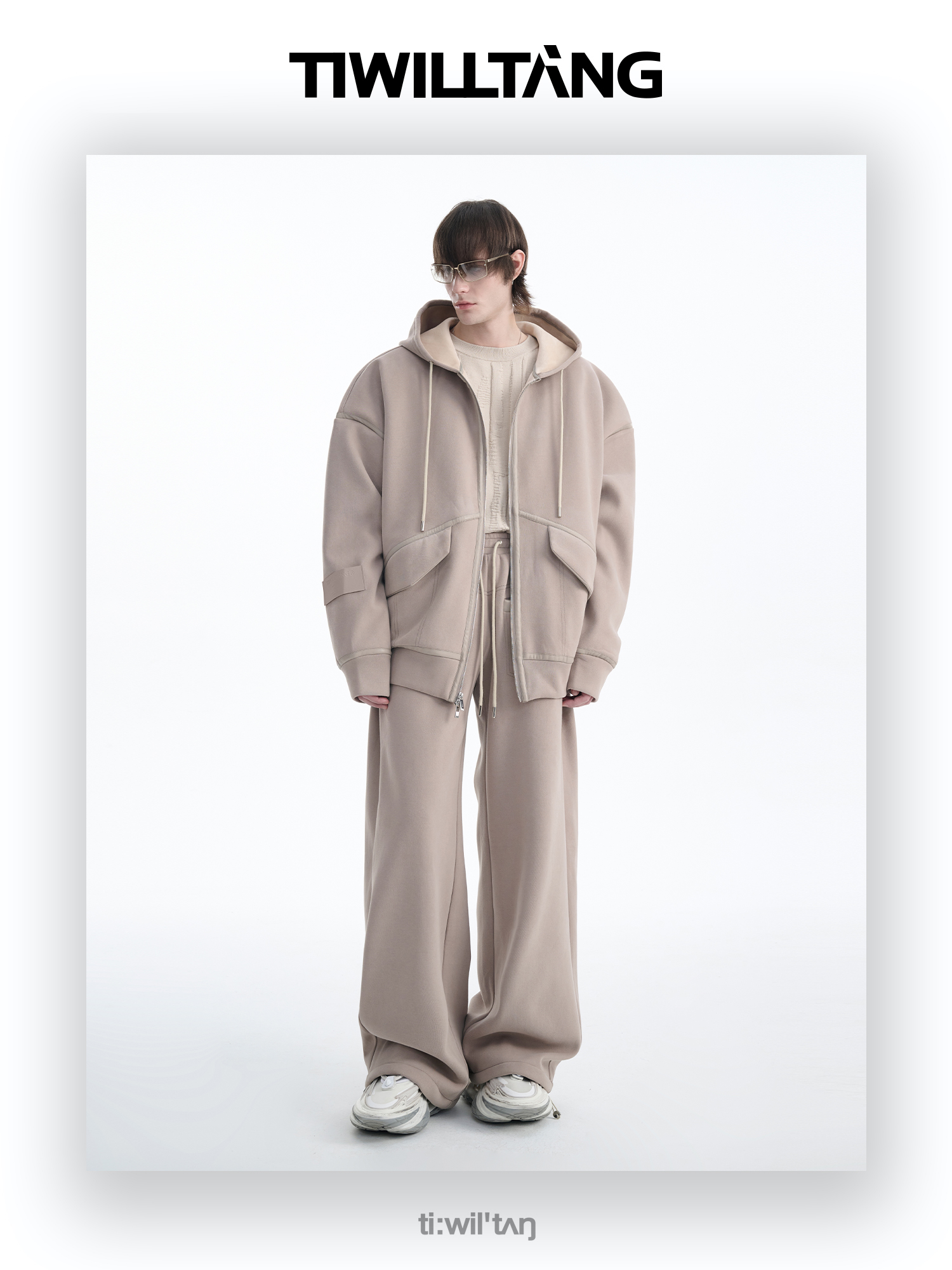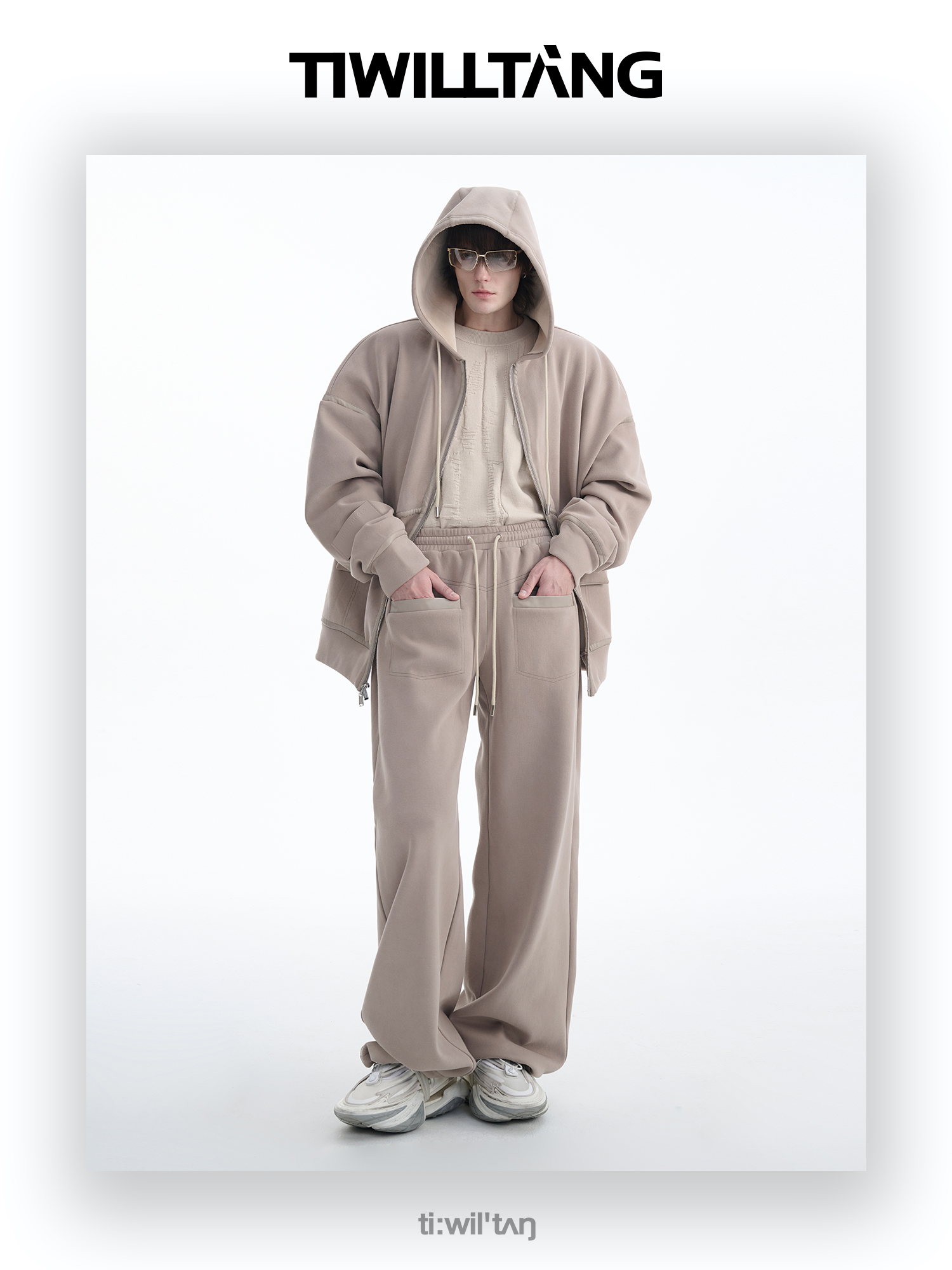 TIWILLTANG启世录“凛迹宇轶”重磅加绒加厚拼皮分割连帽慵懒卫衣