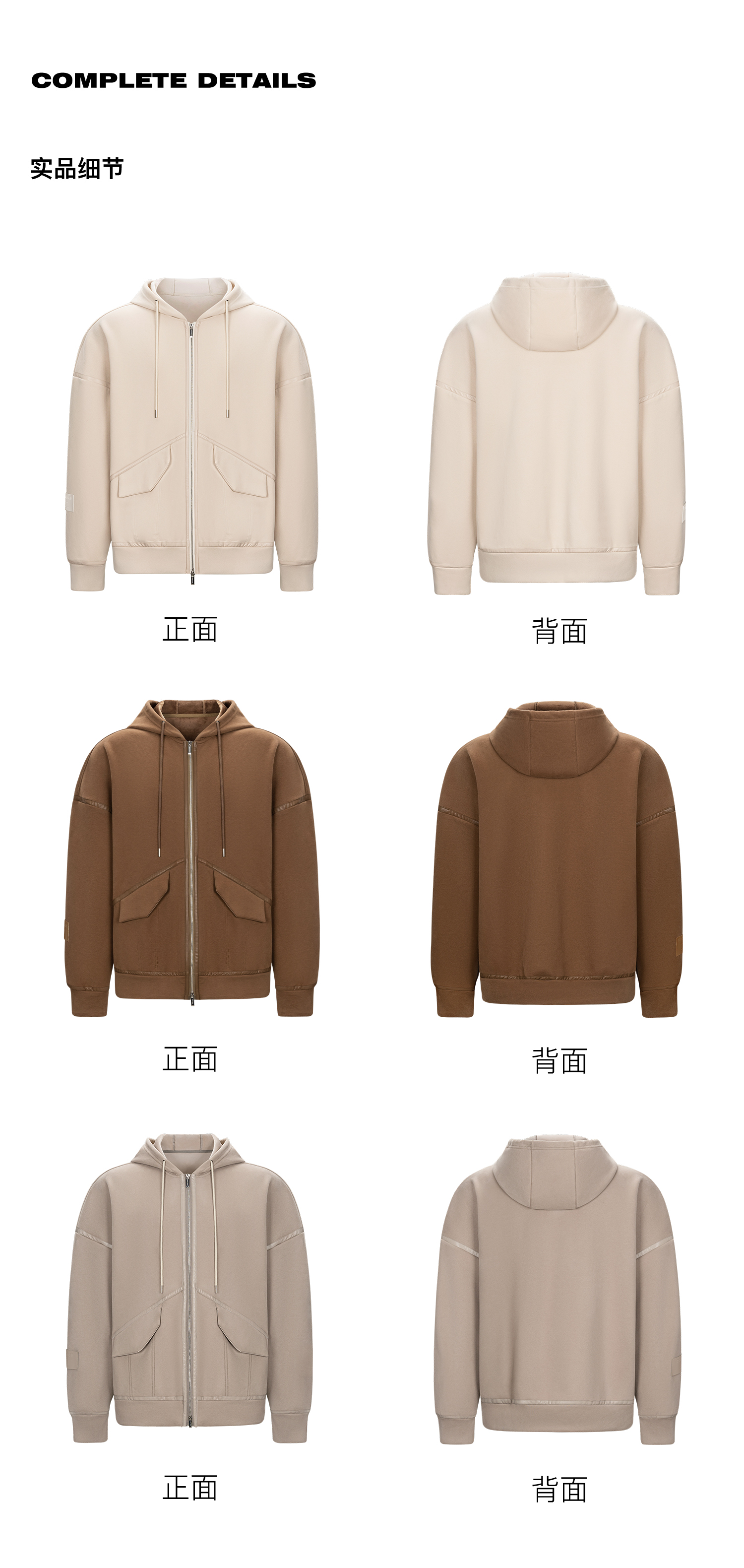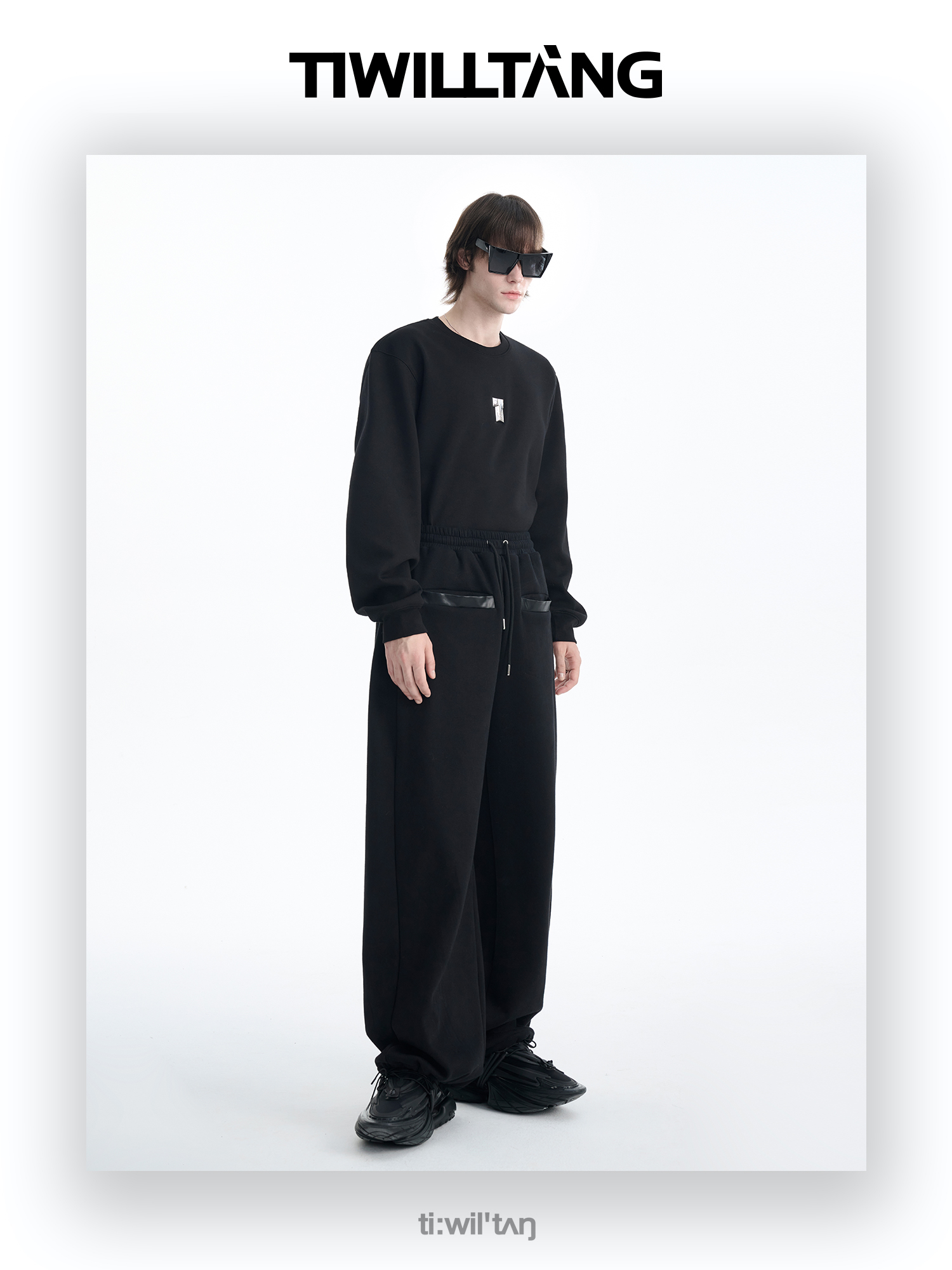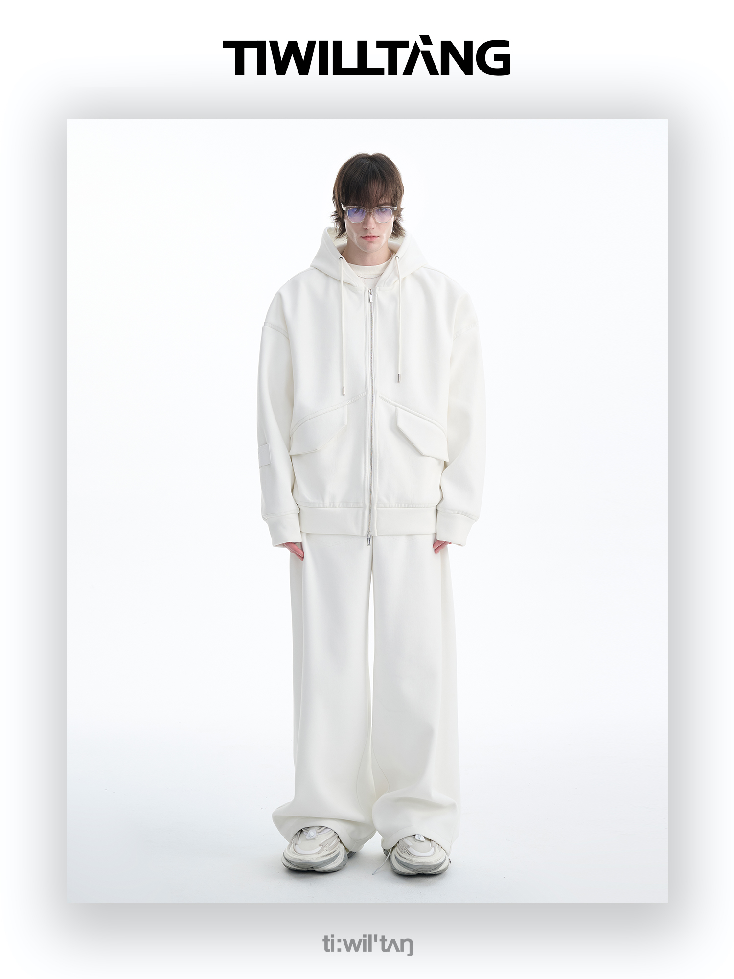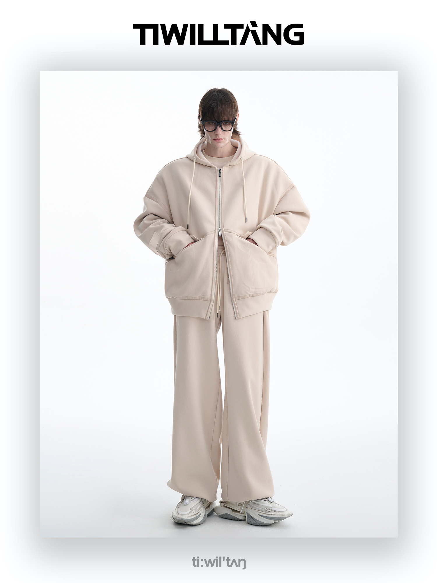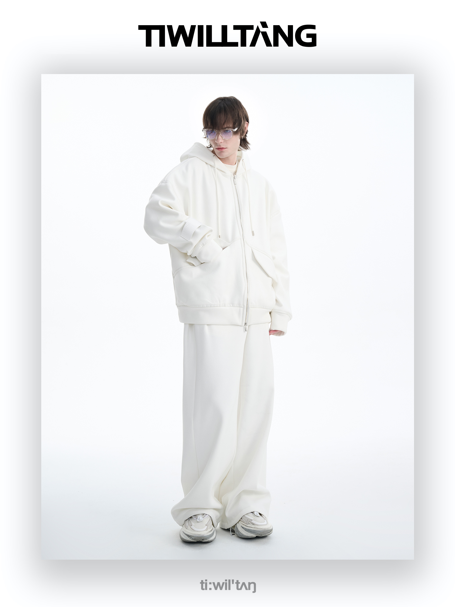 TIWILLTANG启世录“凛迹宇轶”重磅加绒加厚拼皮分割连帽慵懒卫衣