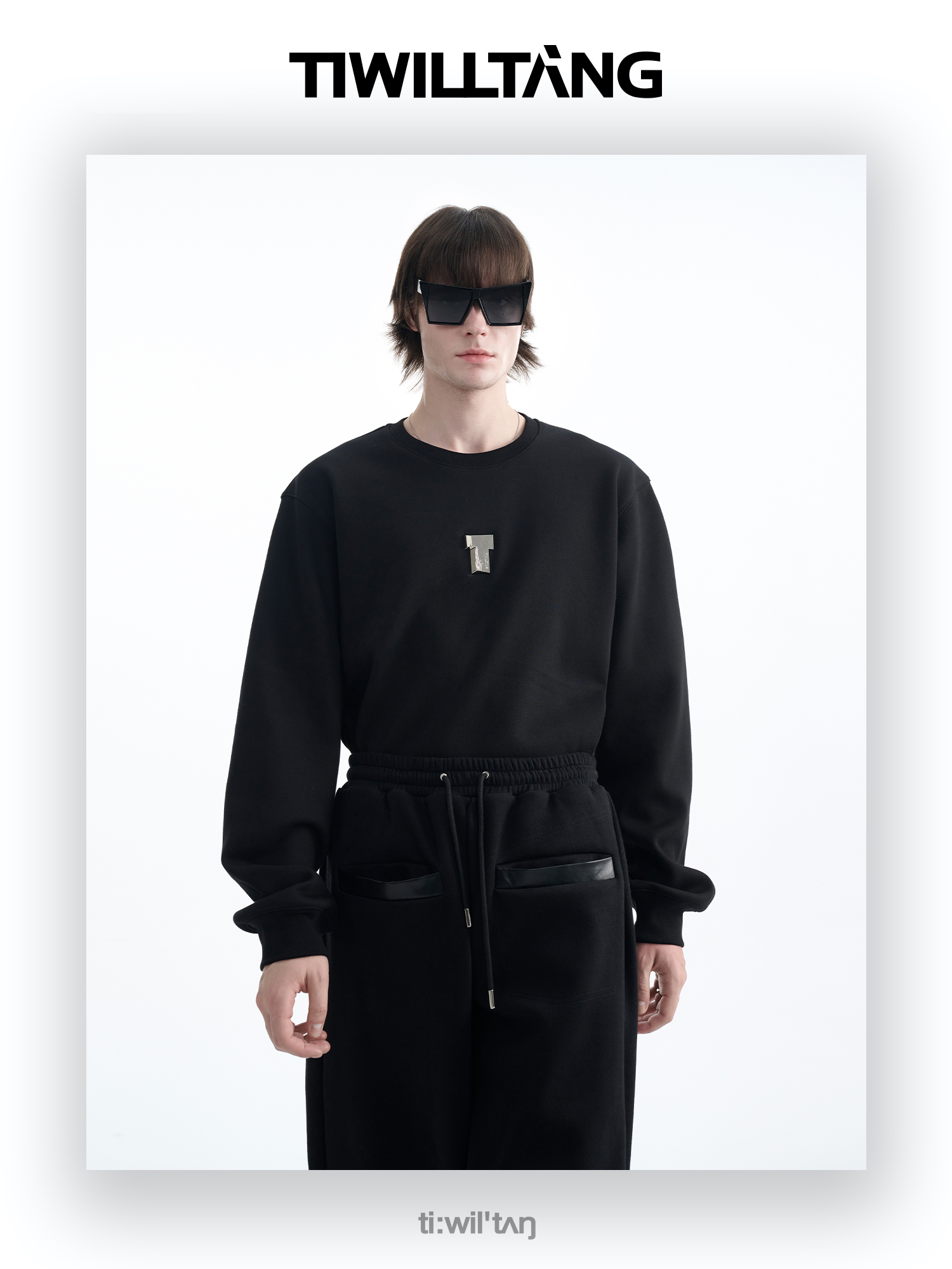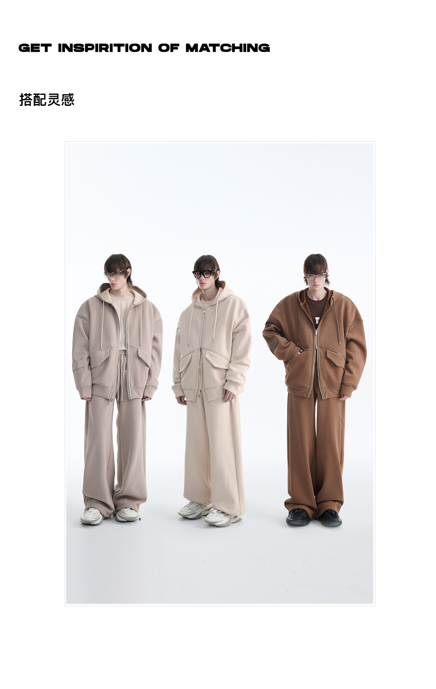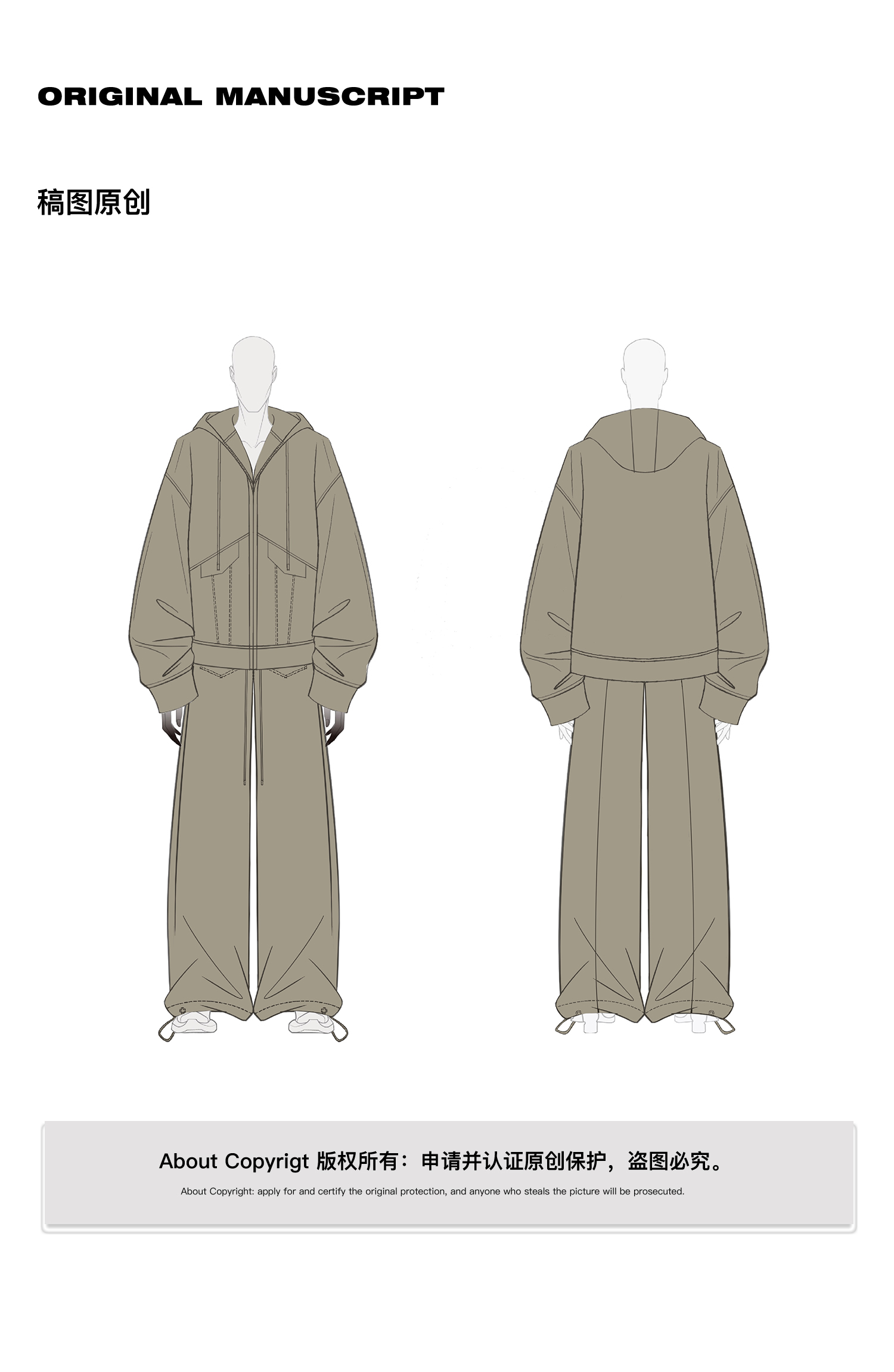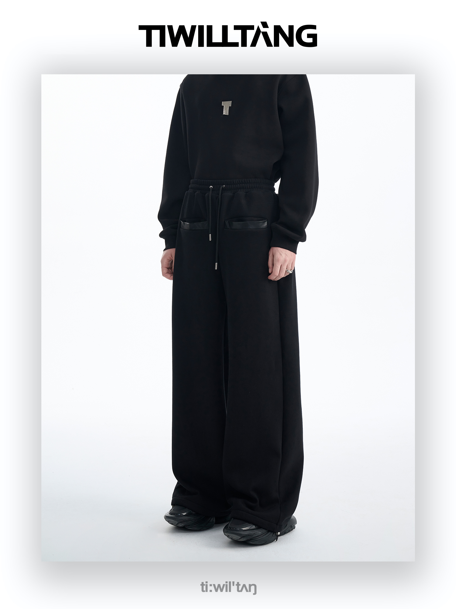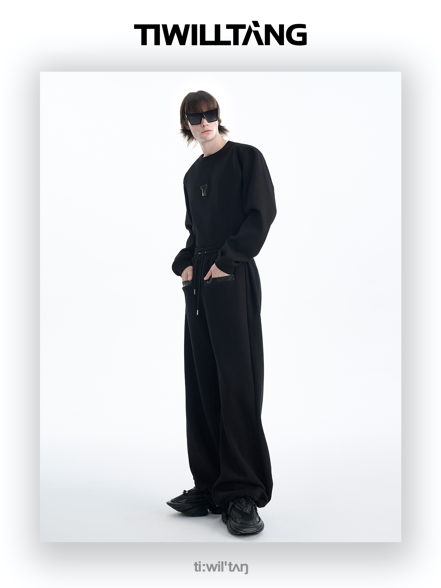 TIWILLTANG启世录“凛迹宇轶”重磅加绒加厚拼皮分割连帽慵懒卫衣