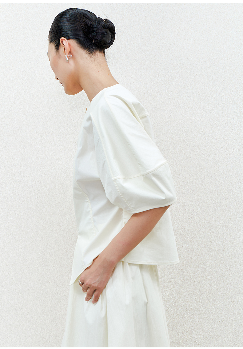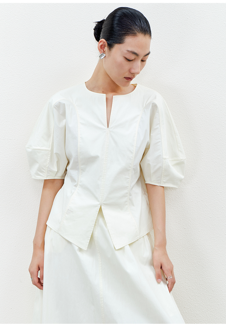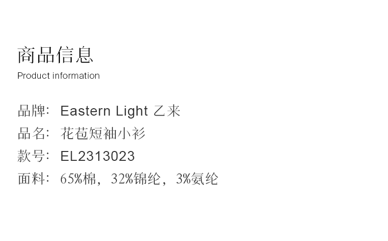 Eastern Light乙来【明星同款】短袖T恤女新款花苞短袖小衫法式上衣