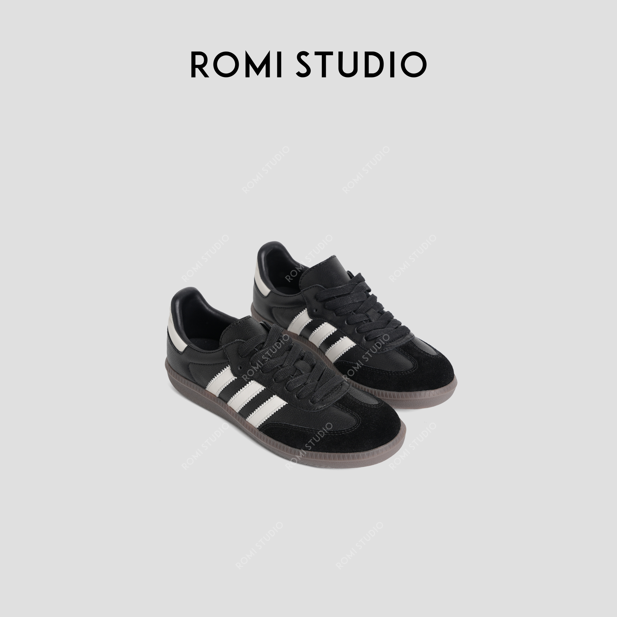 ROMI STUDIO“美式复古”牛反绒拼羊皮撞色耐磨平底德训鞋407L4032