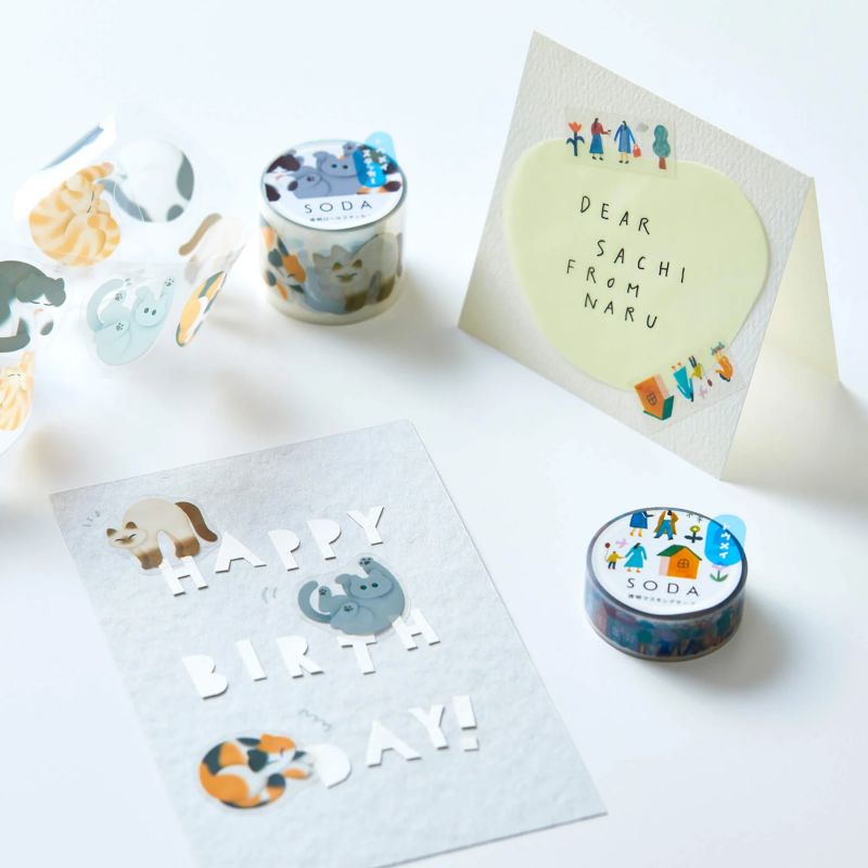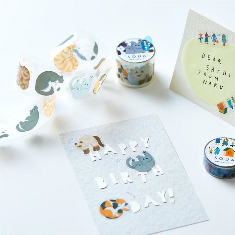 锦宫 soda第5弹高透明防水贴纸胶带手帐diy猫咪金粉
