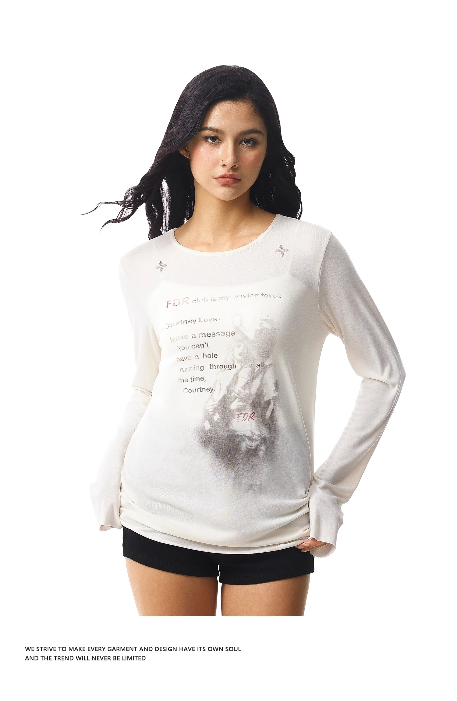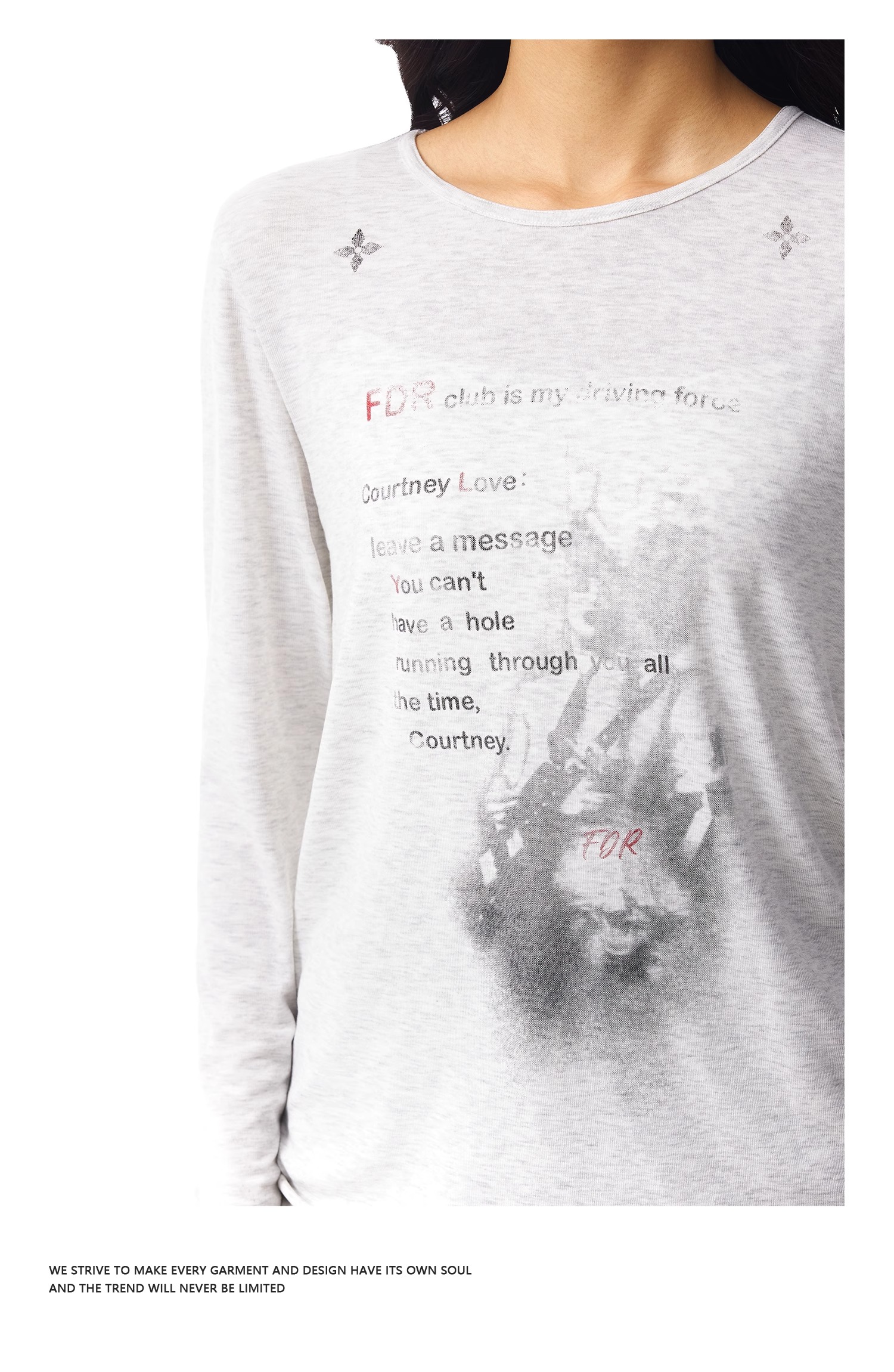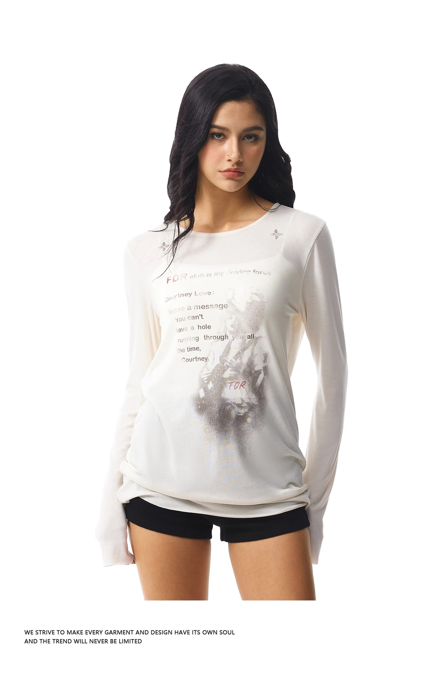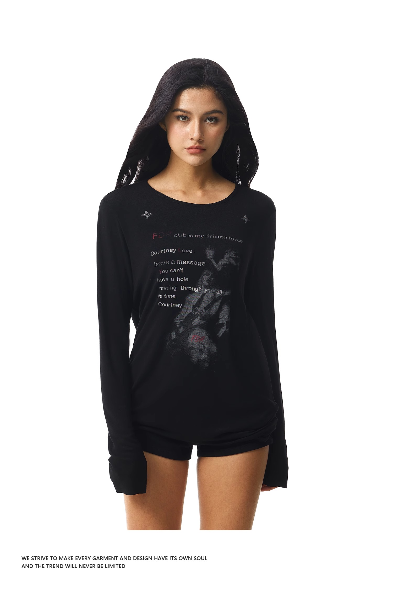 FDR官方店 美式辣妹防晒印花长袖T恤女春夏薄款圆领体恤上衣