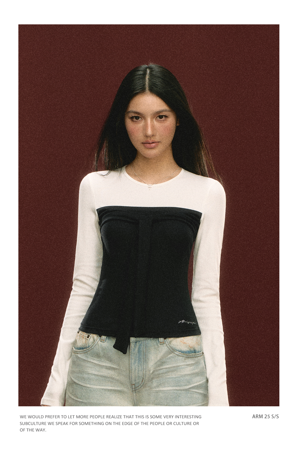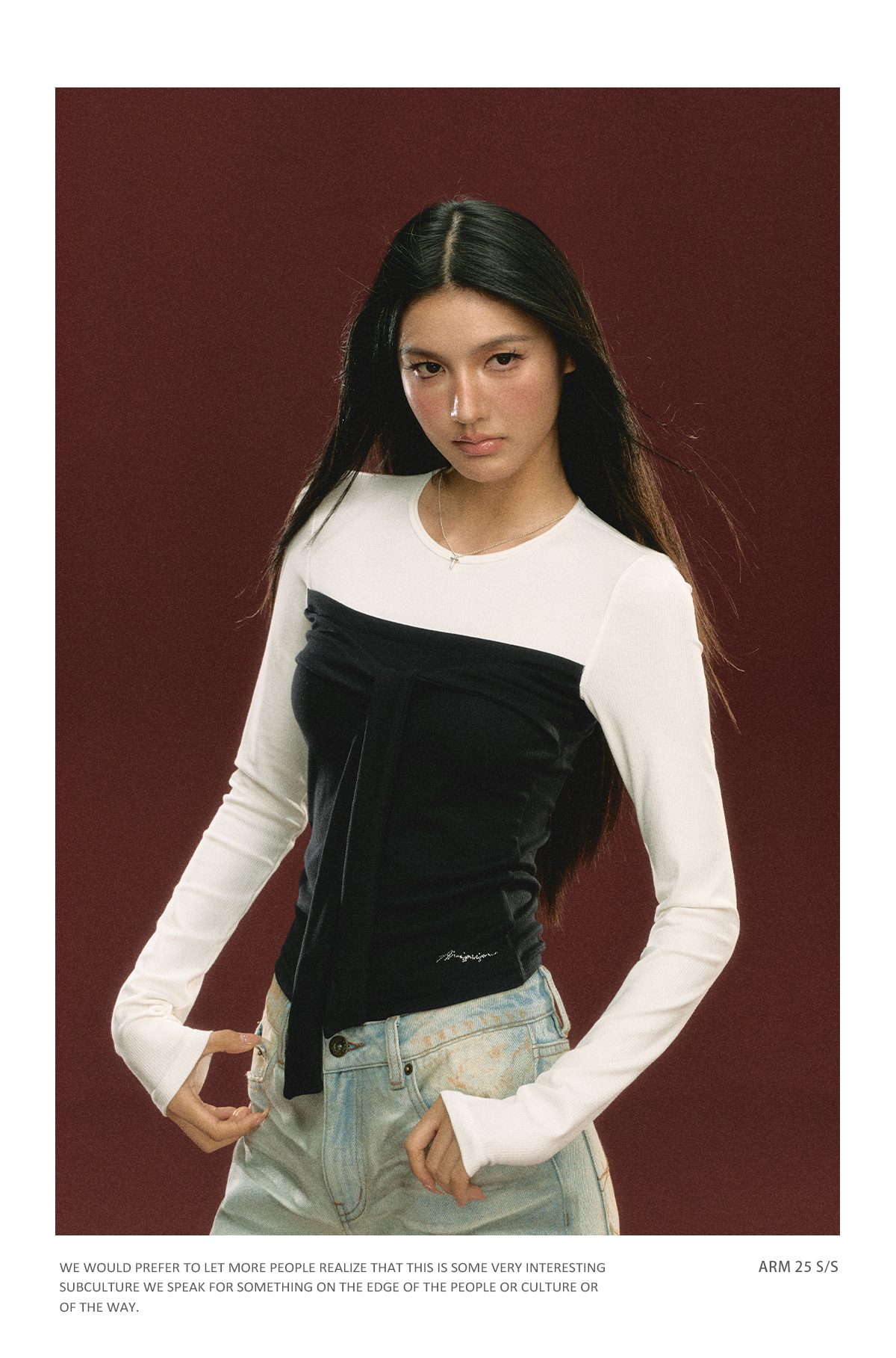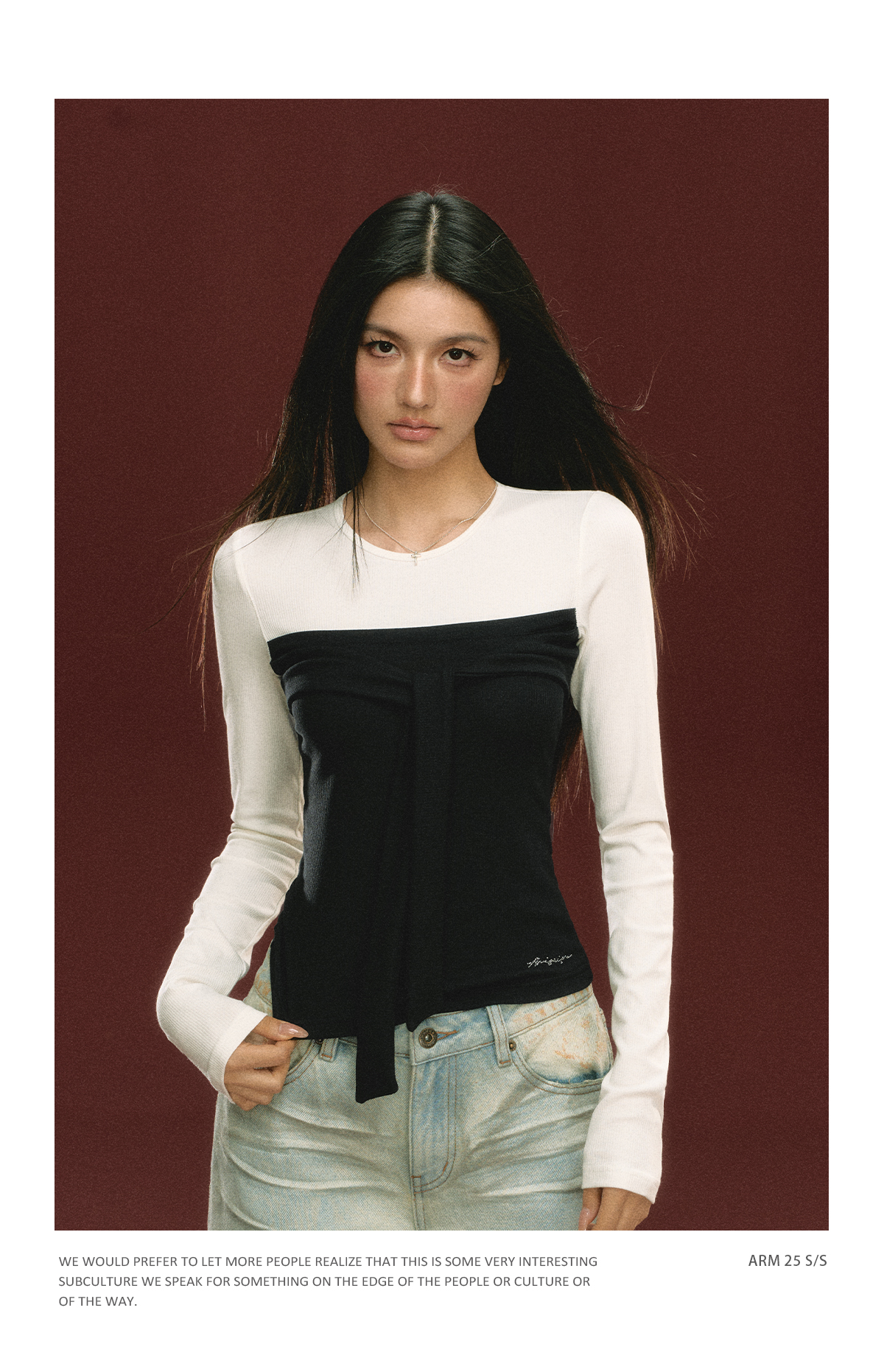 Ariseism 美式设计感假两件长袖T恤女春季新款打底修身短款上衣