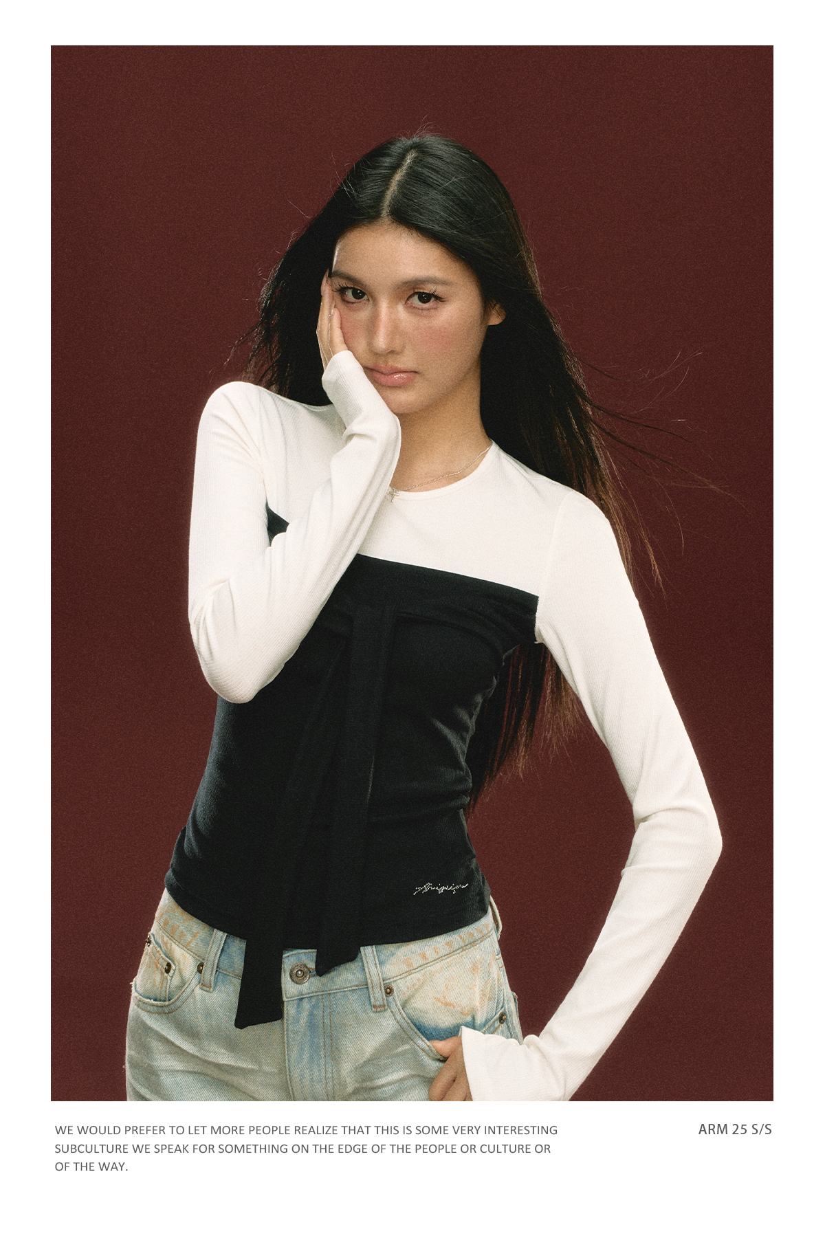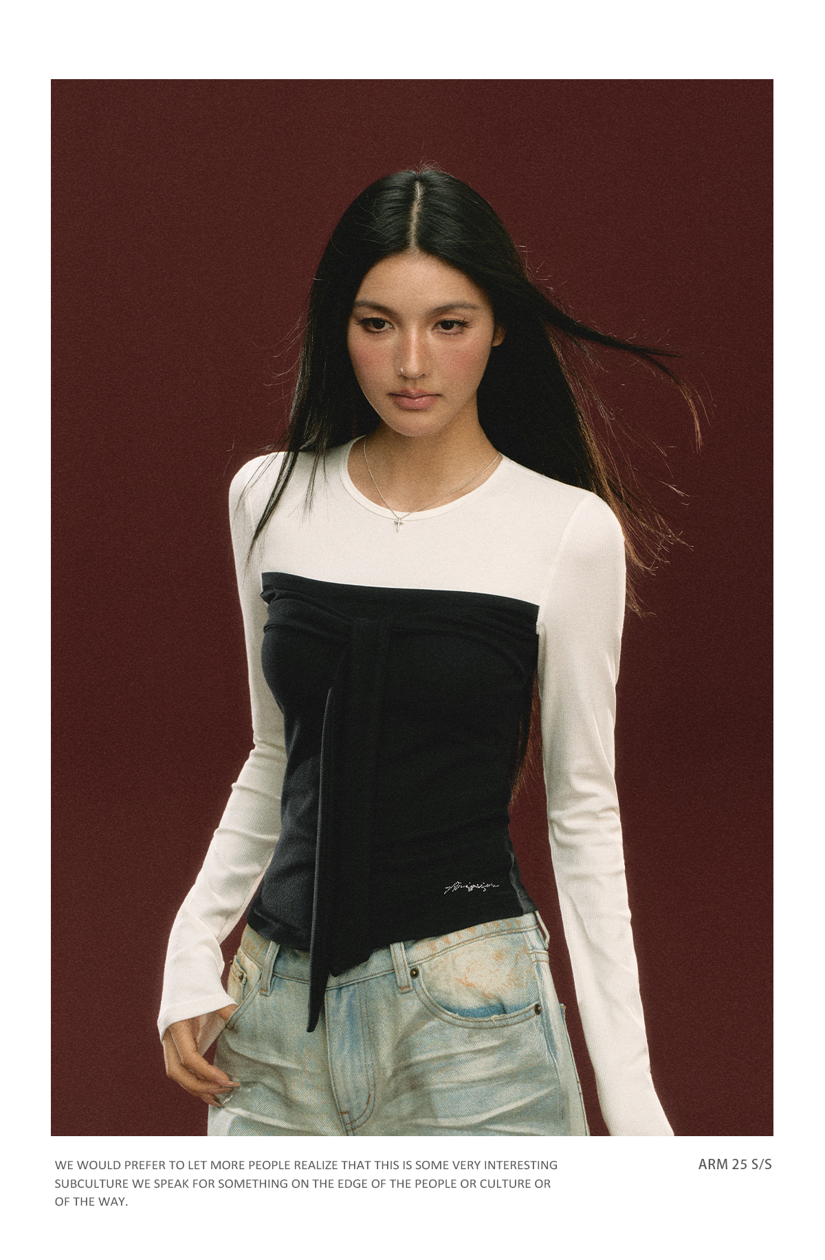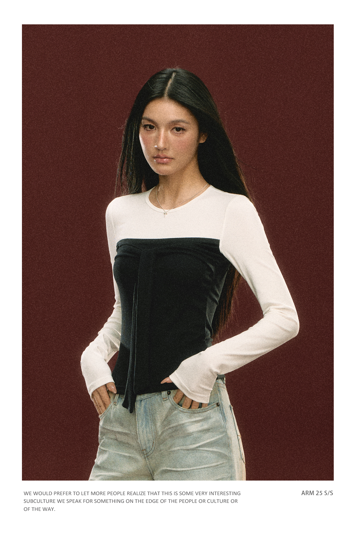 Ariseism 美式设计感假两件长袖T恤女春季新款打底修身短款上衣