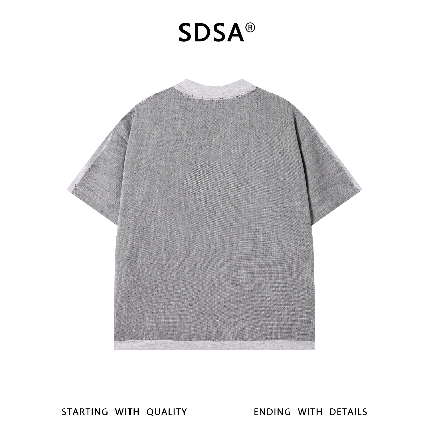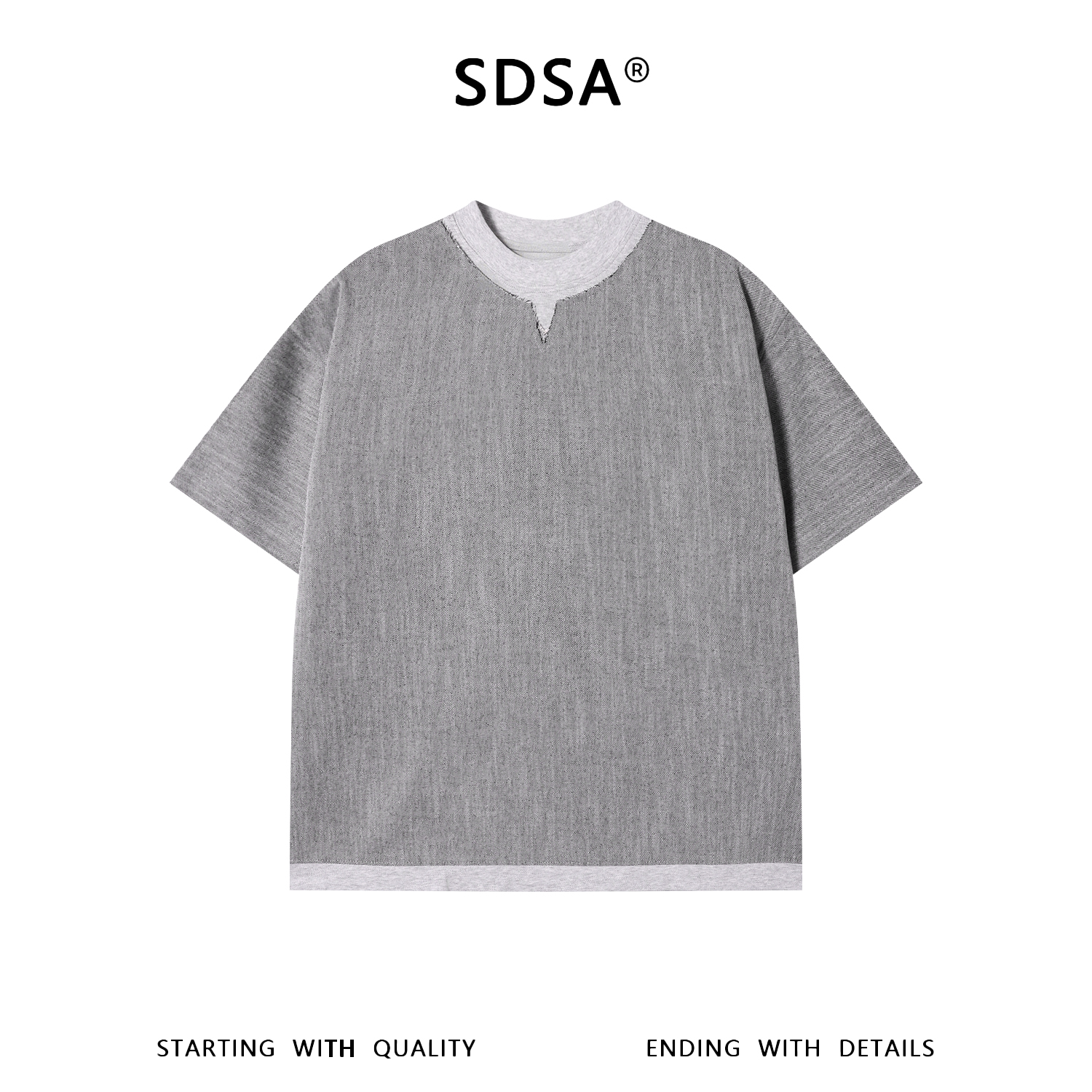 SDSA男装2026新款高贵轻奢时尚拼接撞色肌理感圆领短袖T恤百搭潮