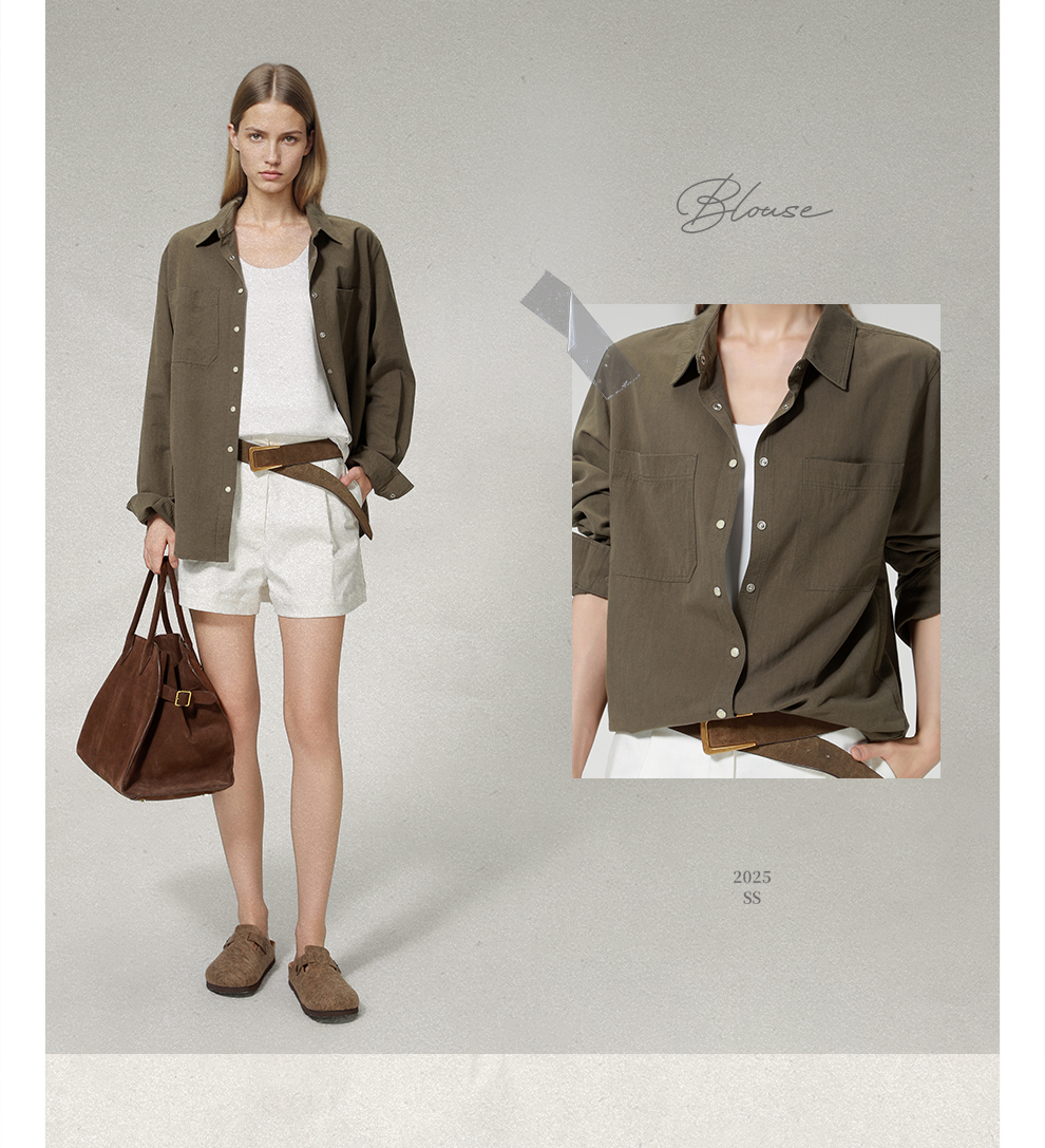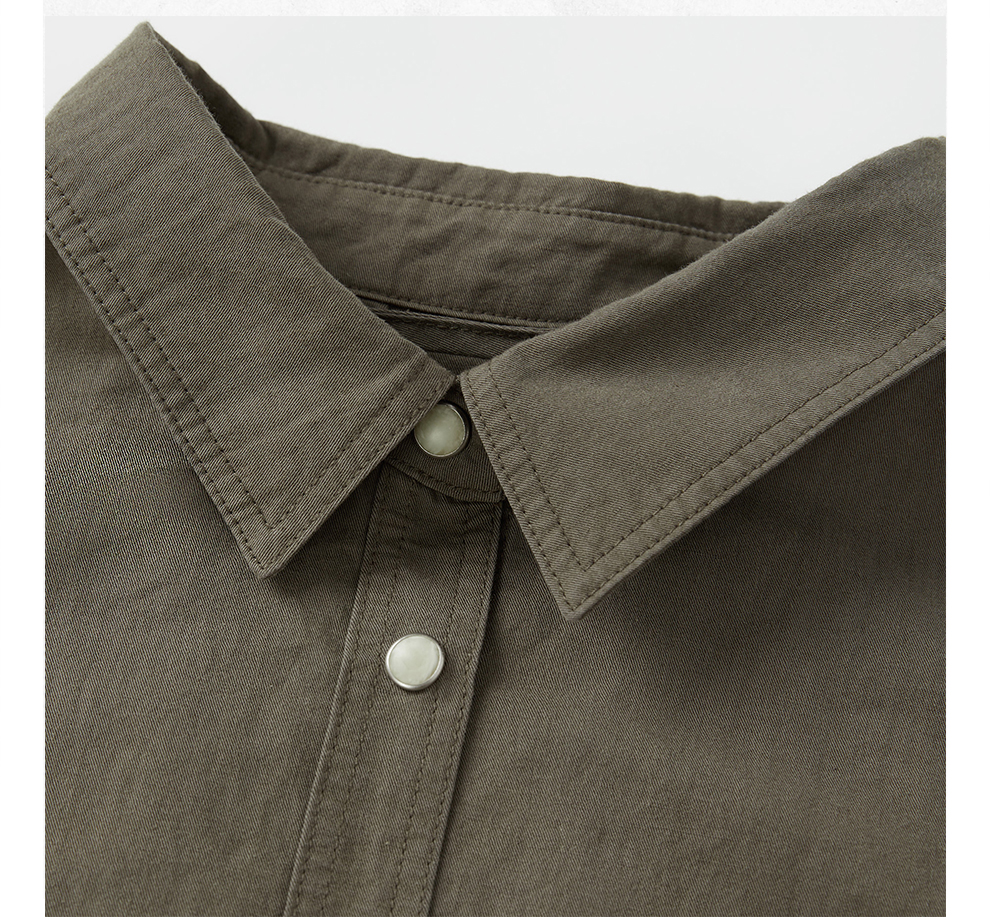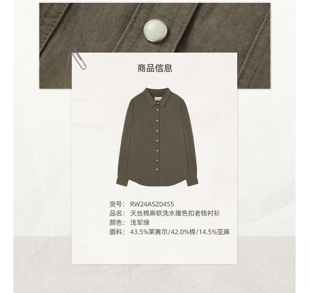 ROMI STUDIO“复古休闲”天丝棉麻软洗水撞色扣贴袋衬衣RW24ASZ0455
