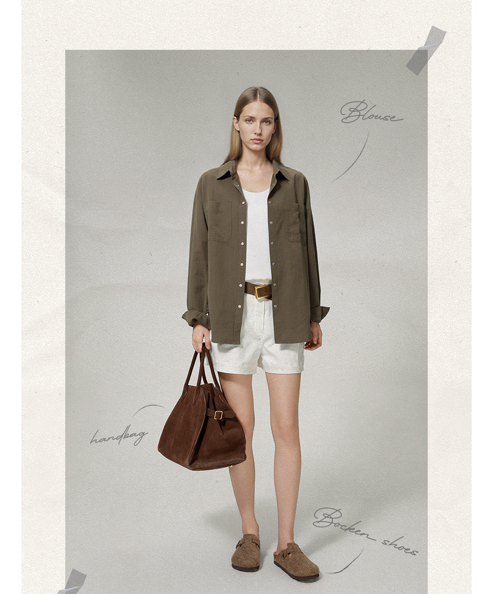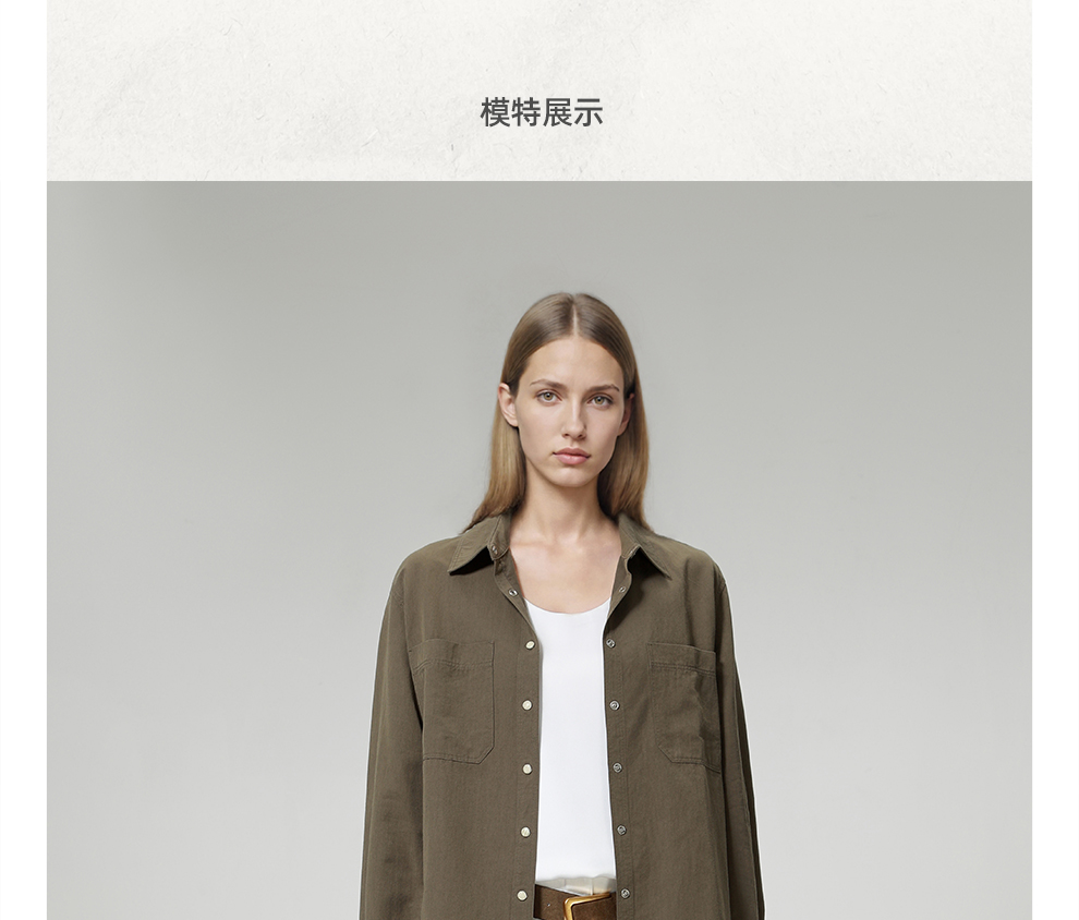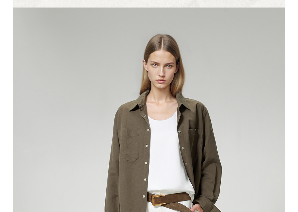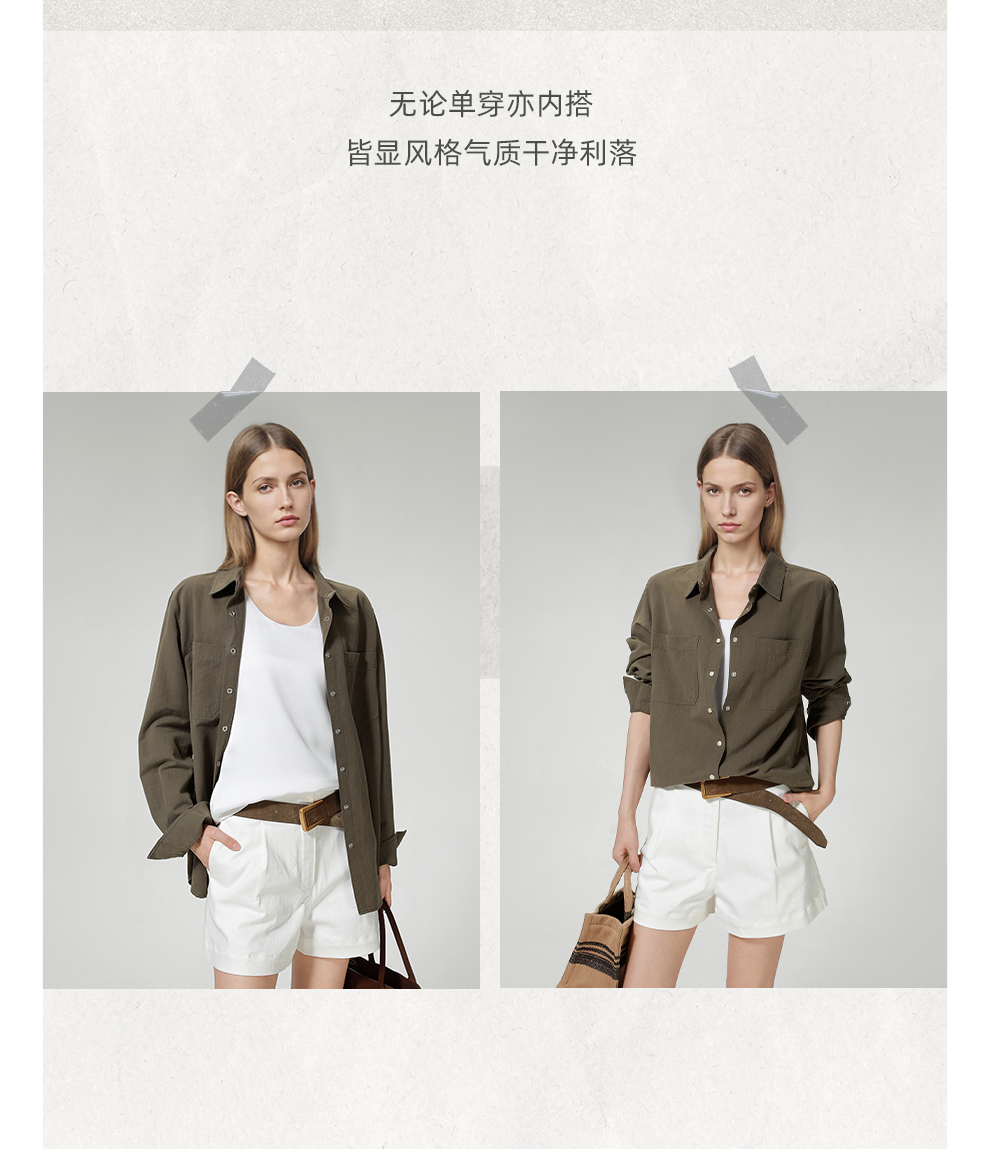 ROMI STUDIO“复古休闲”天丝棉麻软洗水撞色扣贴袋衬衣RW24ASZ0455