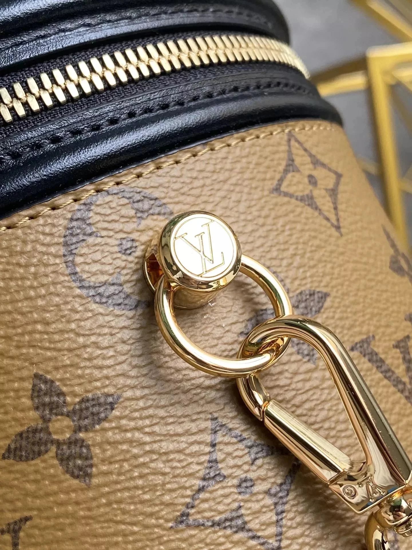 驴家 圆桶包 VANITY 手袋 小号,尺寸15.0x 17.0x 15.0 cm(配齐全套包装) 借鉴历史悠久的 Cannes化妆箱造型,女装艺术总监Nicolas Ghesqui re以此款半硬质手袋重现昔日经典的魅力。 Monogram与Monogram Reverse涂层帆布混合面料,充满传统特色的外观设计,十分雅致。配有顶部手柄和可脱卸皮革肩带,提供多种背携方式。