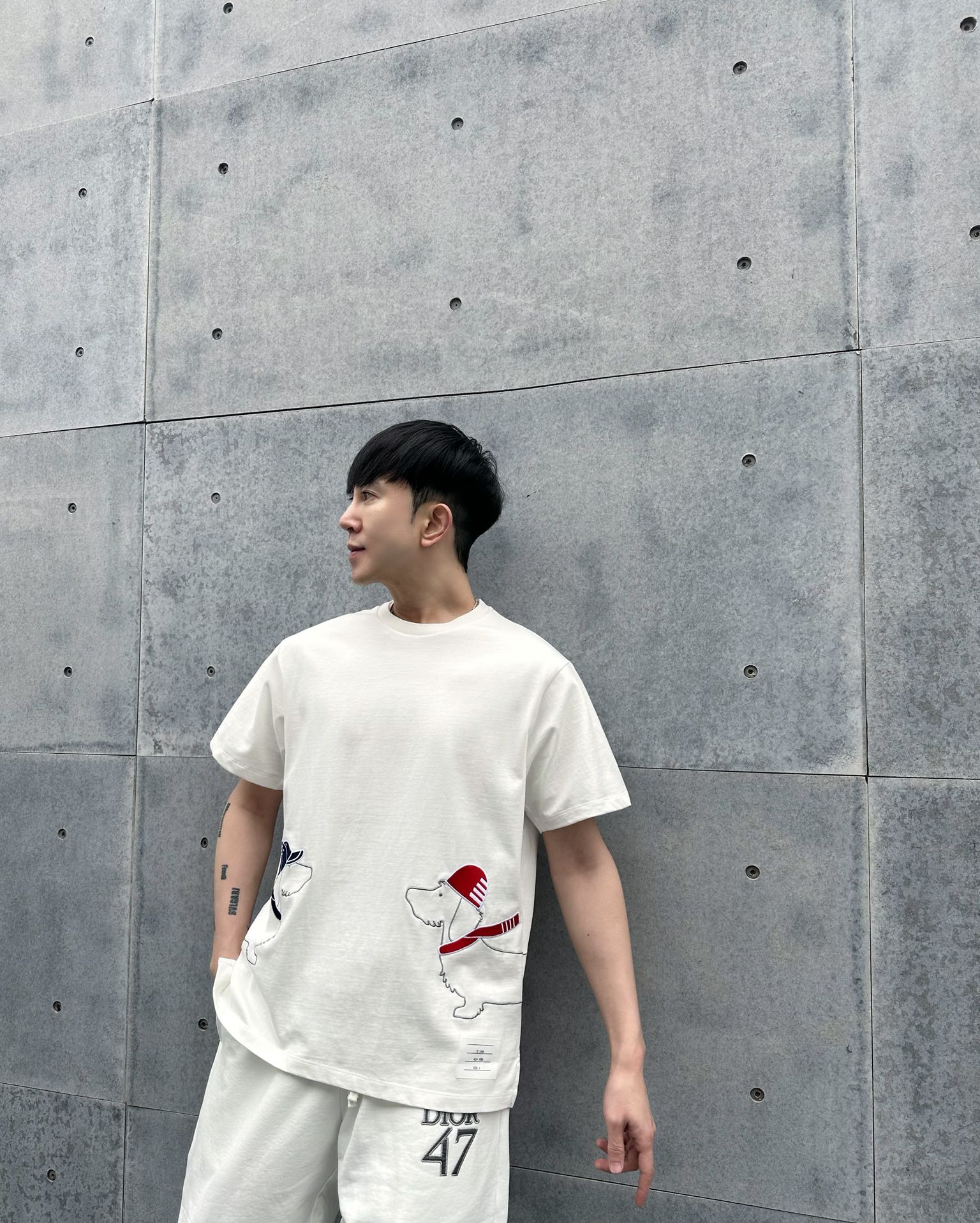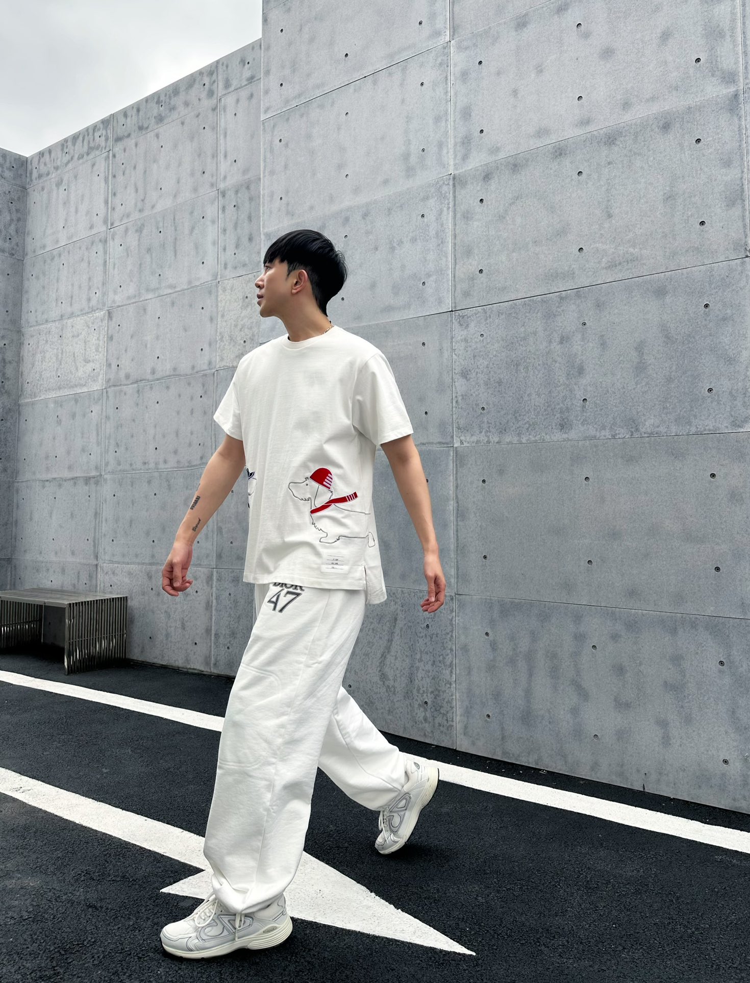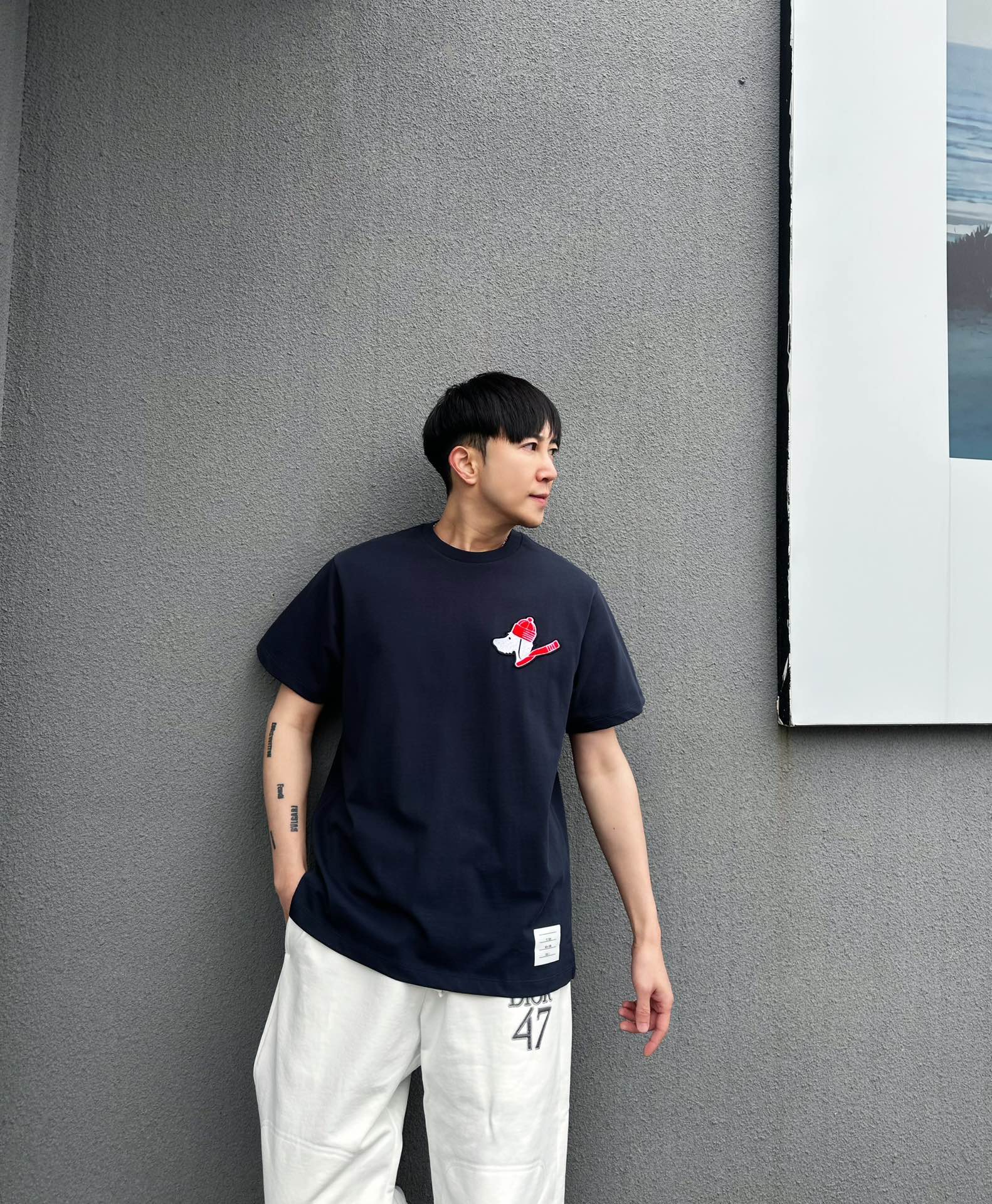 T*B 24春夏新款大幅狗狗刺绣饰短袖 T 恤