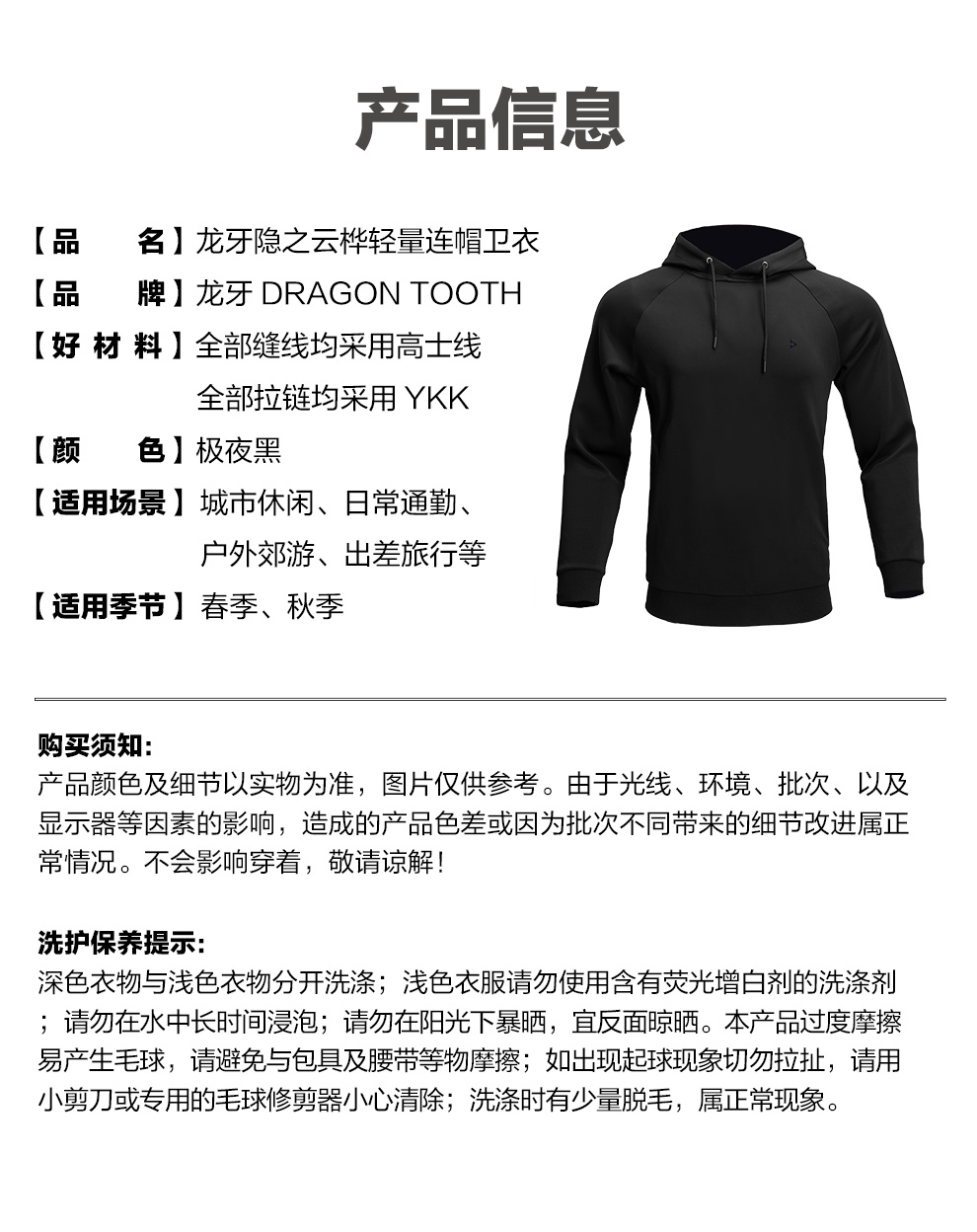 隐之云桦轻量连帽卫衣休闲百搭户外商务男春秋时尚潮流外套