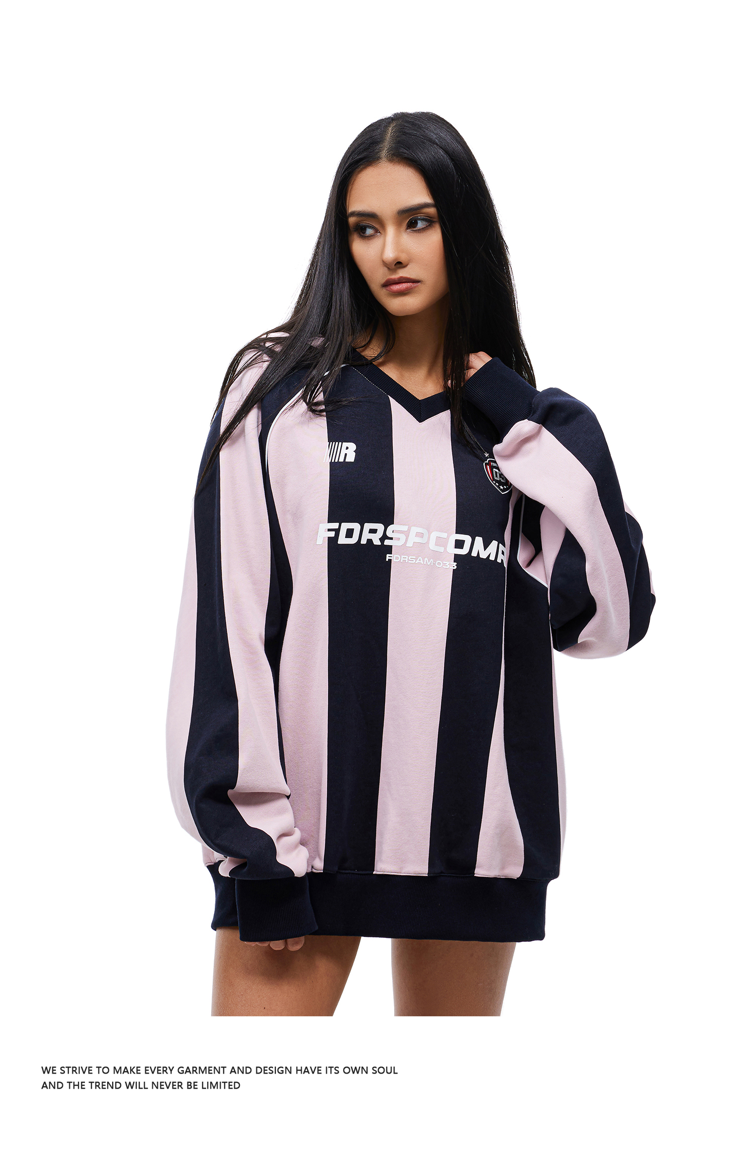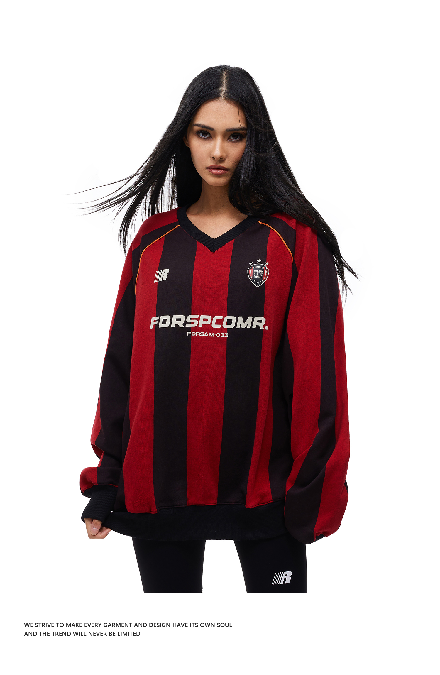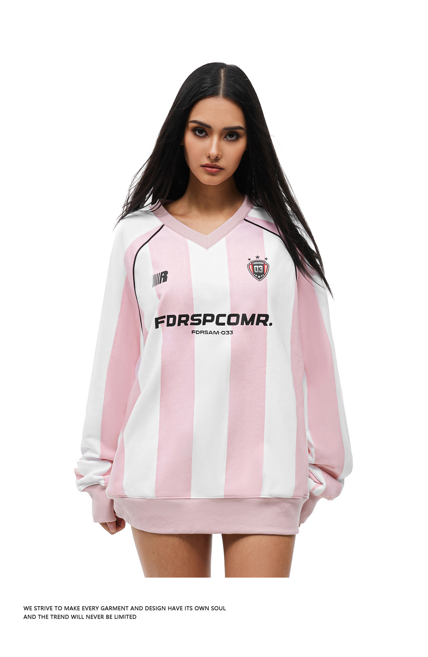 FDR官方店 徽章V领条纹美式卫衣男女秋季重磅情侣装运动上衣球衣