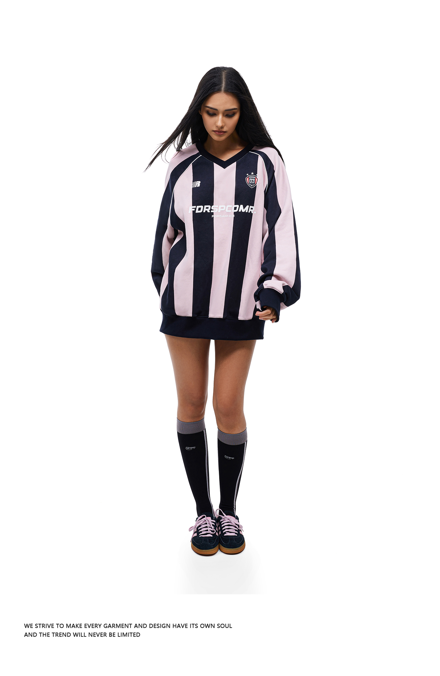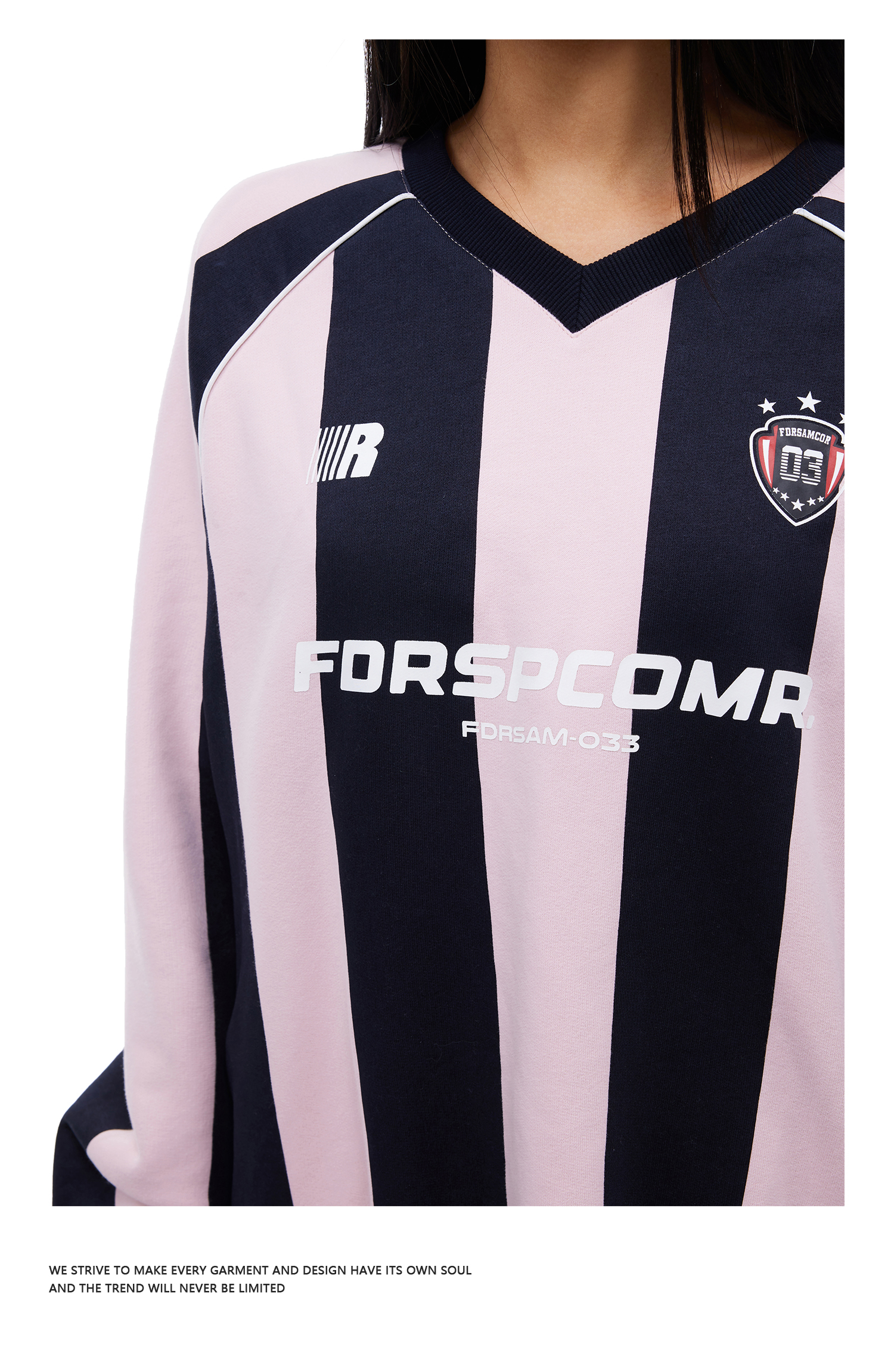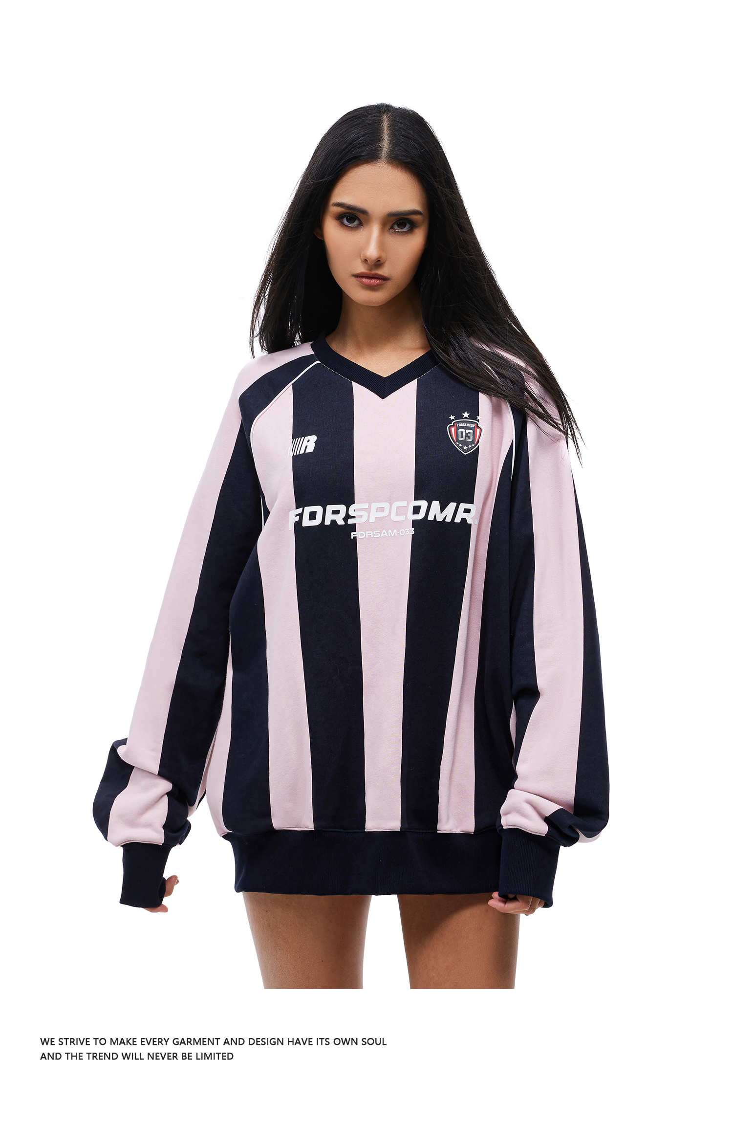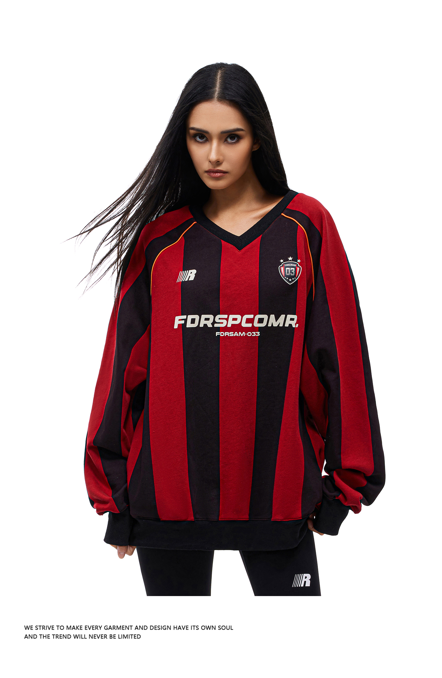 FDR官方店 徽章V领条纹美式卫衣男女秋季重磅情侣装运动上衣球衣