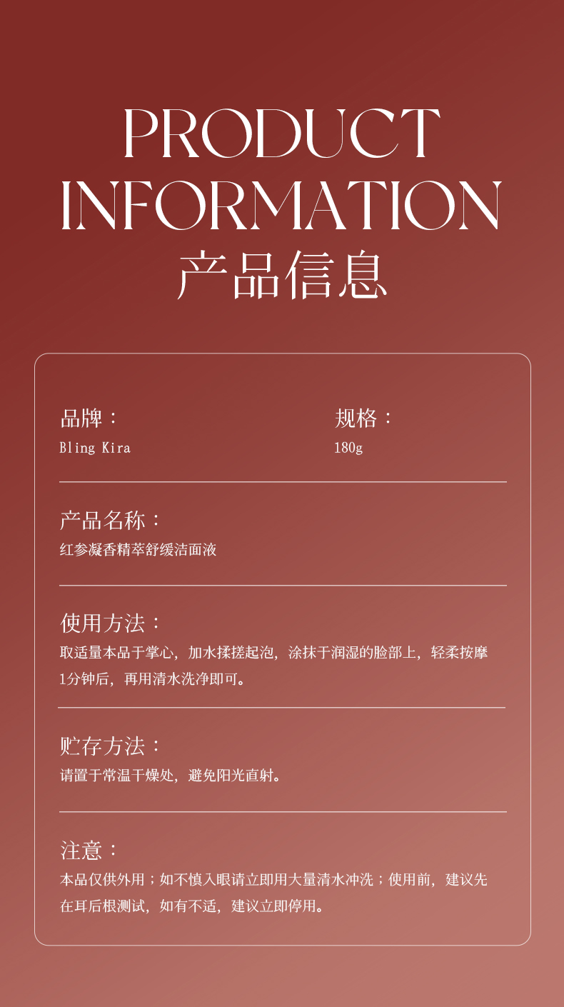 Bling Kira红参凝香精萃舒缓洁面液