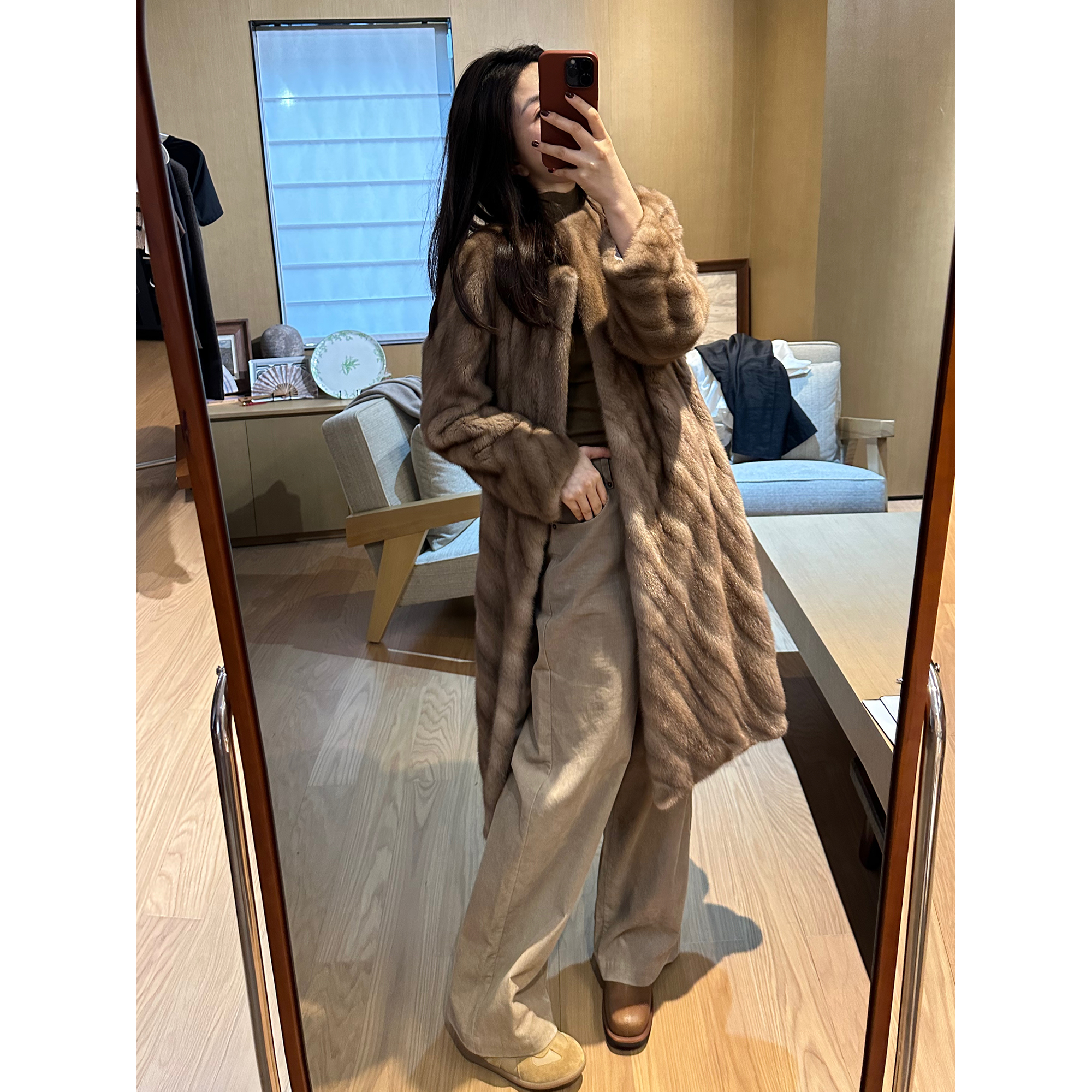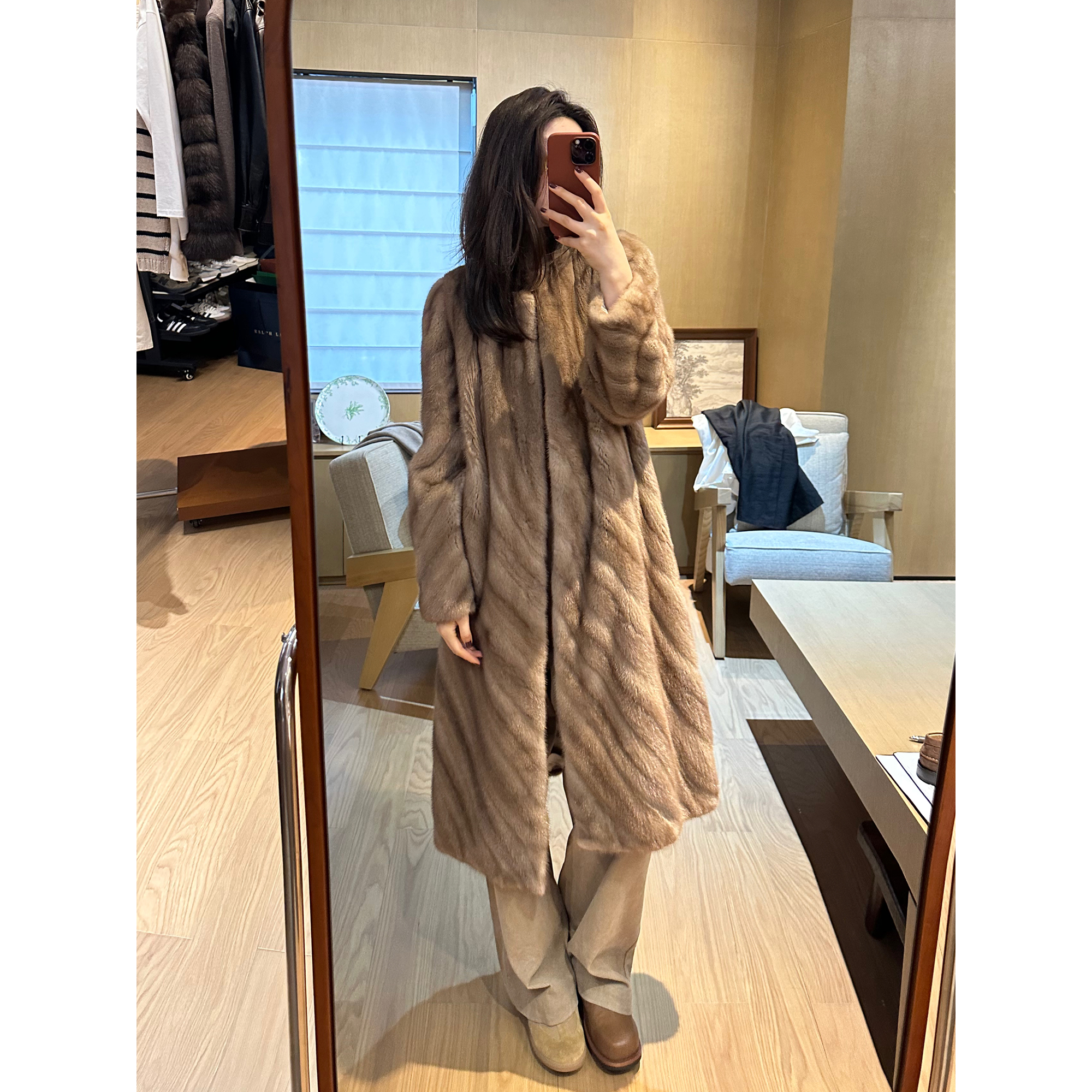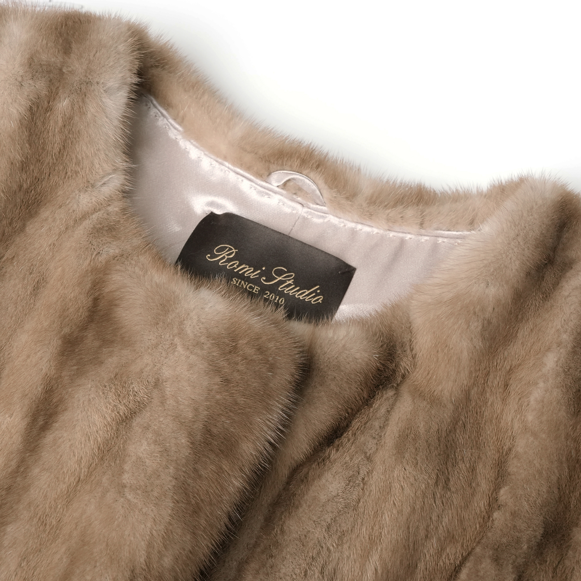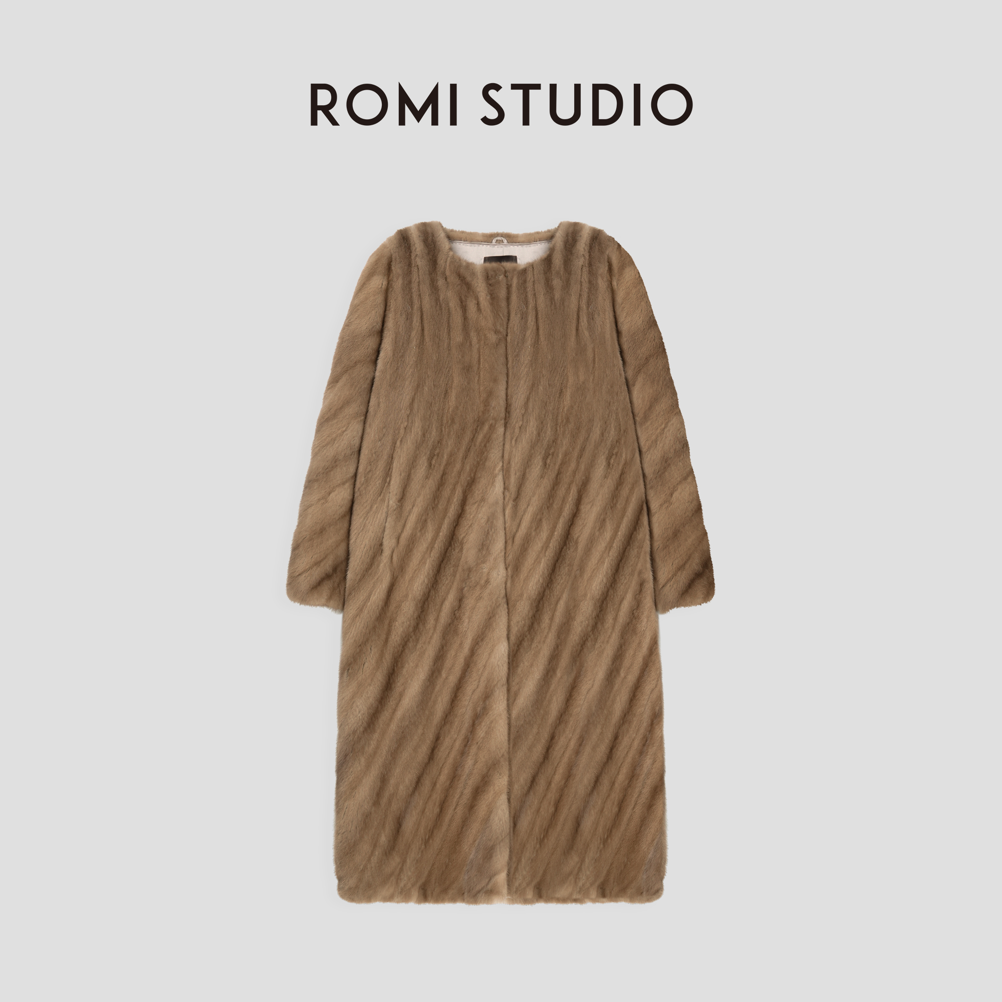 ROMI STUDIO抽刀工艺”中古帕斯条圆领斜排层次感本色皮草23AWW212