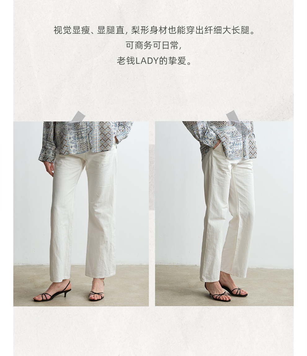 ROMI STUDIO“Clean fit”亚麻棉混纺经典老钱九分微喇裤RWCSXD2538