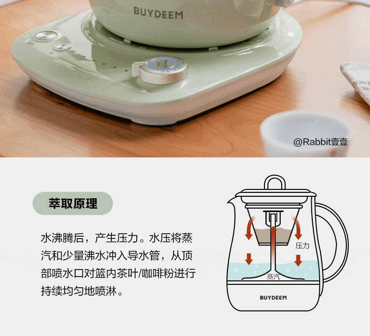 北鼎(Buydeem)养生壶电水壶迷你养生杯办公室便携一体式保温煮茶器多功能 K32(燕麦白)迷你萃取蓝(配件)
