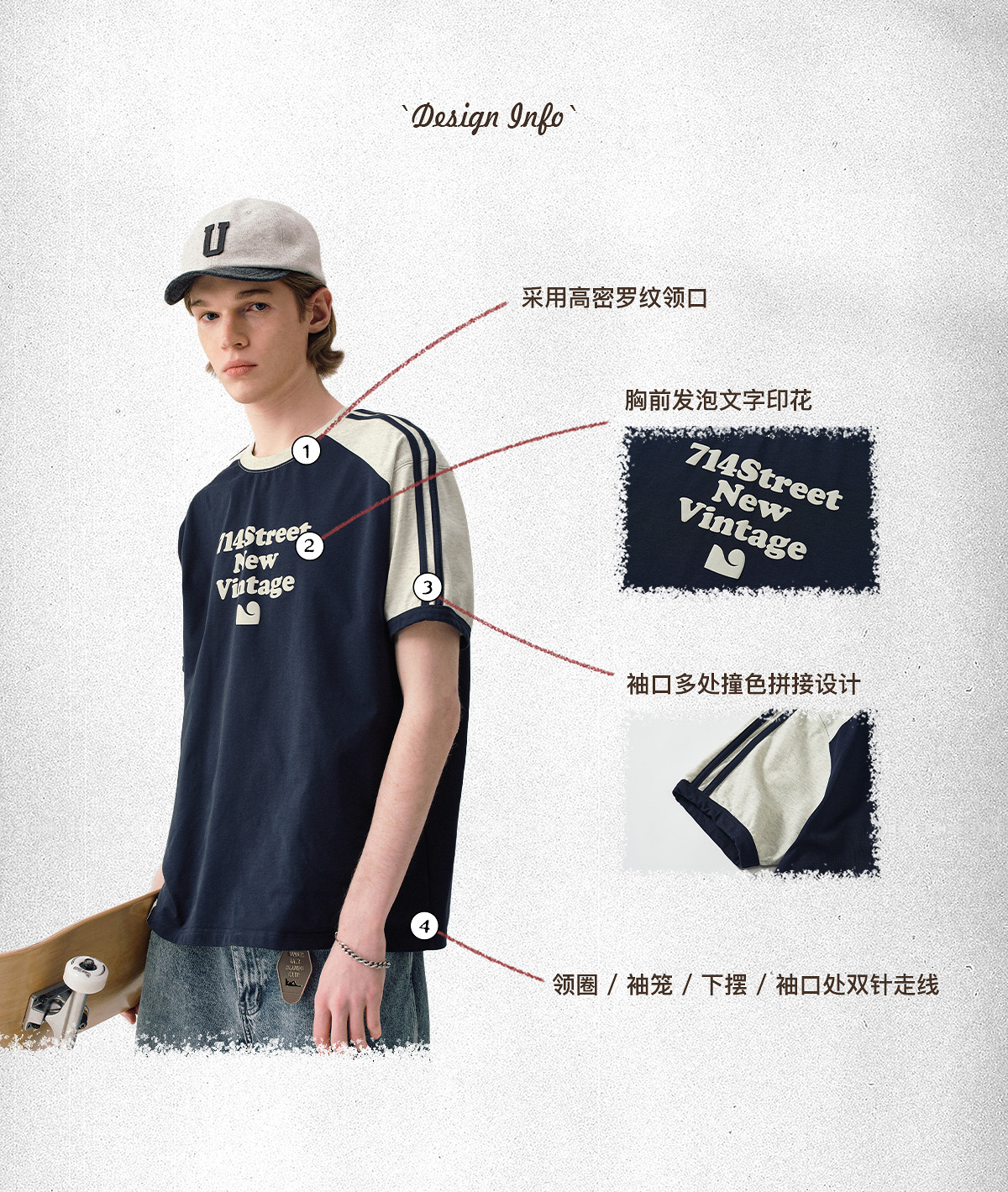 714street文字发泡印花撞色纯棉短袖T恤男夏季新款情侣装半袖体恤