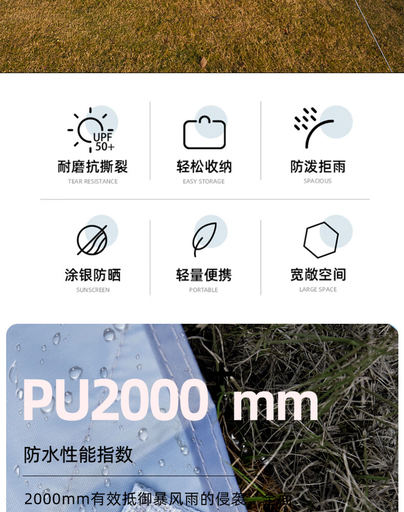 错山 户外天幕露营帐篷方形蝶形防晒防雨公园野餐套装4人以上便携 b-01/MS807