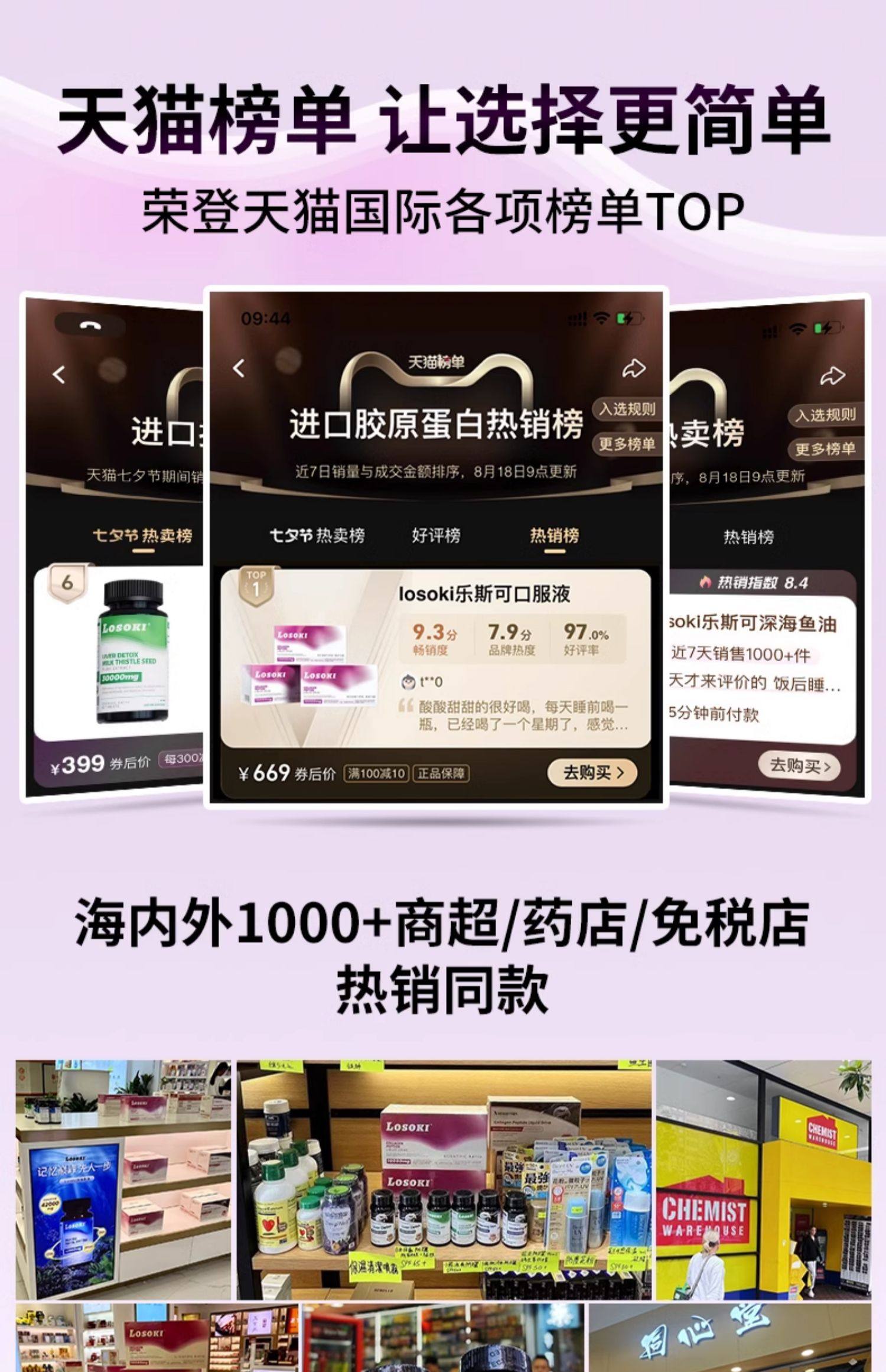[6盒]美国乐斯可losoki胶原蛋白肽美白小分子内服口服液态饮正品