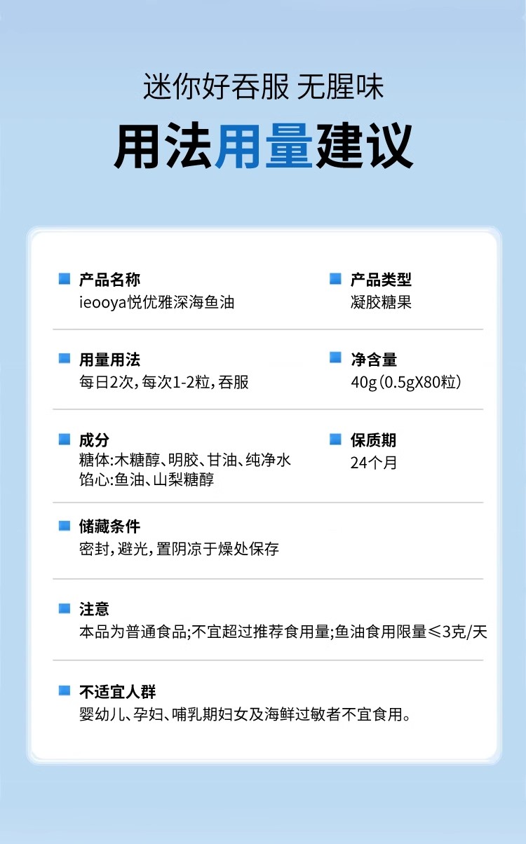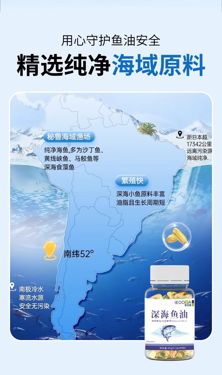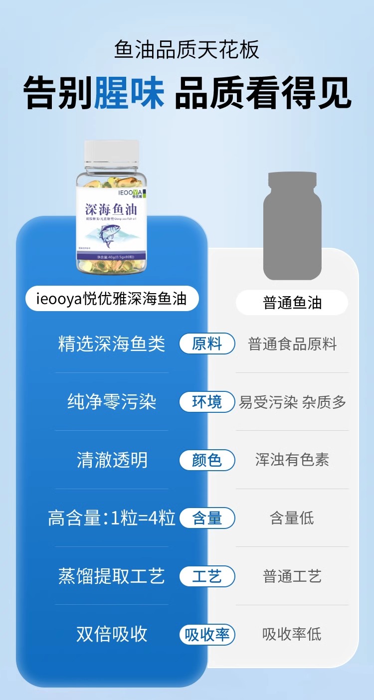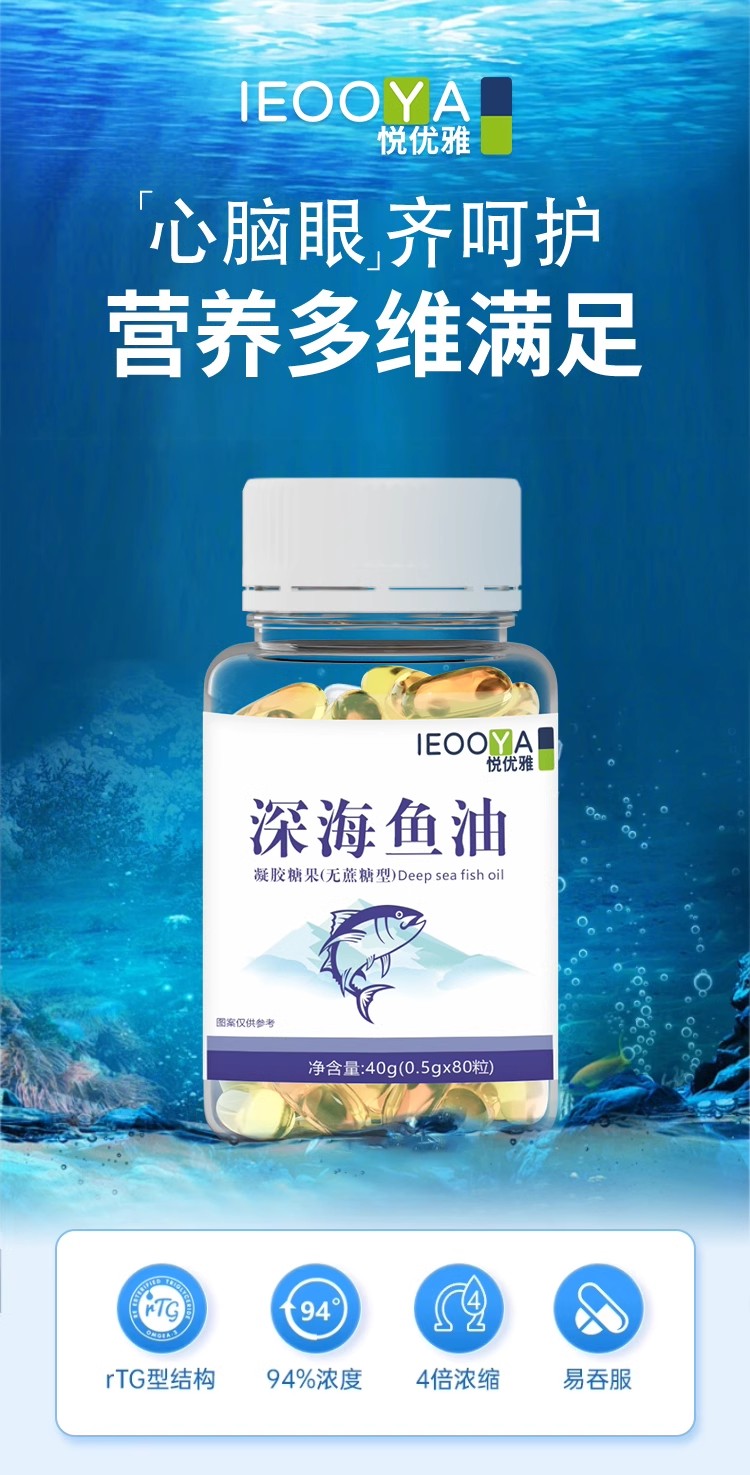 ieooya鱼油悦优雅深海鱼油rTG结构94高纯度omega3养护发净肤痘心