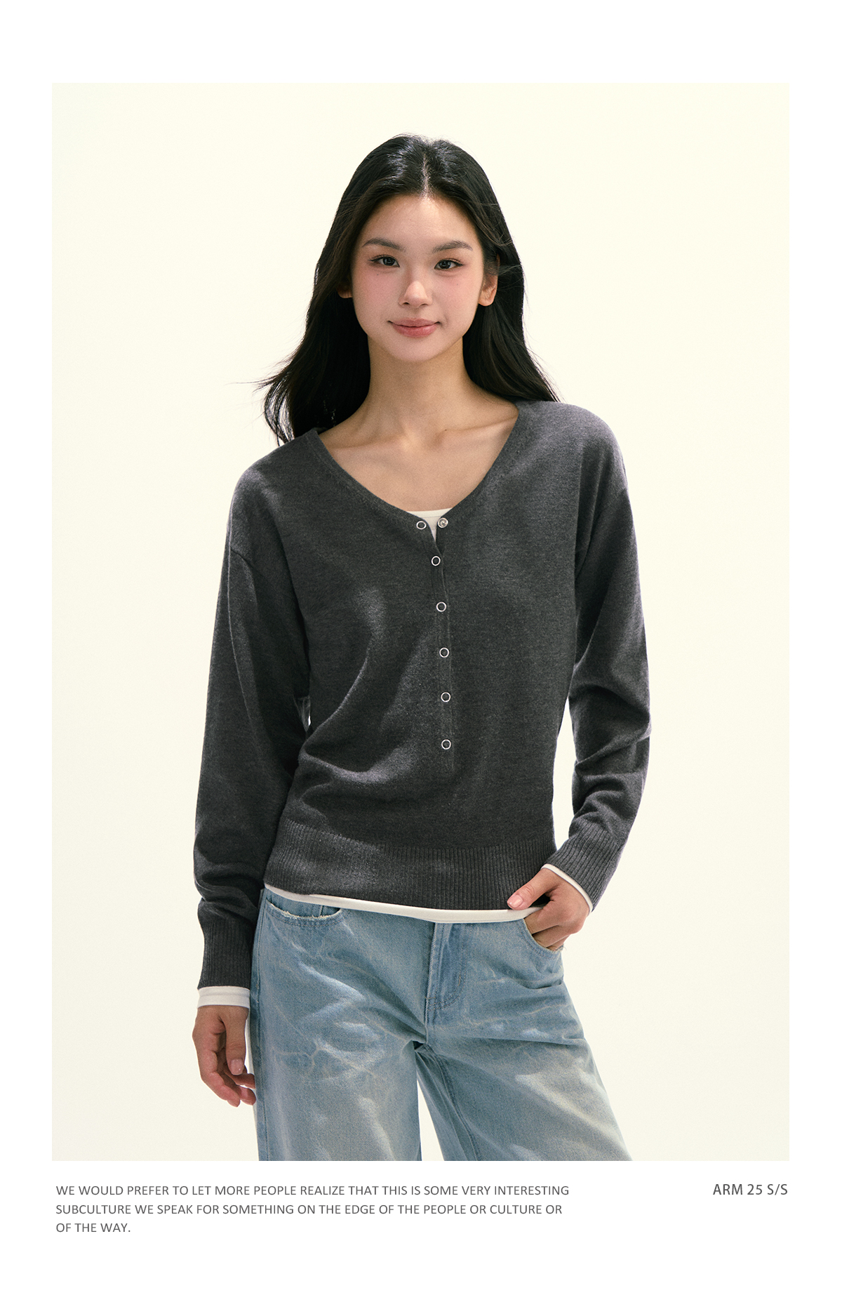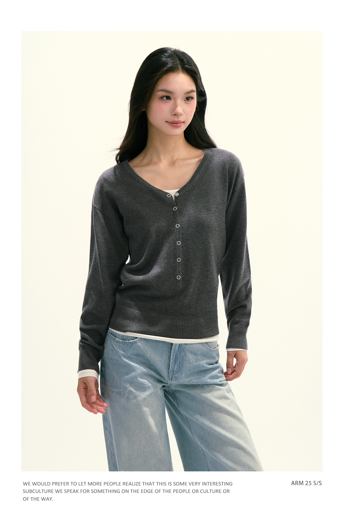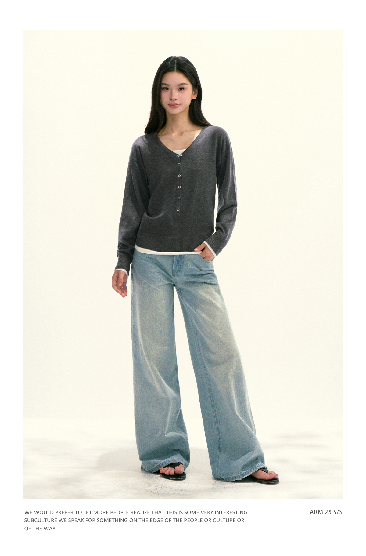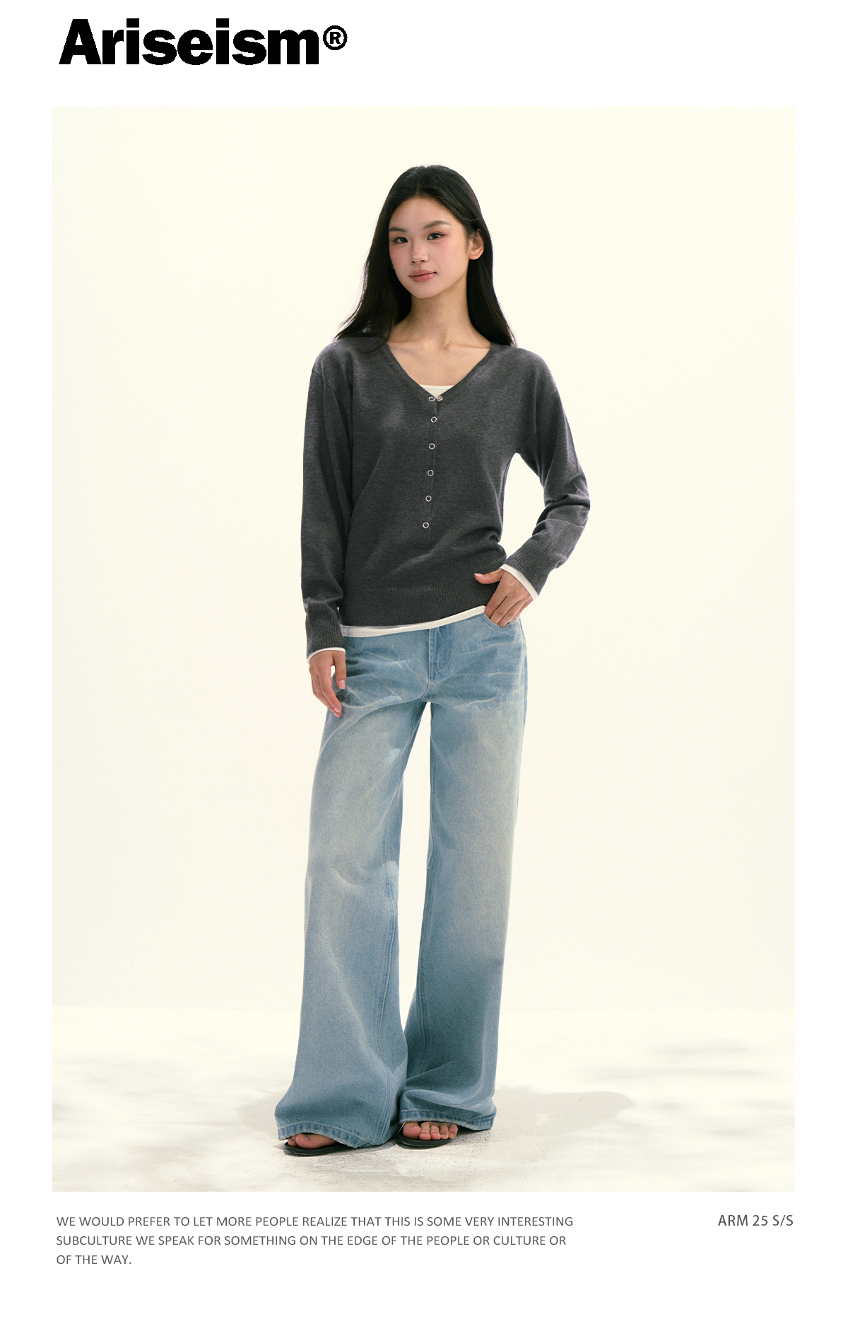Ariseism 美式复古设计感v领针织开衫女秋季新款修身长袖上衣