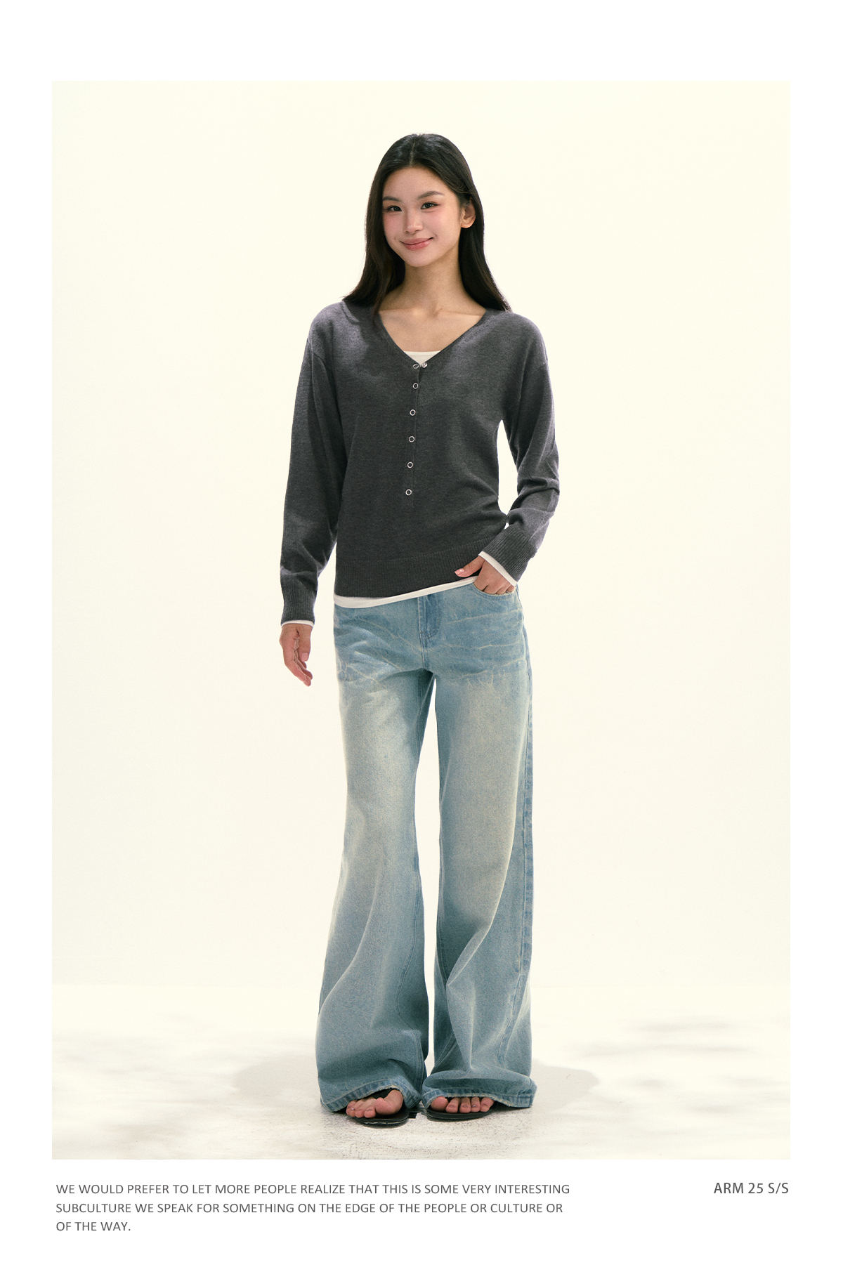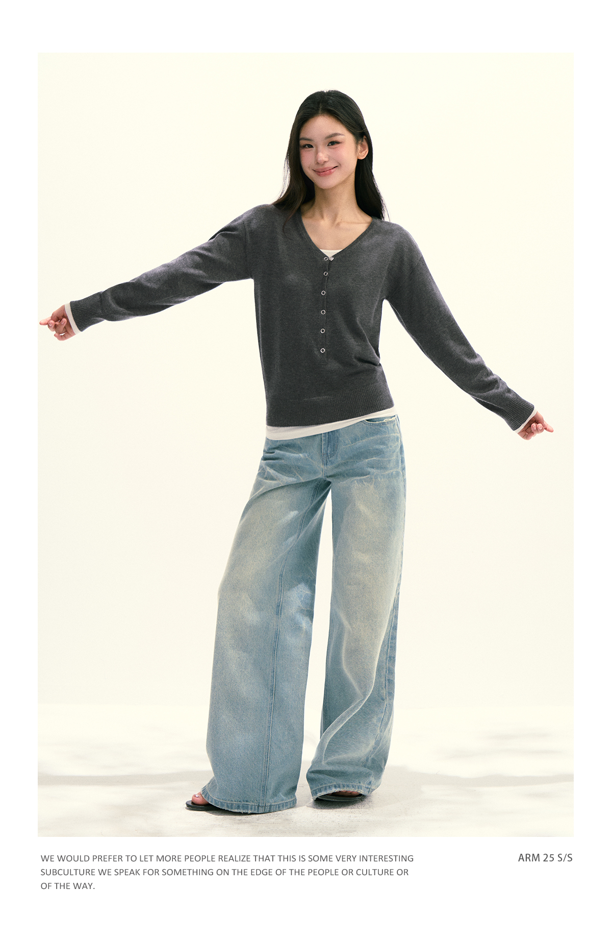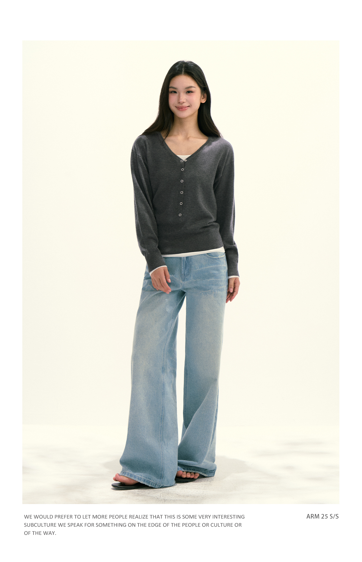 Ariseism 美式复古设计感v领针织开衫女秋季新款修身长袖上衣