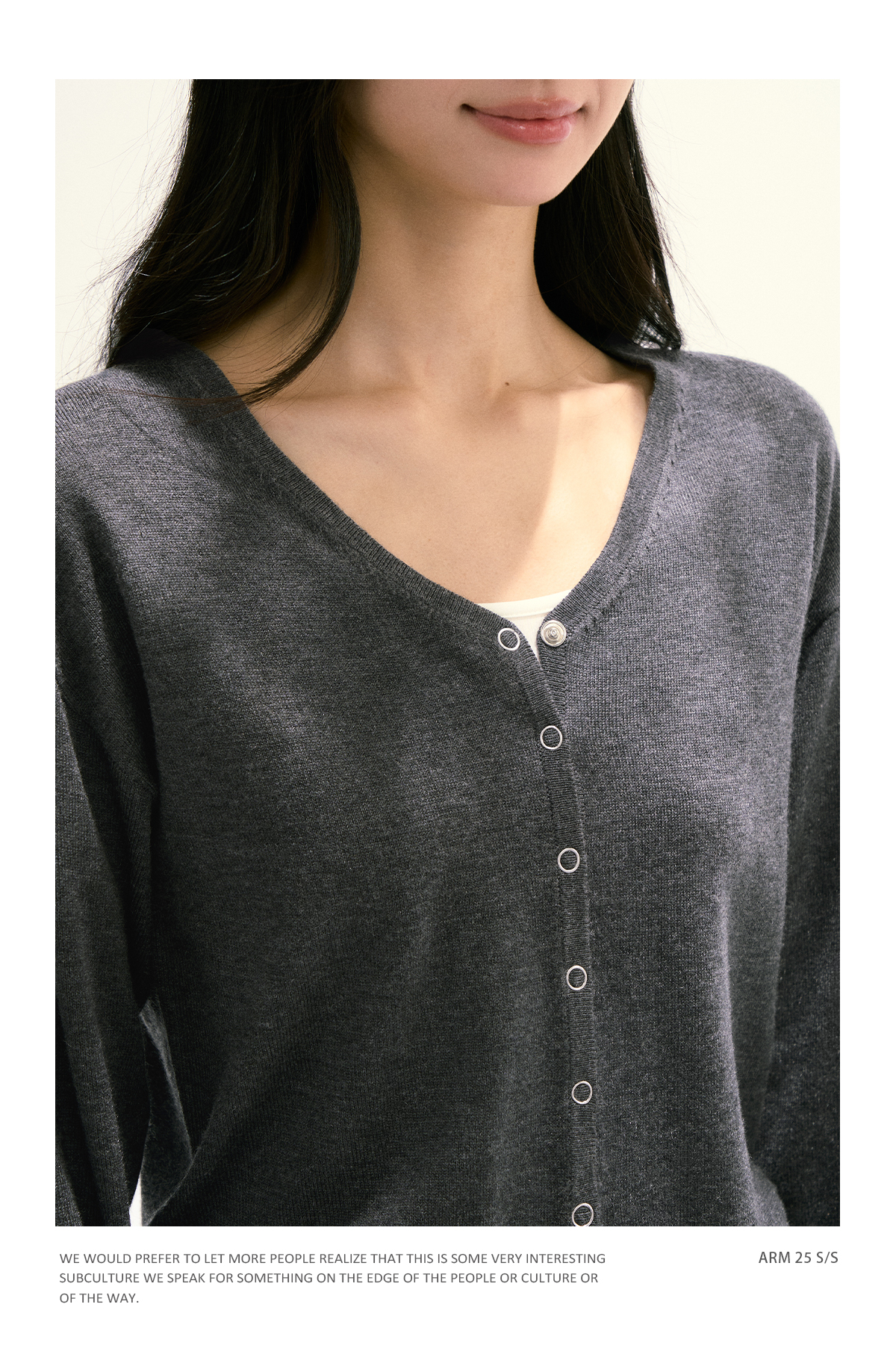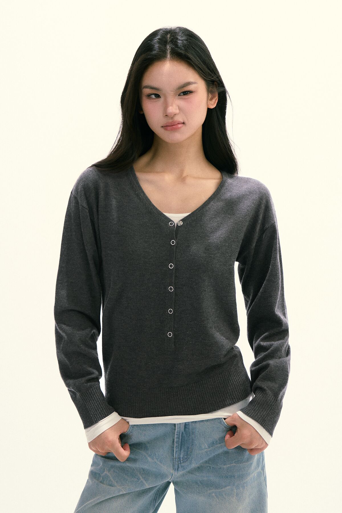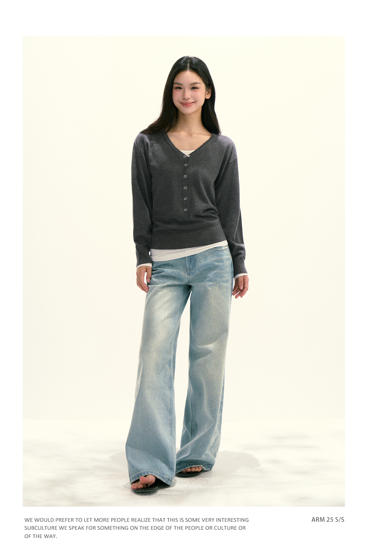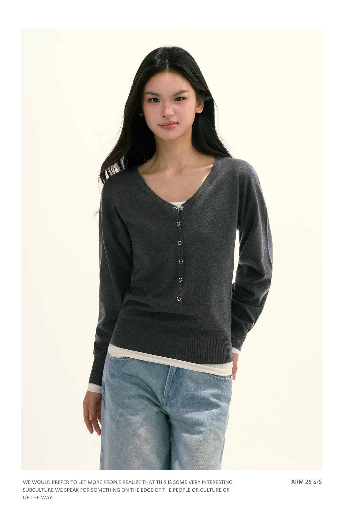 Ariseism 美式复古设计感v领针织开衫女秋季新款修身长袖上衣