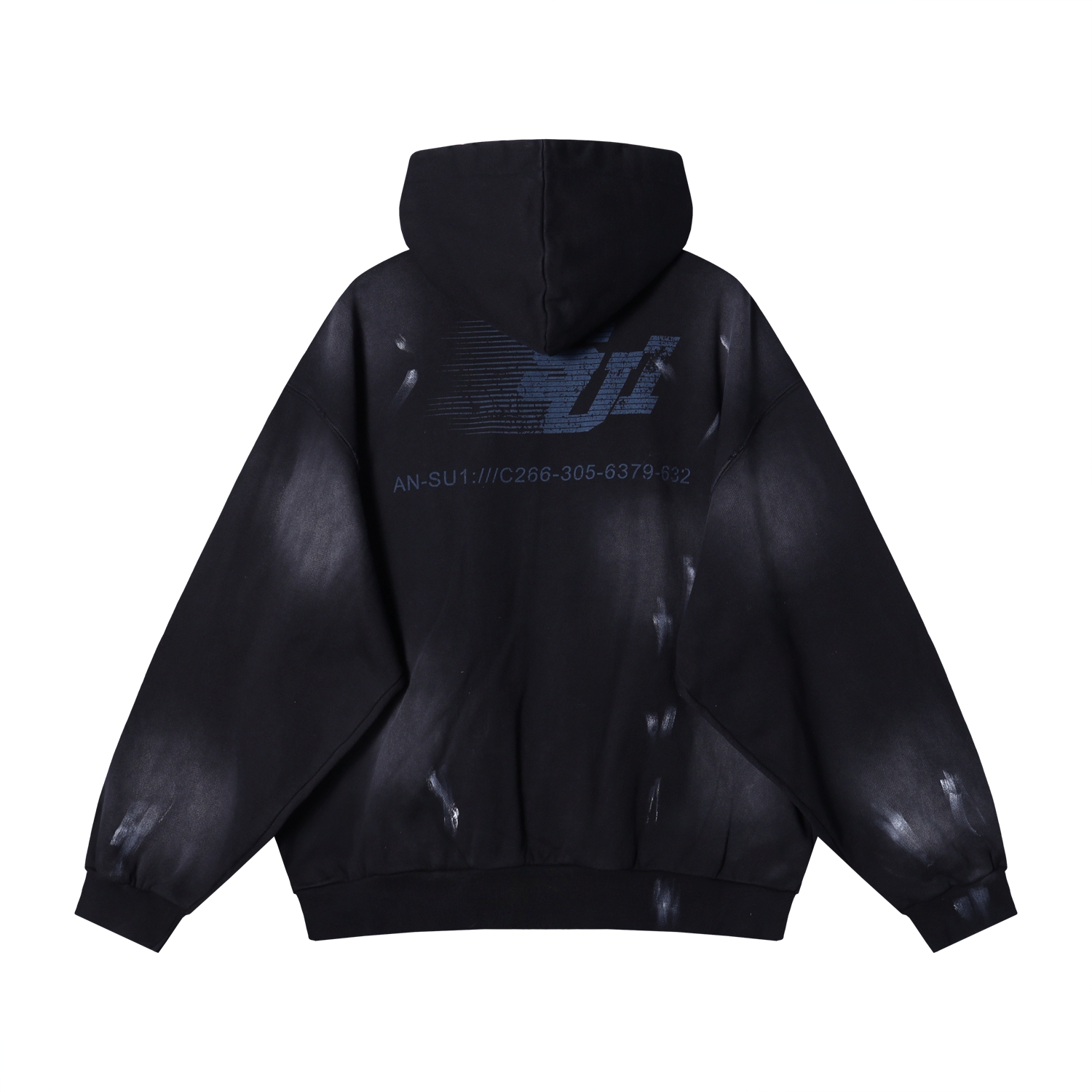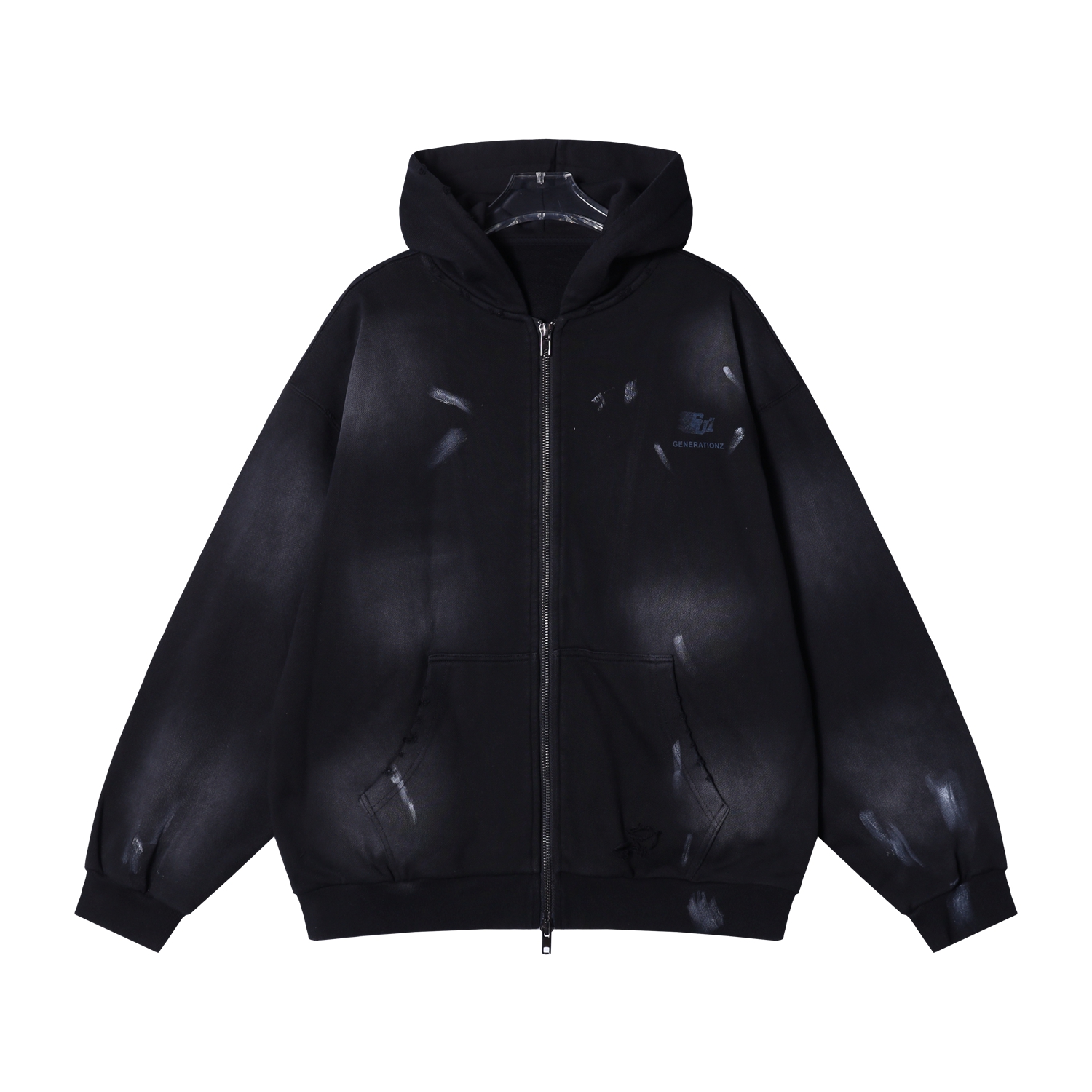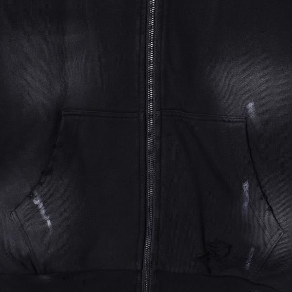 25080SDSA秋冬新款痞帅男装美式扎实扎染印花磨破拉链连帽卫衣开衫百搭