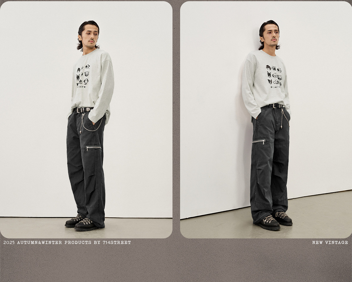 714street宽松双褶深灰条纹休闲西裤男2026春夏垂坠感老钱风裤子