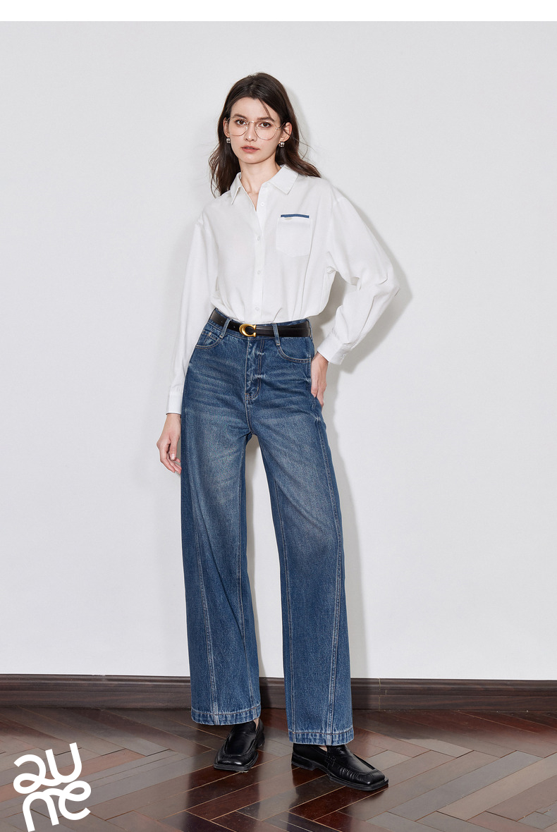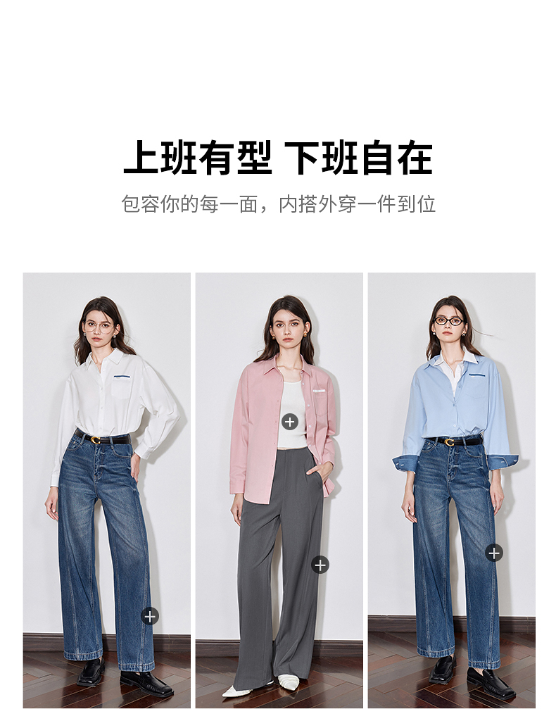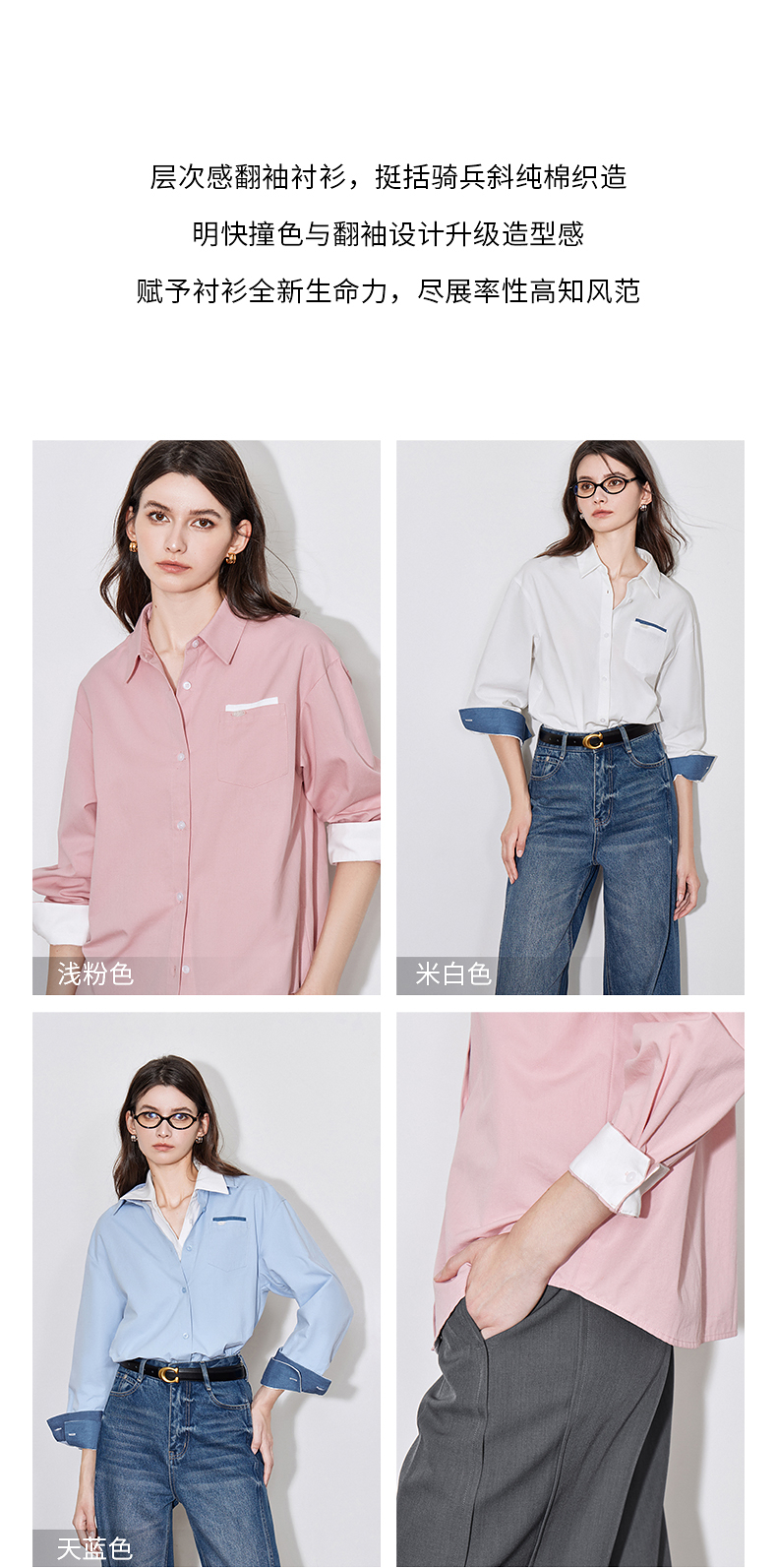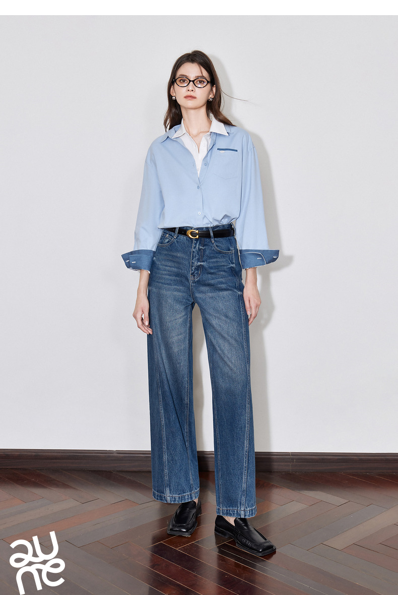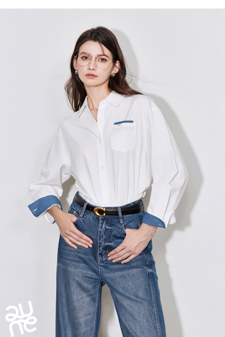 初语 别致口袋设计感衬衫女 简约休闲百搭上衣拼色长袖