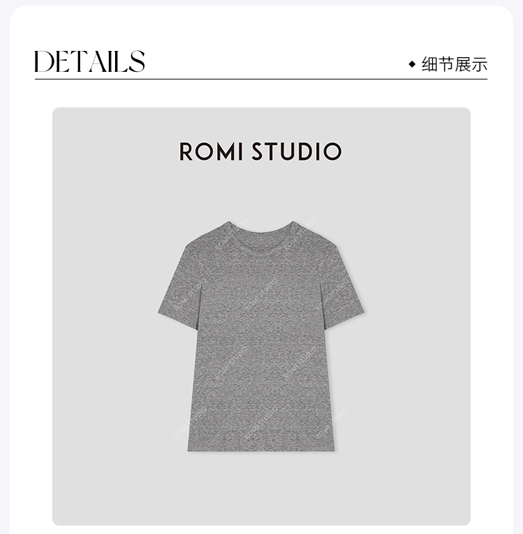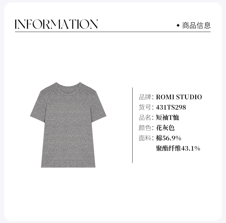 ROMI STUDIO“简约随性”80S棉花纱感弹力肤感圆领短袖T恤 431TS298