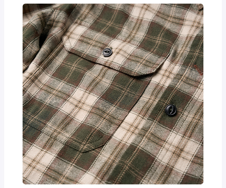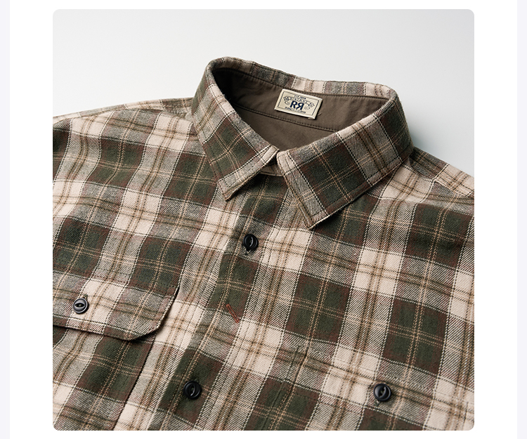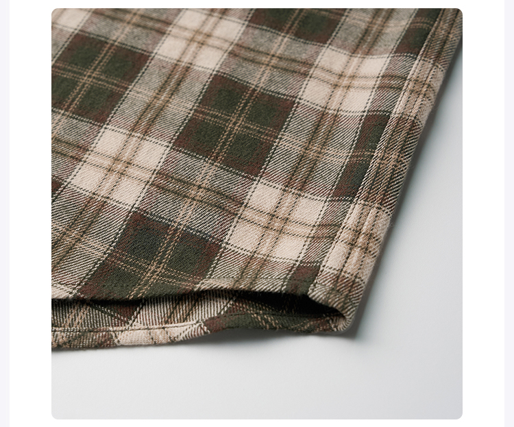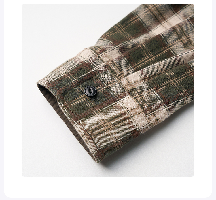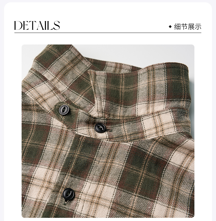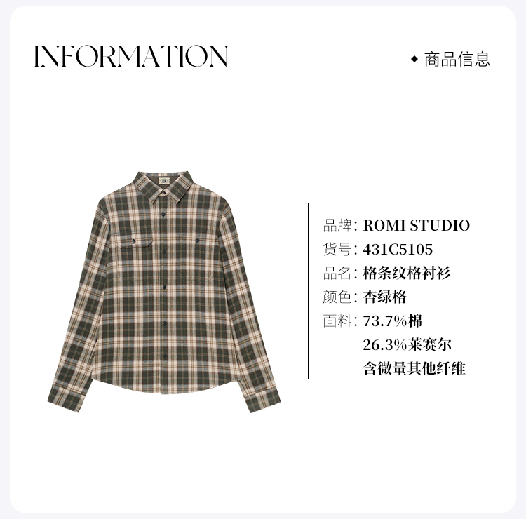 ROMI STUDIO“美式复古”莱赛尔棉混纺磨毛翻领格纹衬衫 431C5105