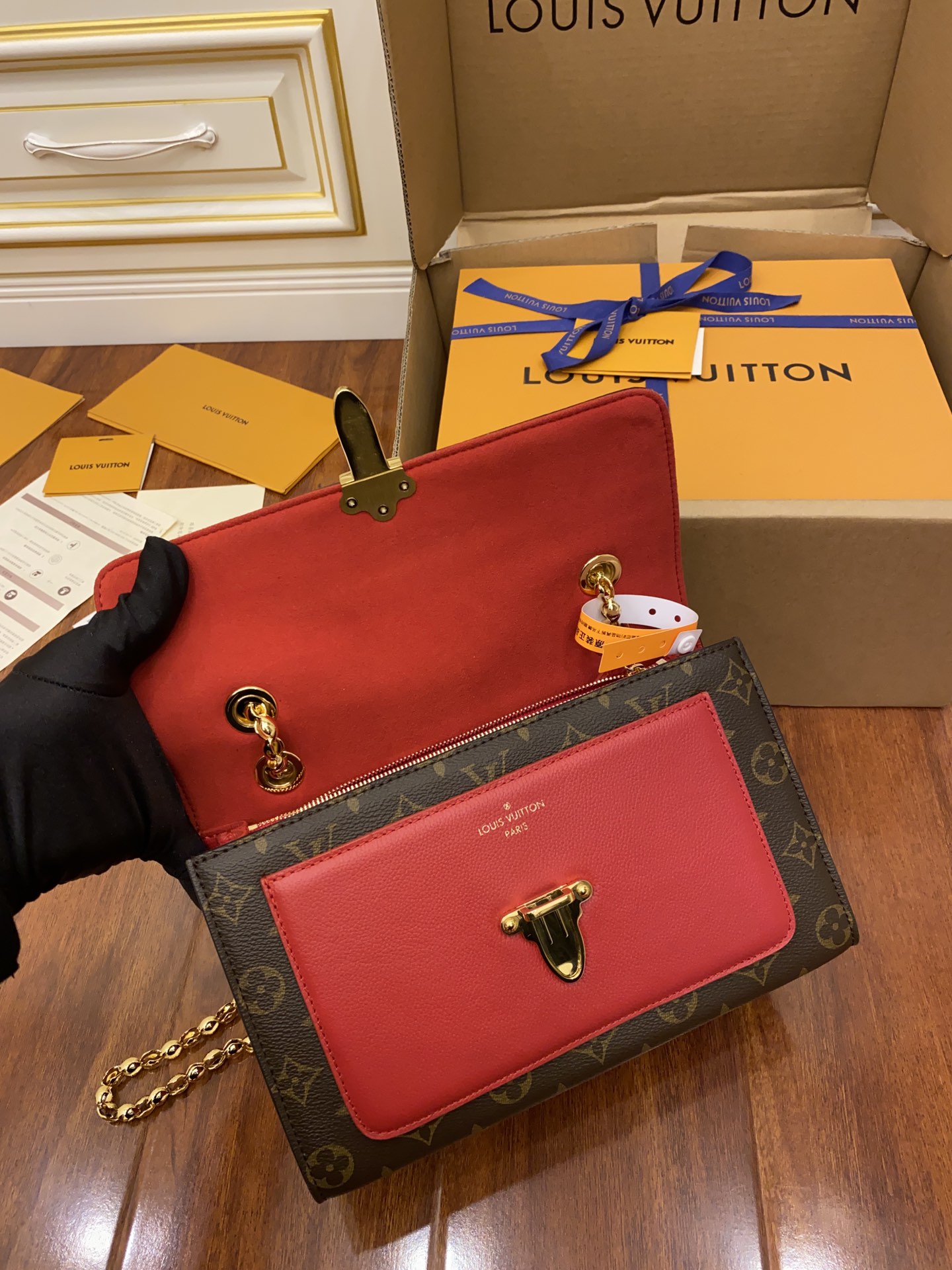 独家首发型号:M41731特级加强版(品质提升.专柜同步电子芯片内码、礼品袋、保护纸、铜版电子标签、合格证)皮料是正品代工厂意大利A级皮料(特级正品):所谓的特级正品.是在于品质、五金、面料、手工、油边、A级出品、拍摄图跟产品一致丶配图上的全套包装.