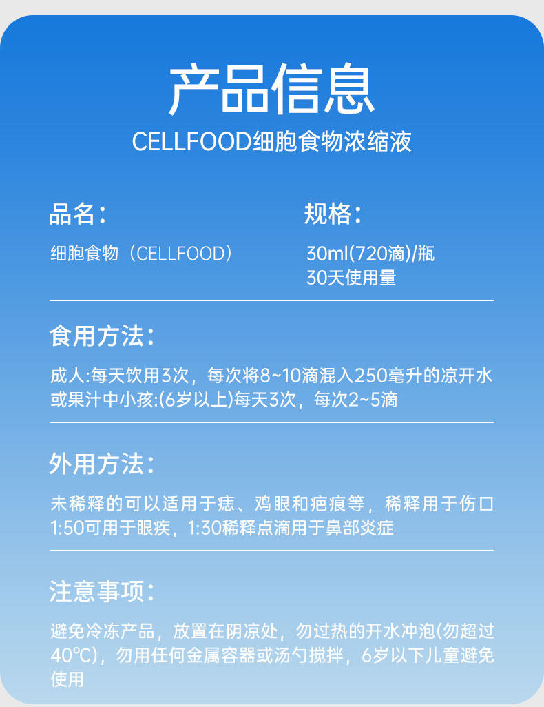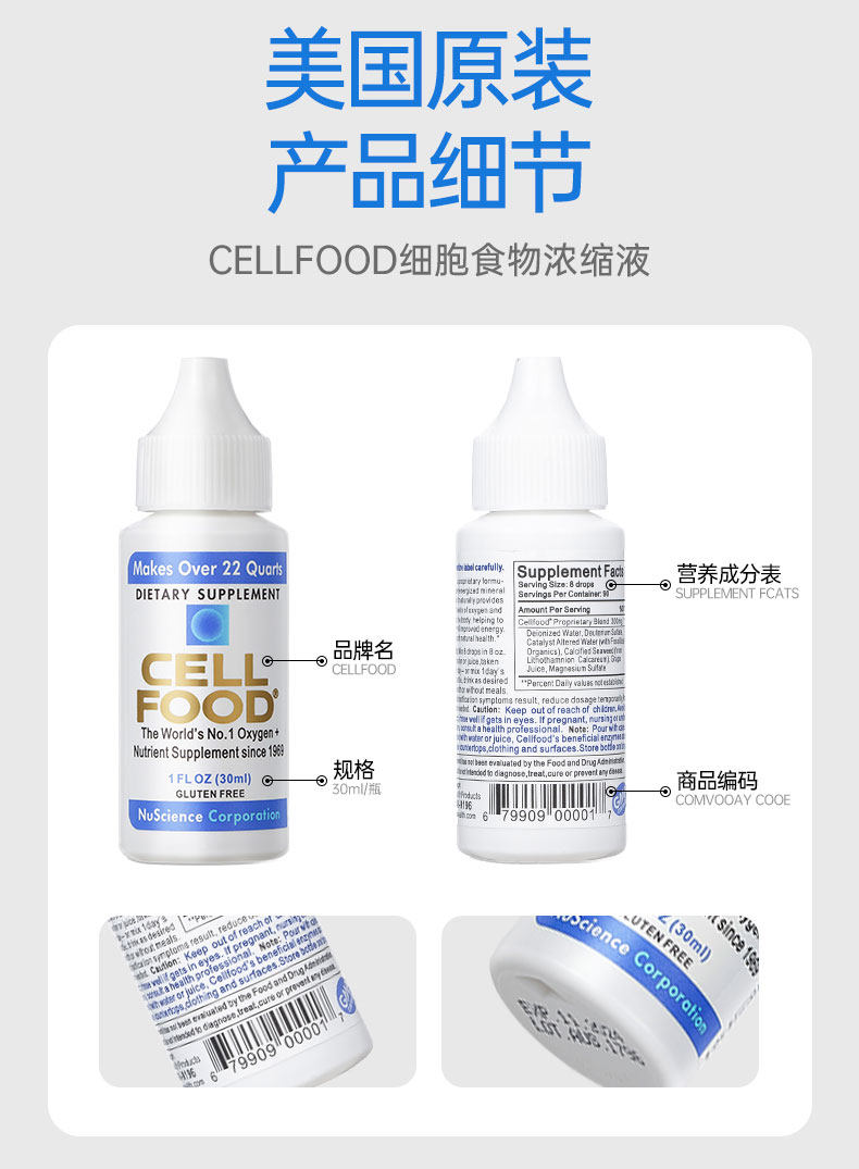 原装正品美国cellfood赛尔复得细胞食物浓缩营养液赛鼎红藻饮料