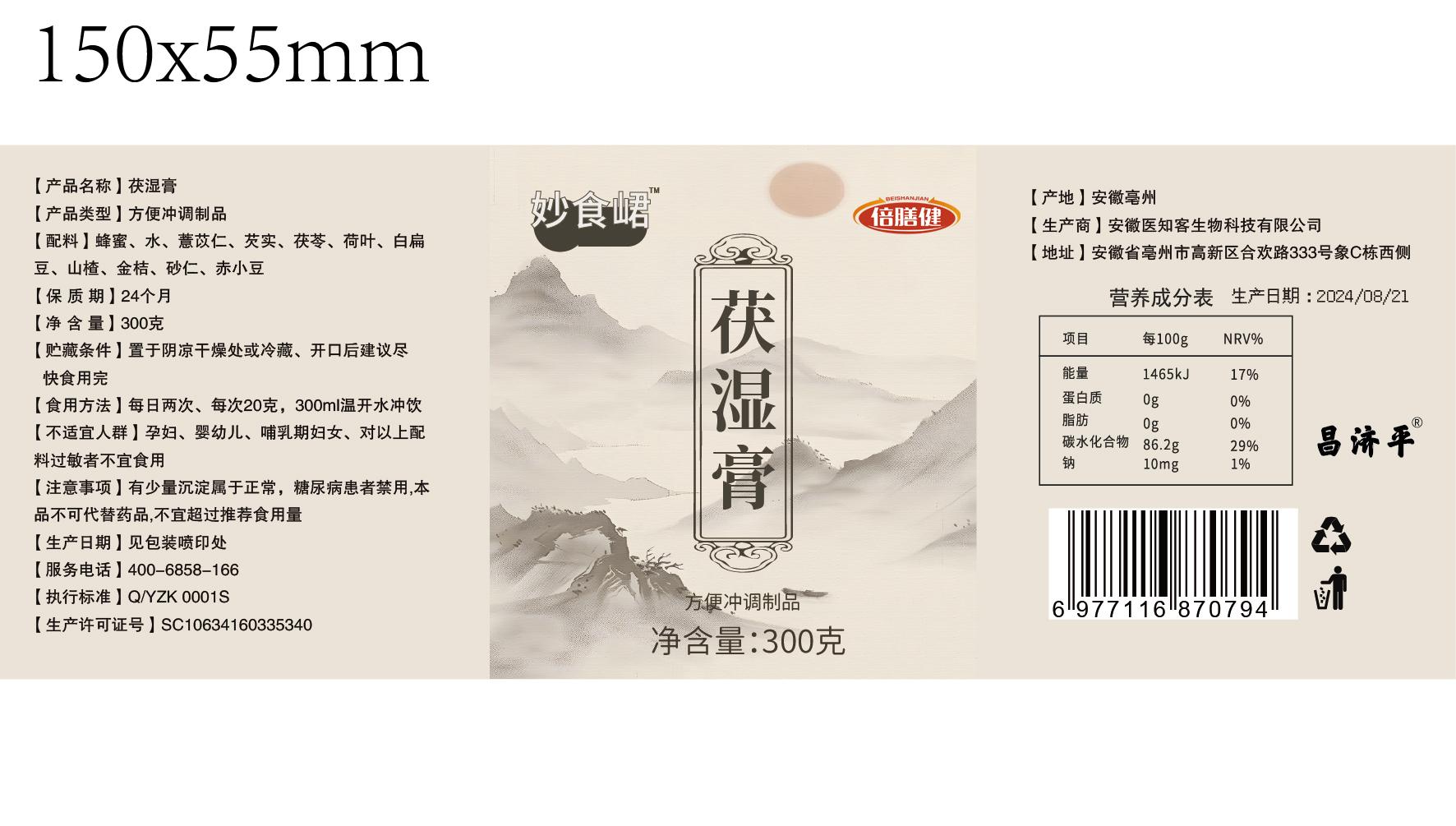 【妙食珺茯湿膏】官方旗舰茯苓薏苡仁醇厚浓厚正品冲泡花果酱茯湿膏