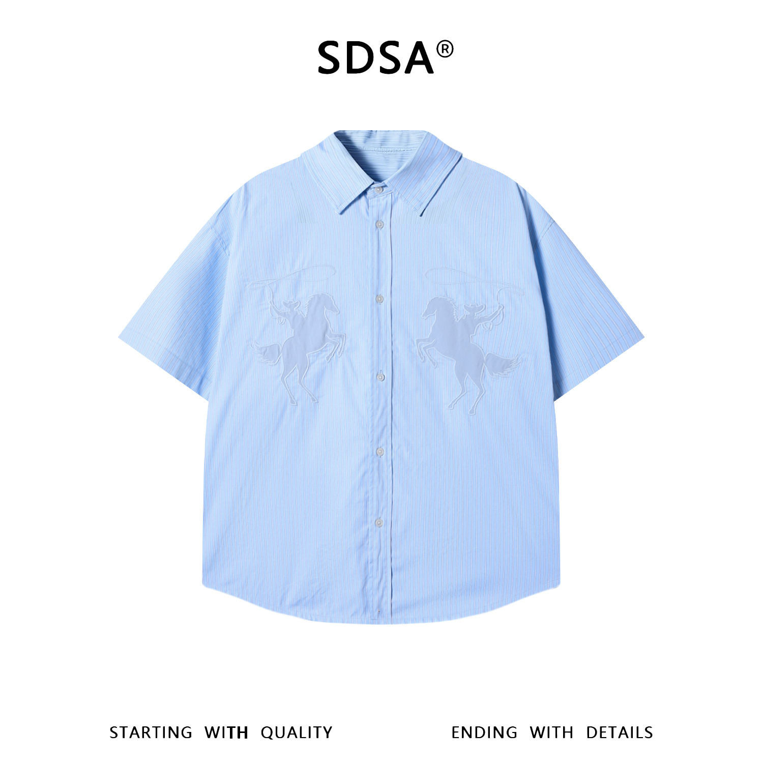 SDSA男装2026新款高贵轻奢简约撞色竖纹短袖衬衫小马刺绣百搭上衣
