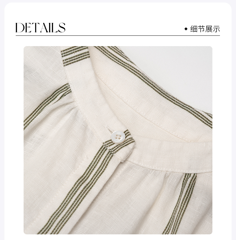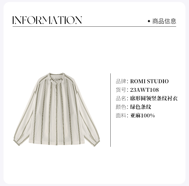 ROMI STUDIO“精致松弛感”亚麻设计感廓形圆领竖条纹衬衣 23AWT108