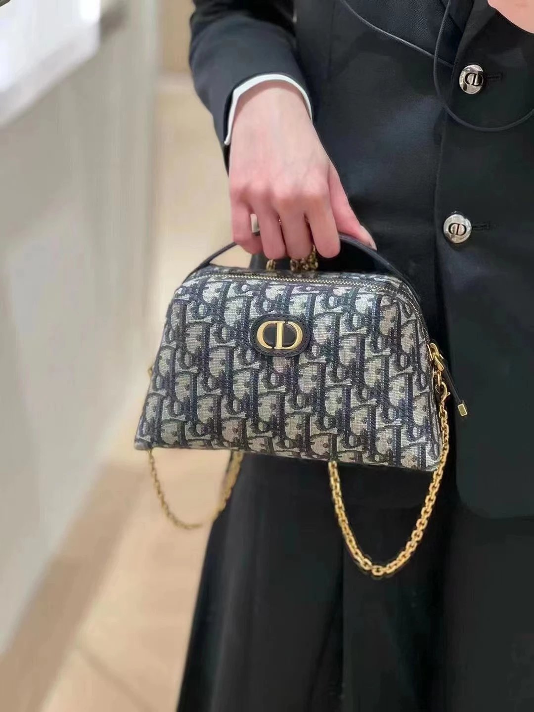 Montaigne系列贝壳链条包,又是一个小可爱 ,独特的包形,搭配经典oblique 老花面料,让人爱不释手,中间设有宽敞的拉链隔层,可收纳各种各样的日常用品,拆卸了链条还能当洗漱包,简直不要太好用