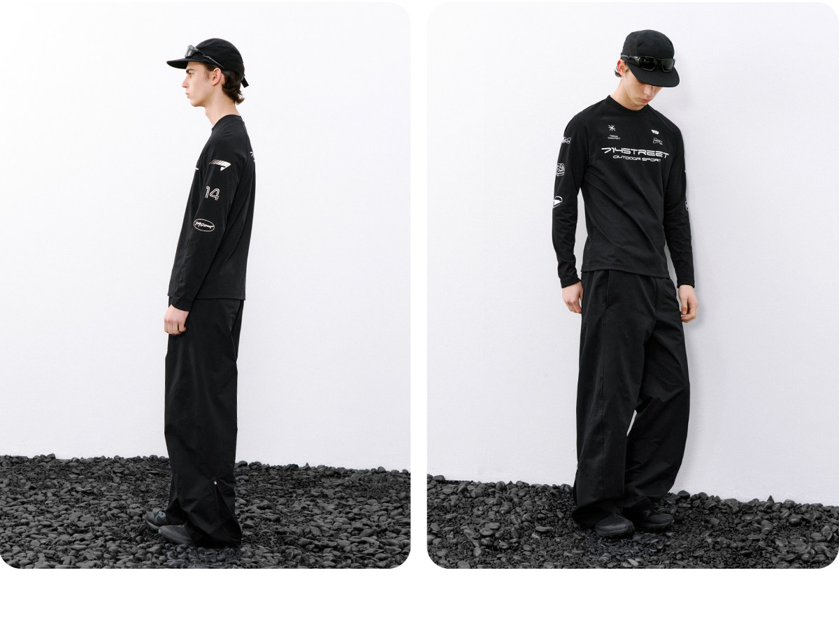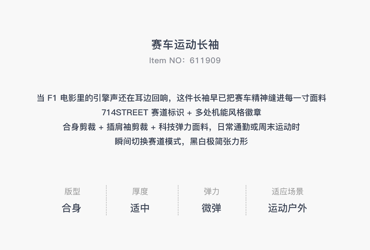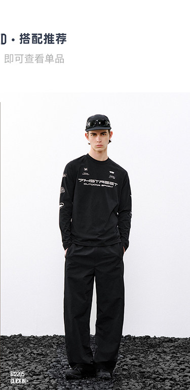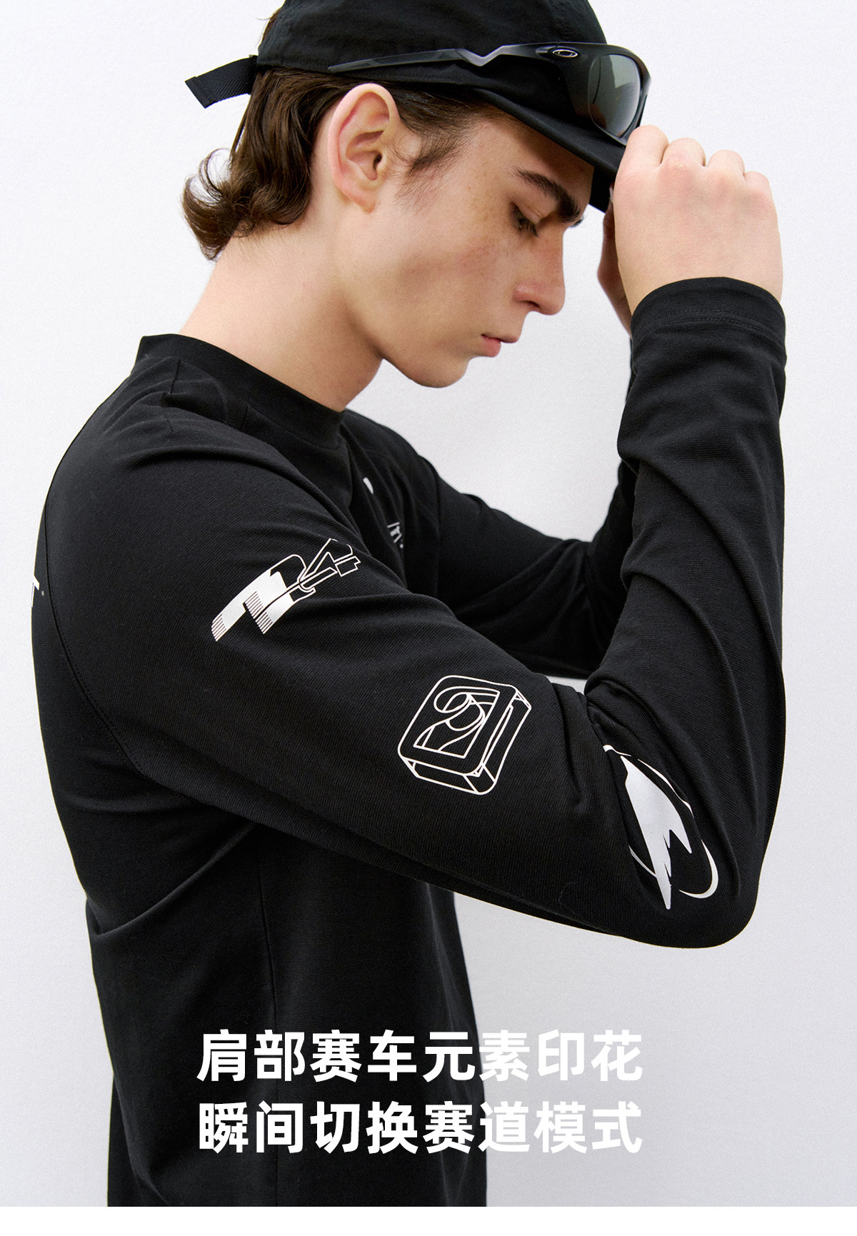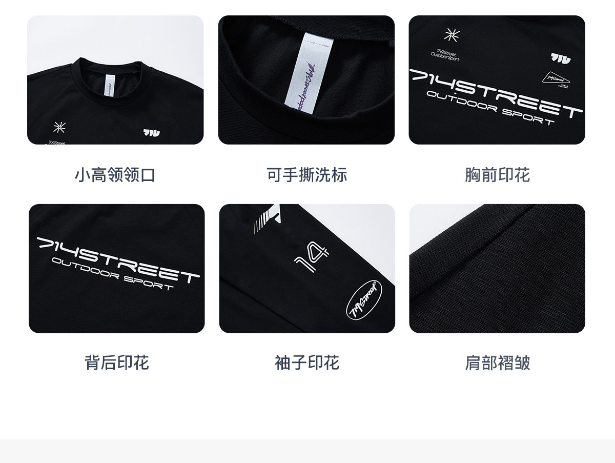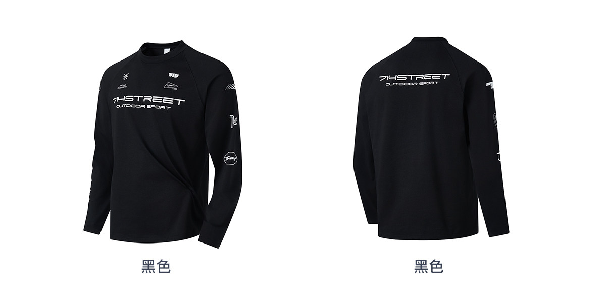 714street赛车元素运动长袖打底衫春夏吸湿速干户外凉感黑色T恤男