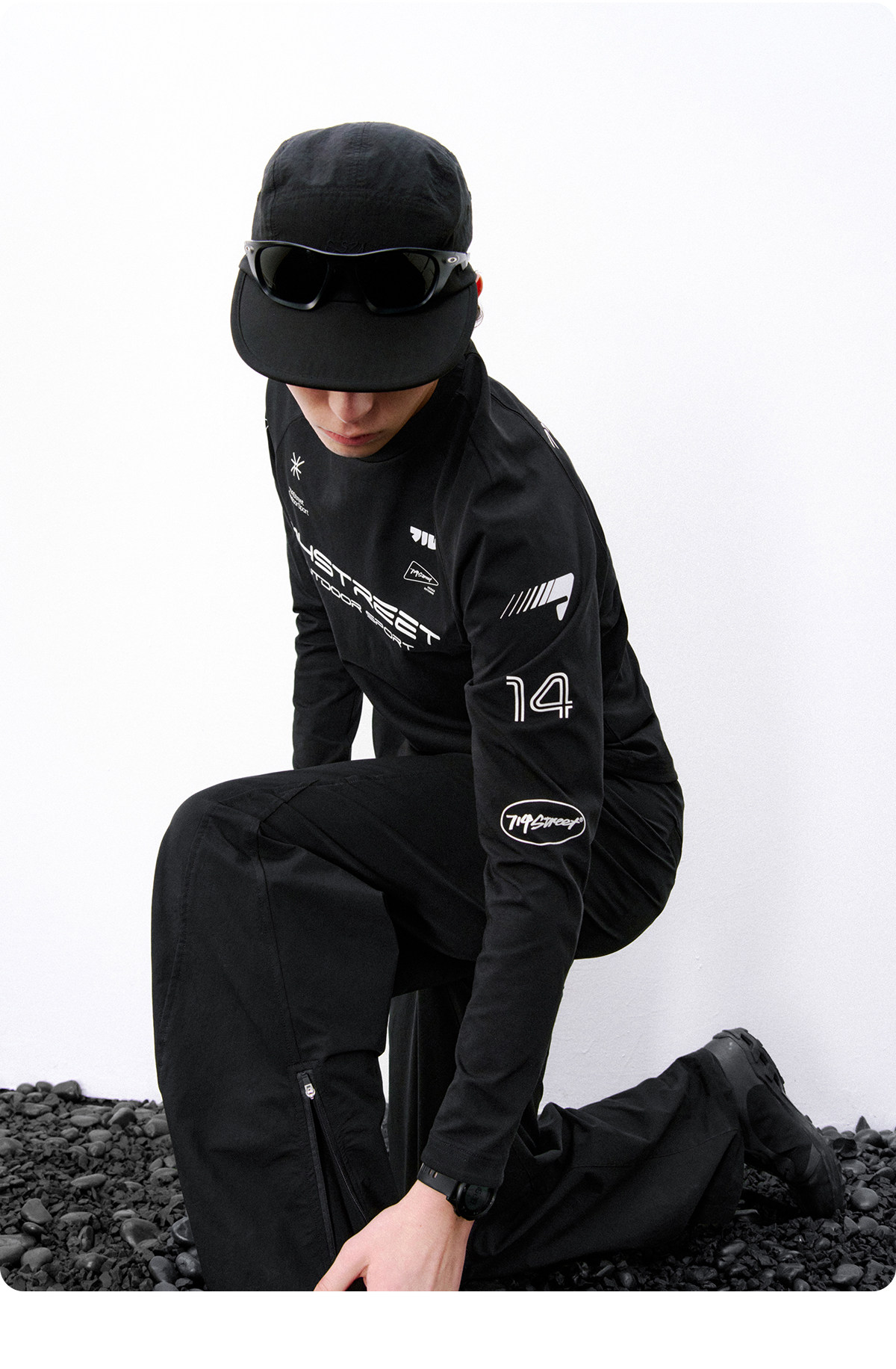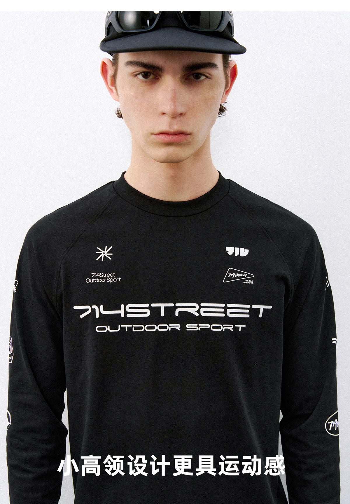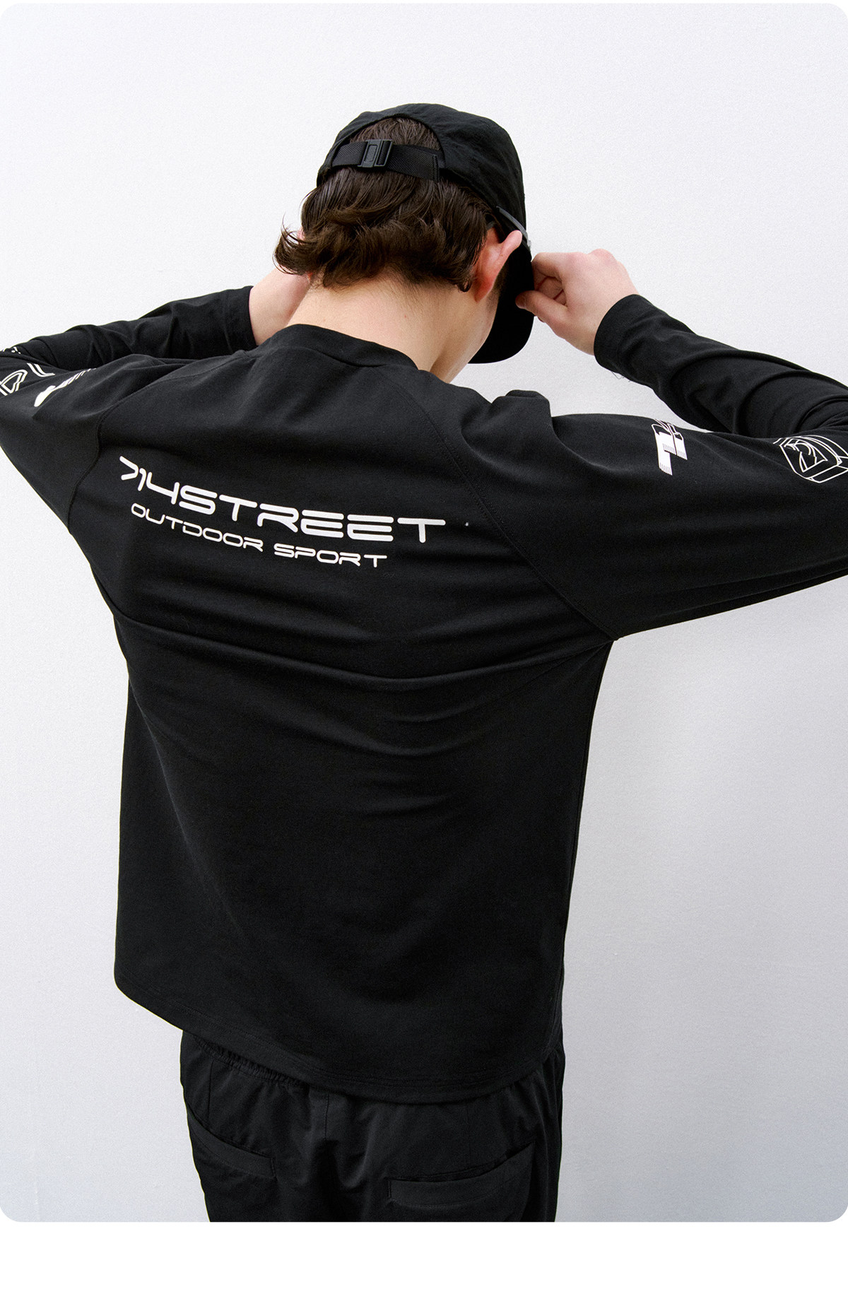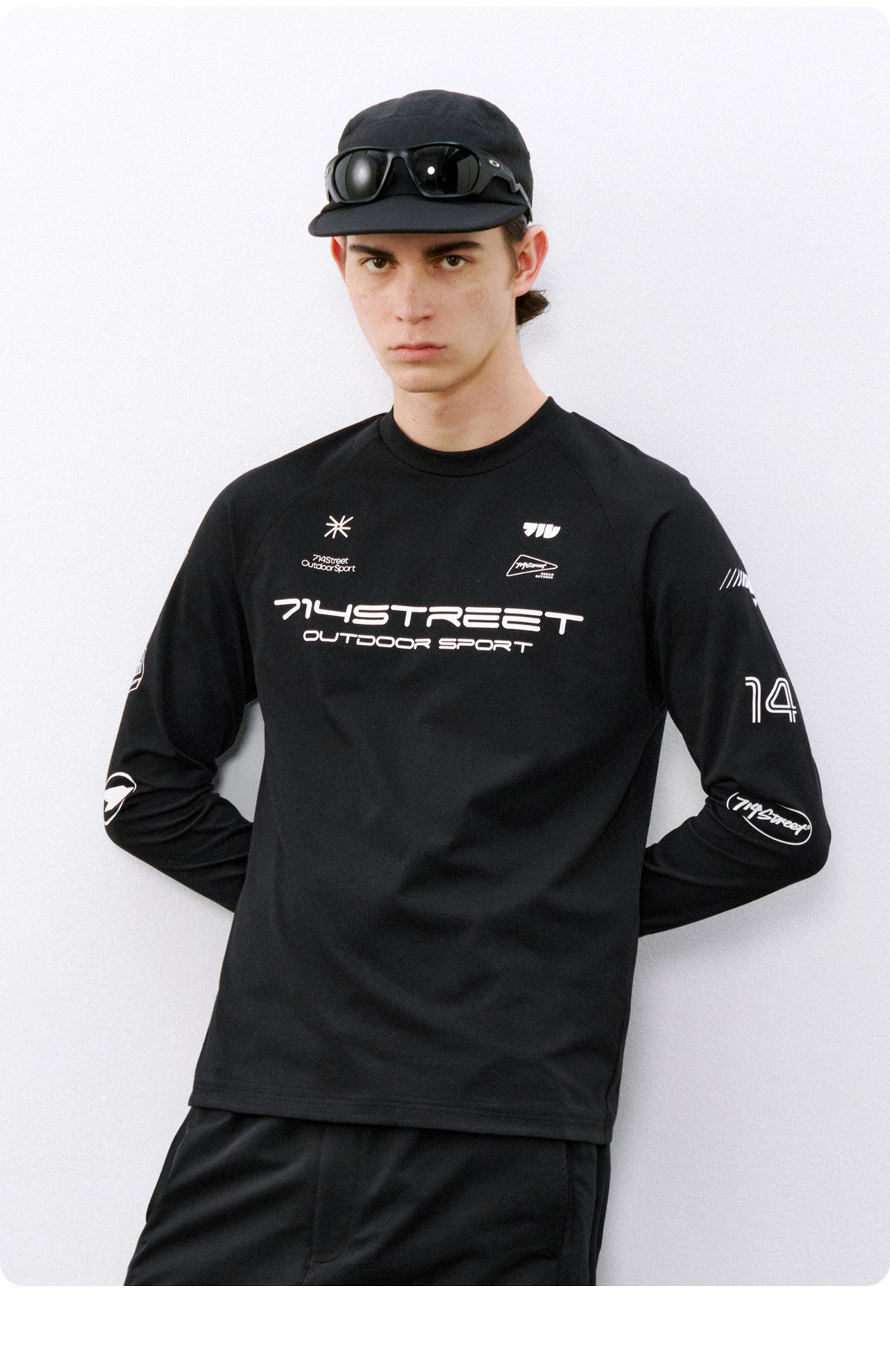 714street赛车元素运动长袖打底衫春夏吸湿速干户外凉感黑色T恤男