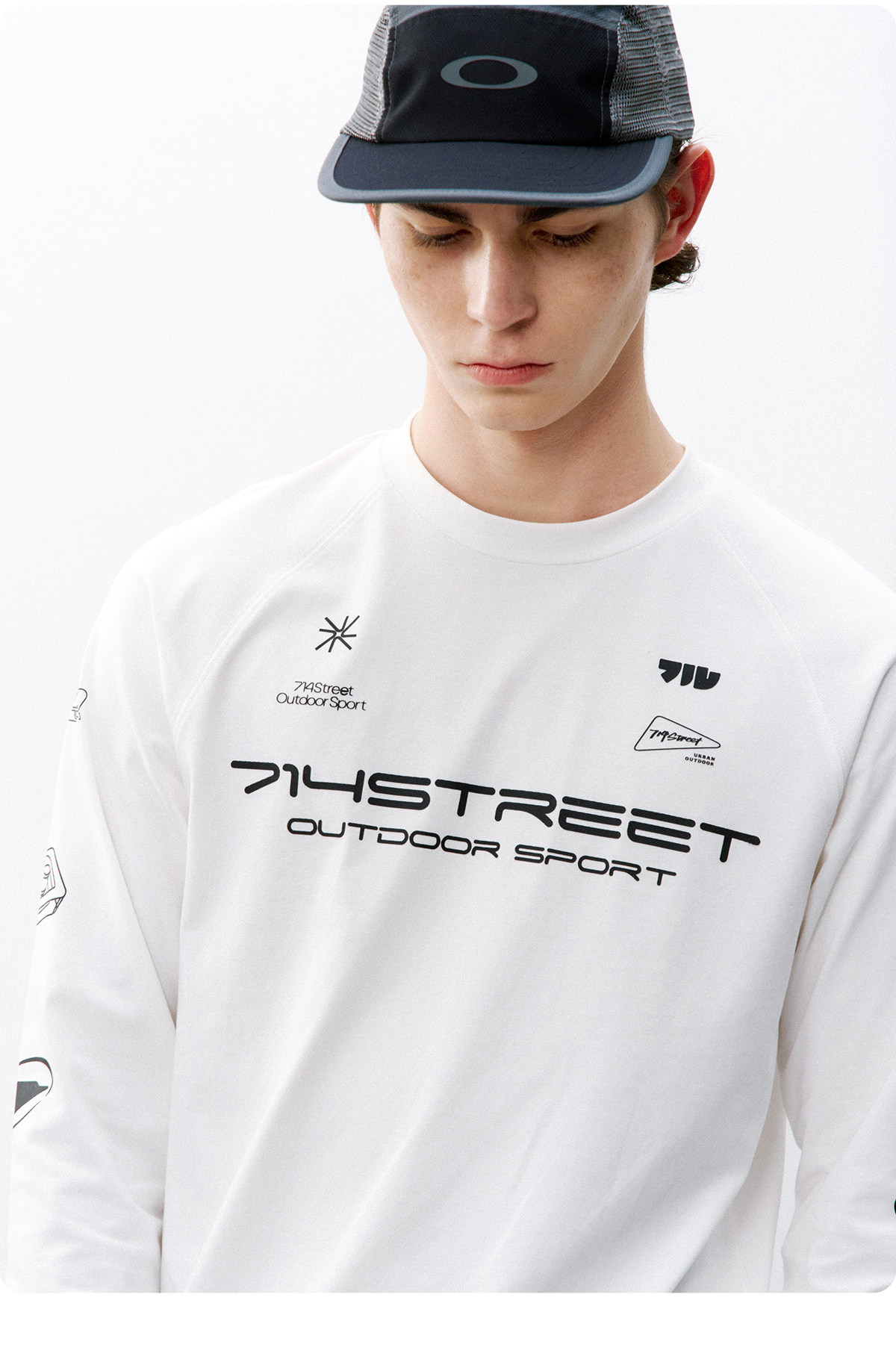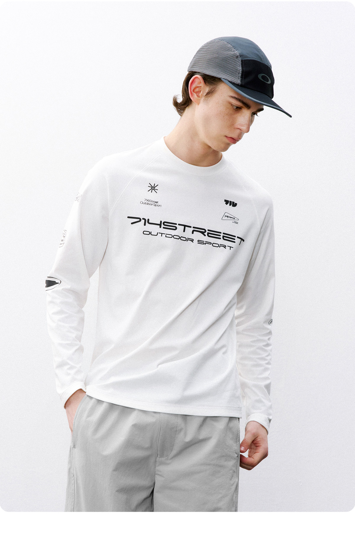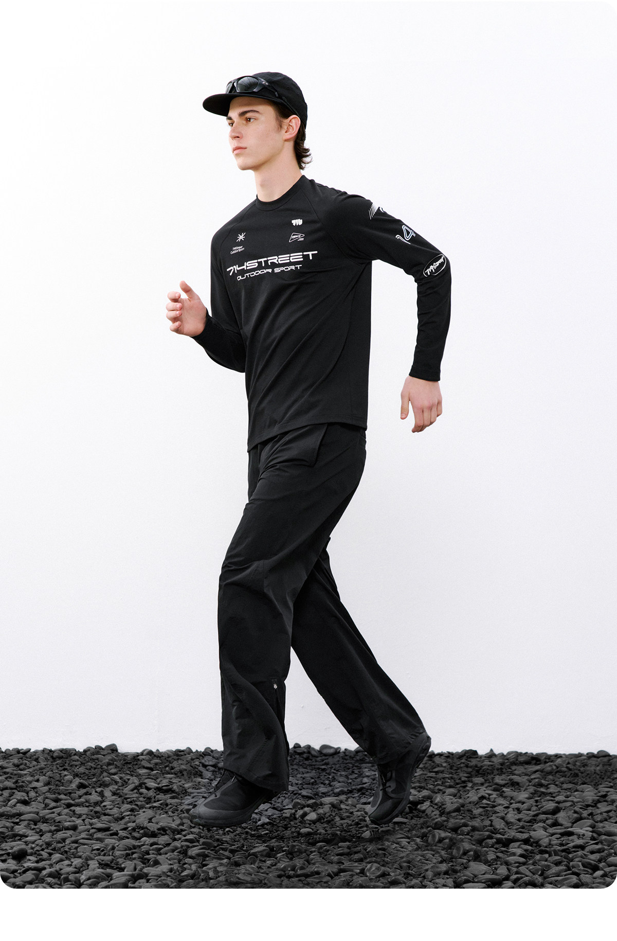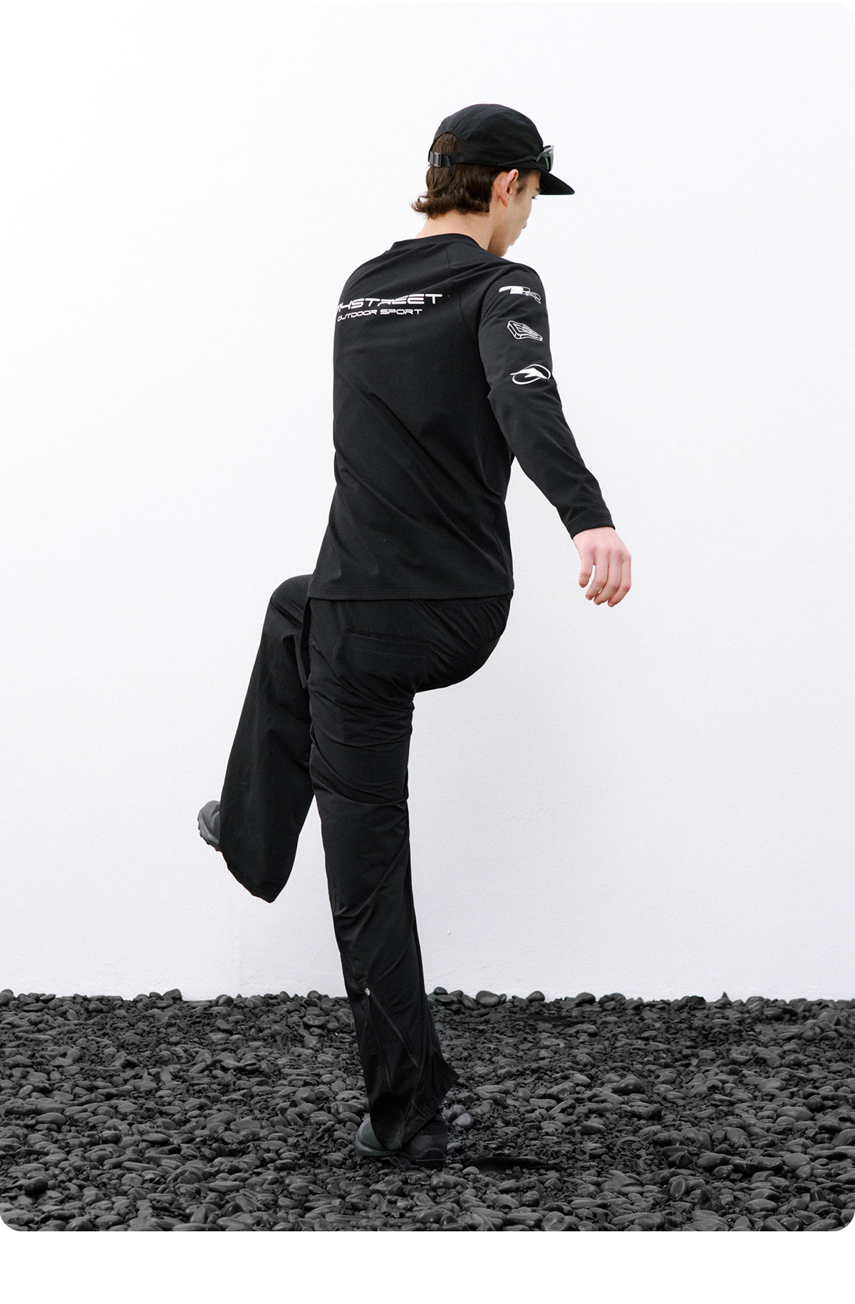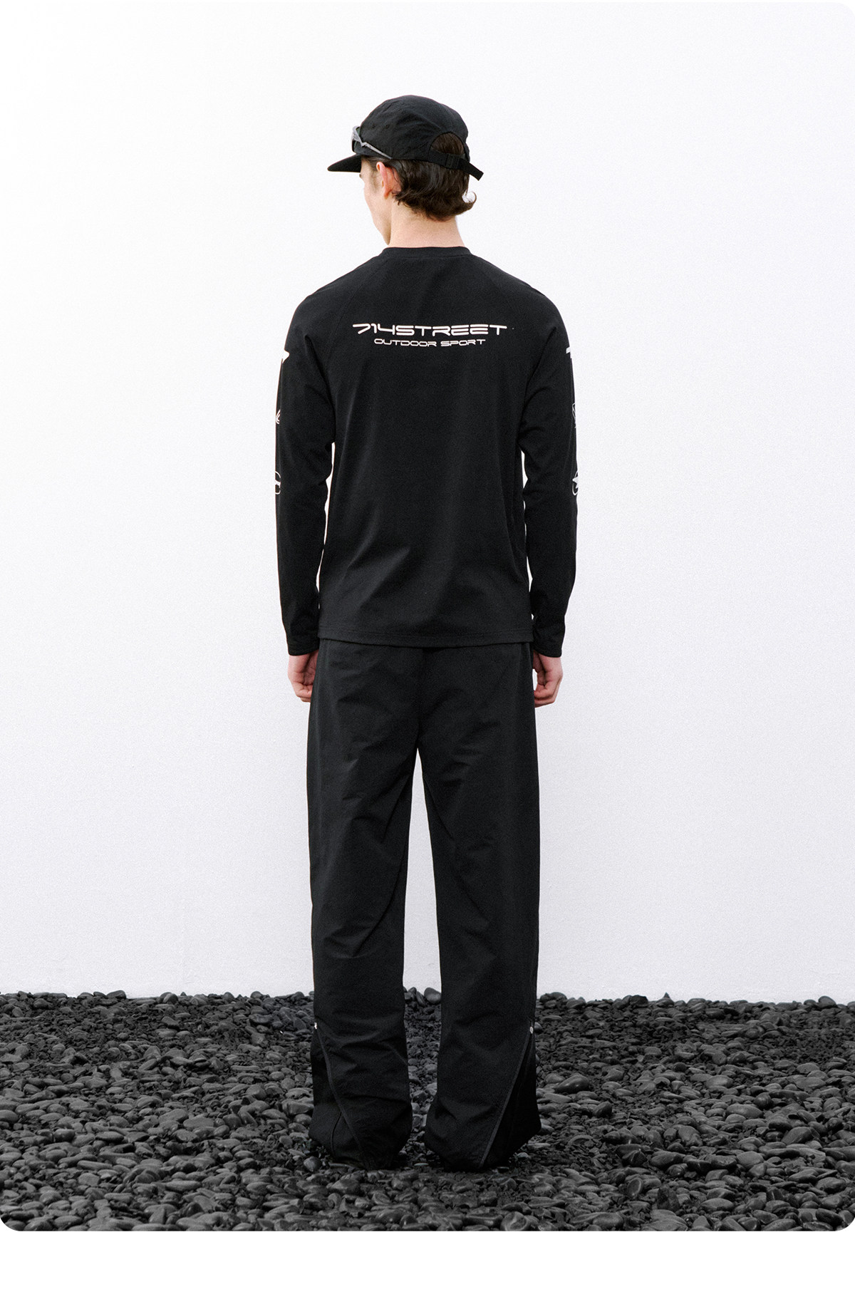 714street赛车元素运动长袖打底衫春夏吸湿速干户外凉感黑色T恤男