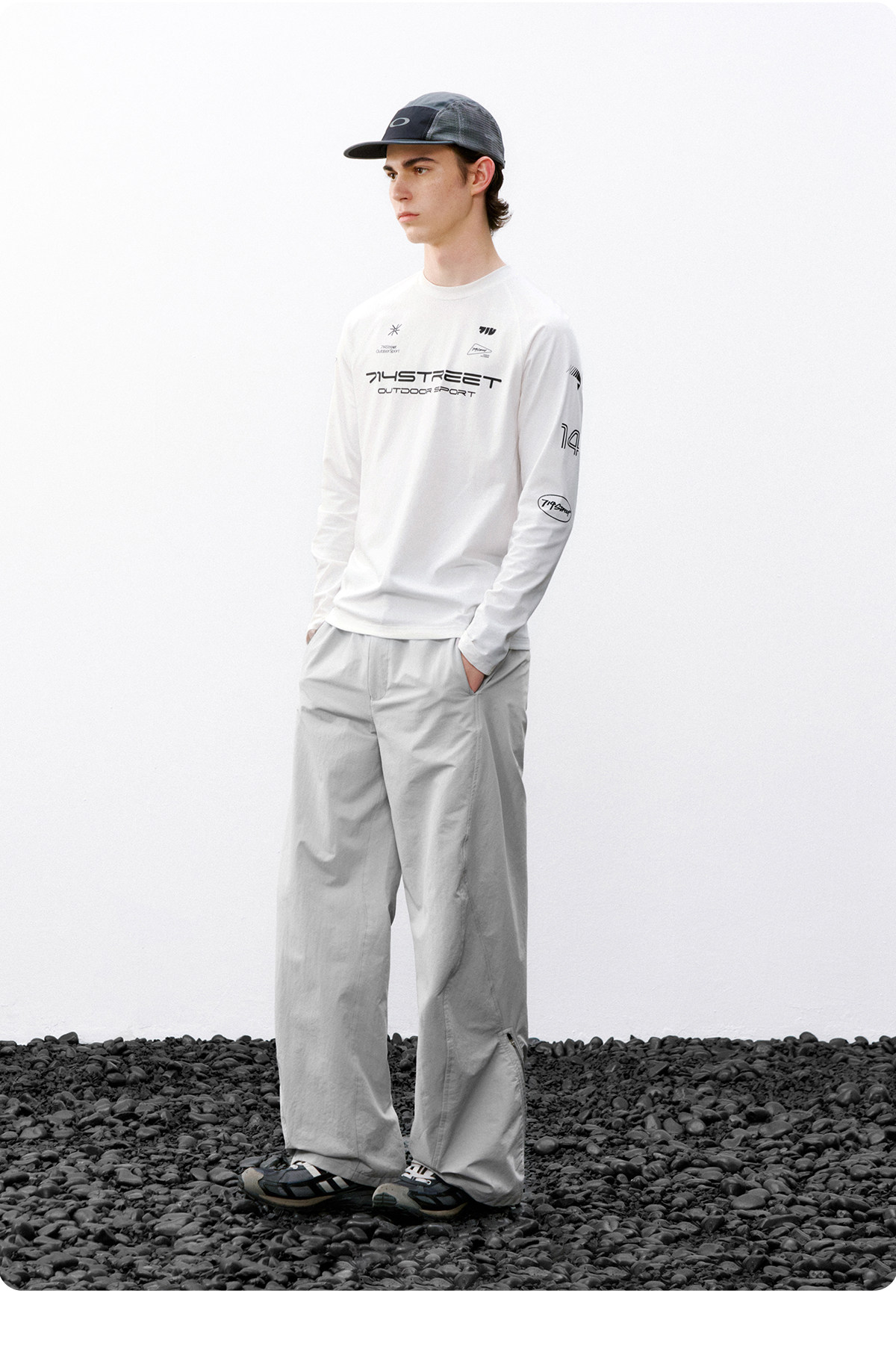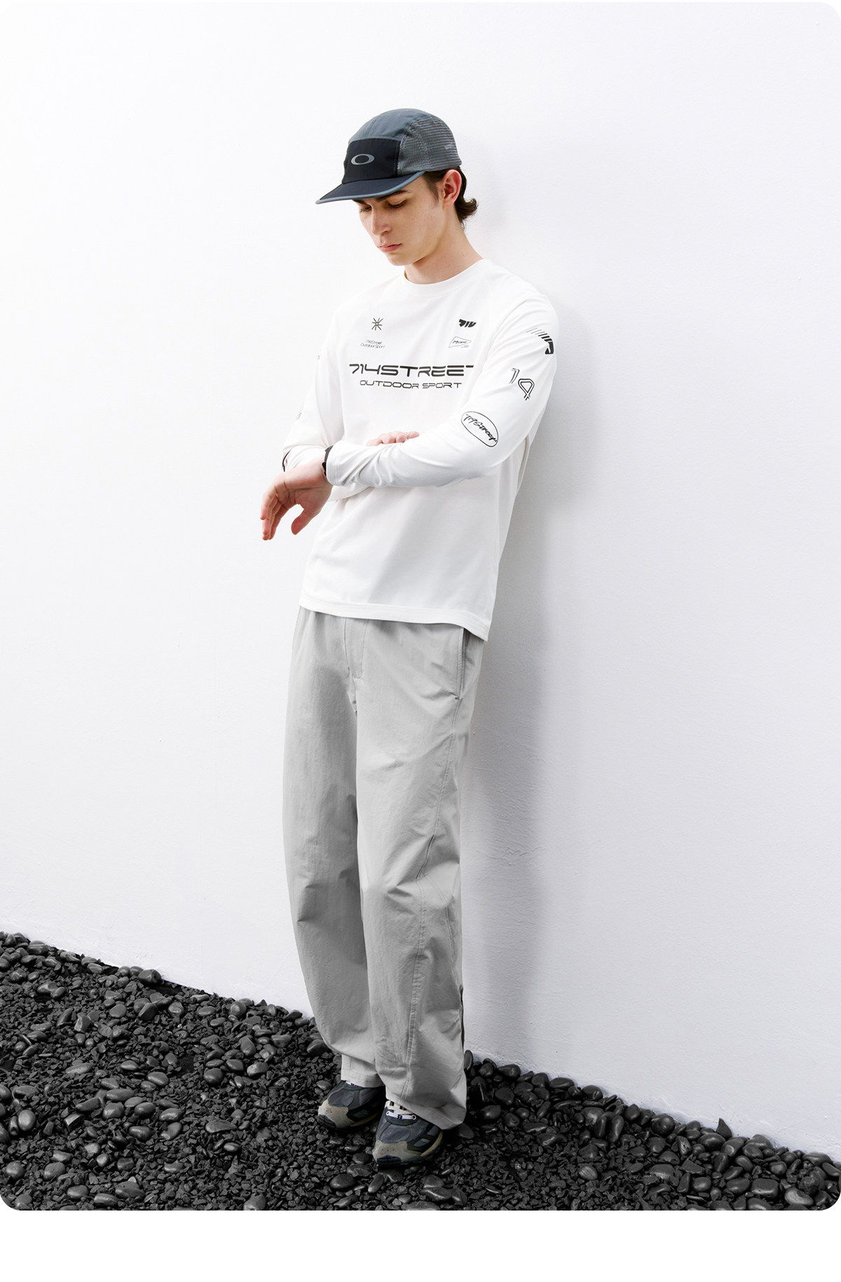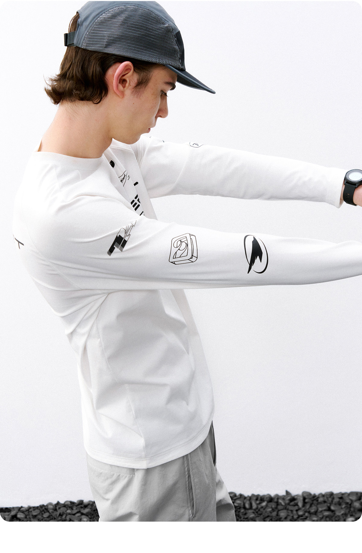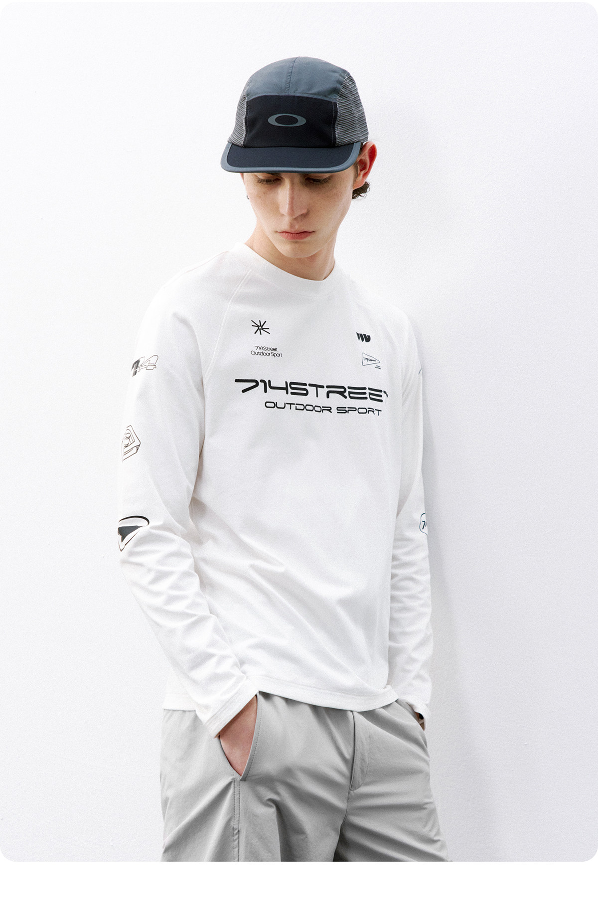 714street赛车元素运动长袖打底衫春夏吸湿速干户外凉感黑色T恤男