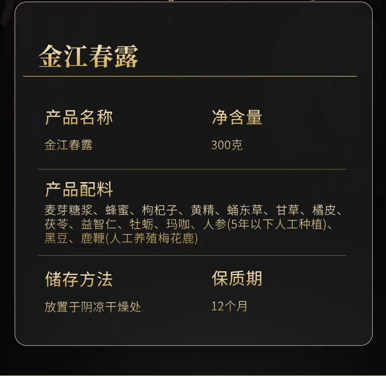 金江春露可以帮助补肾壮阳,金江春露的主要成分是人参、蛹虫草以及黄精等成分,可以帮助改善男性肾虚导致的腰膝酸软以及阳痿早泄等症状,服用之后可以帮助延长男性性生活时间以及改善男性精力欠佳等症状,服用之后可以帮助很好的改善人体气色不好的症状,正确服用对人体是非常友好的。