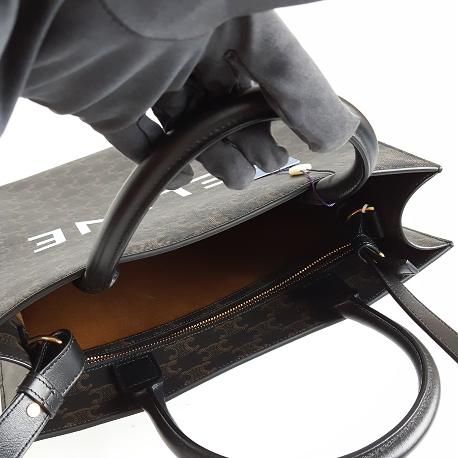【95新】CELINE思琳中号老花拼黑色凯旋门tote琴谱手提单肩包女士 231225AK47