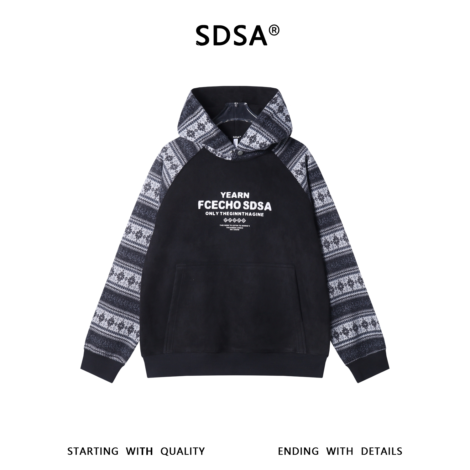 WY1575SDSA男士秋冬新款痞帅男装美式拼接趣味条纹印花字母连帽卫衣百搭