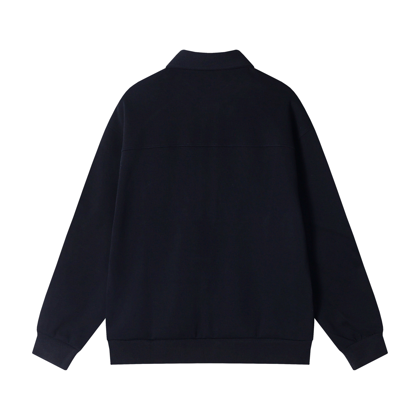 WY583新款翻领纽扣蜘蛛刺绣设计长袖翻领卫衣纯色百搭休闲上衣
