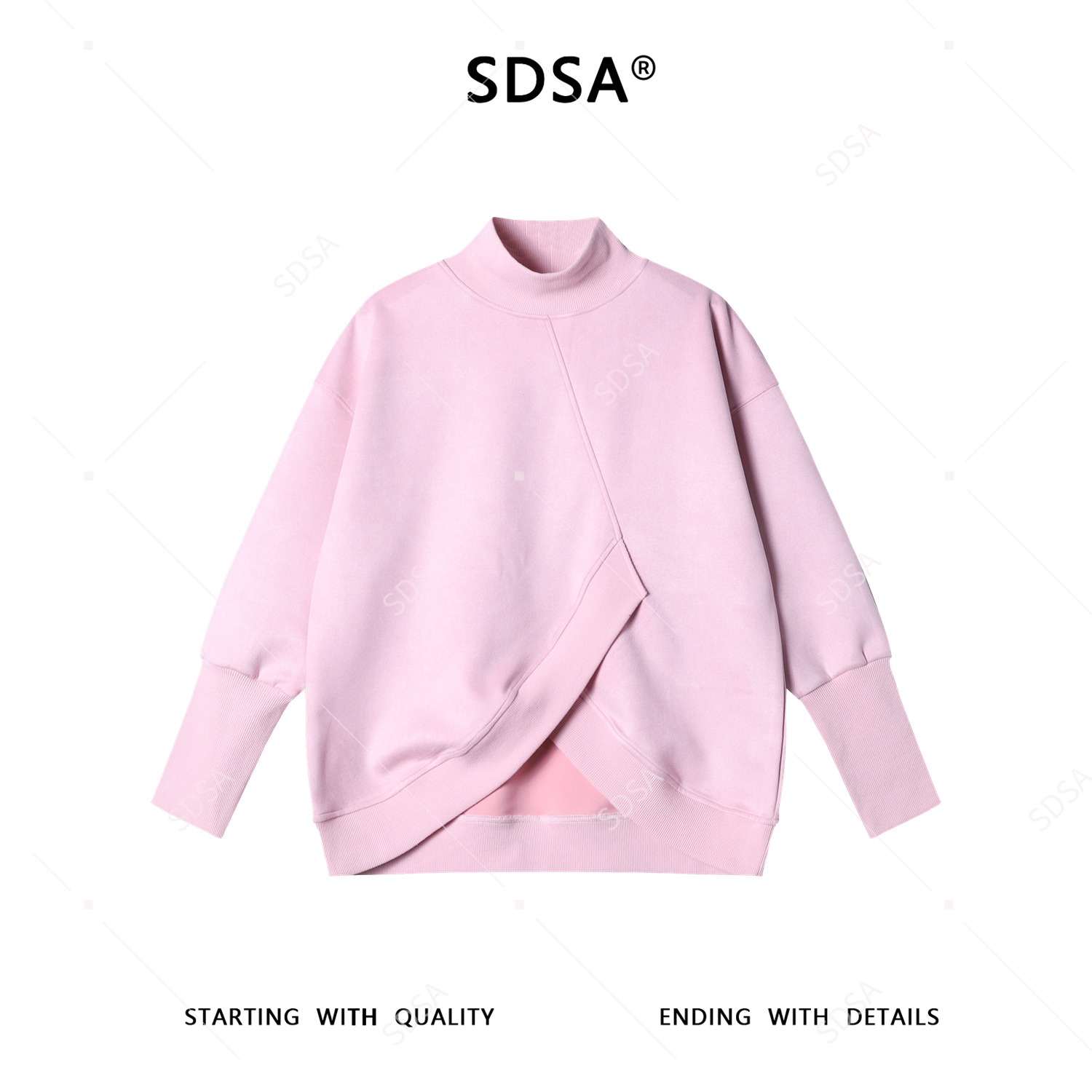 SDSA男士秋冬新款痞帅男装韩版简约纯色植绒下摆不规则立领卫衣