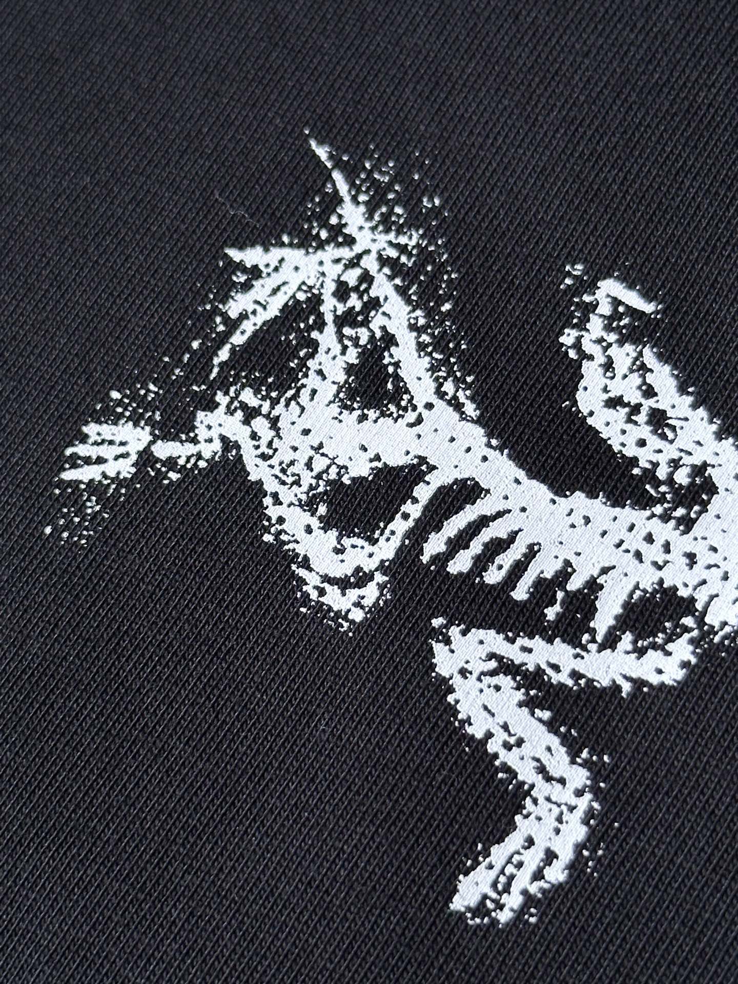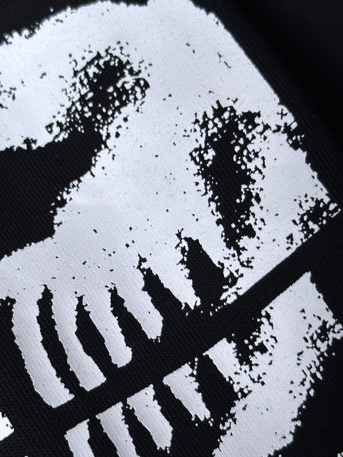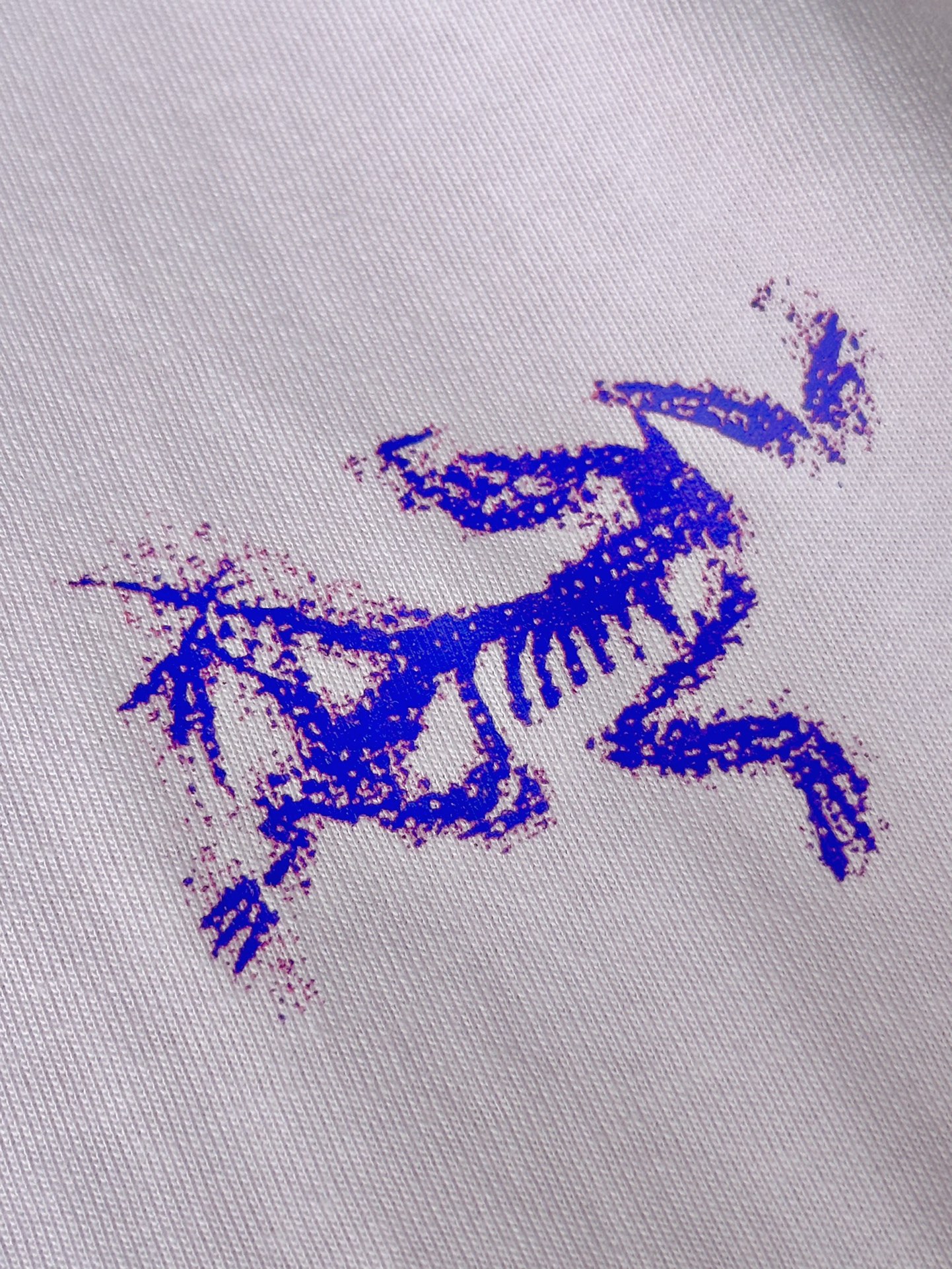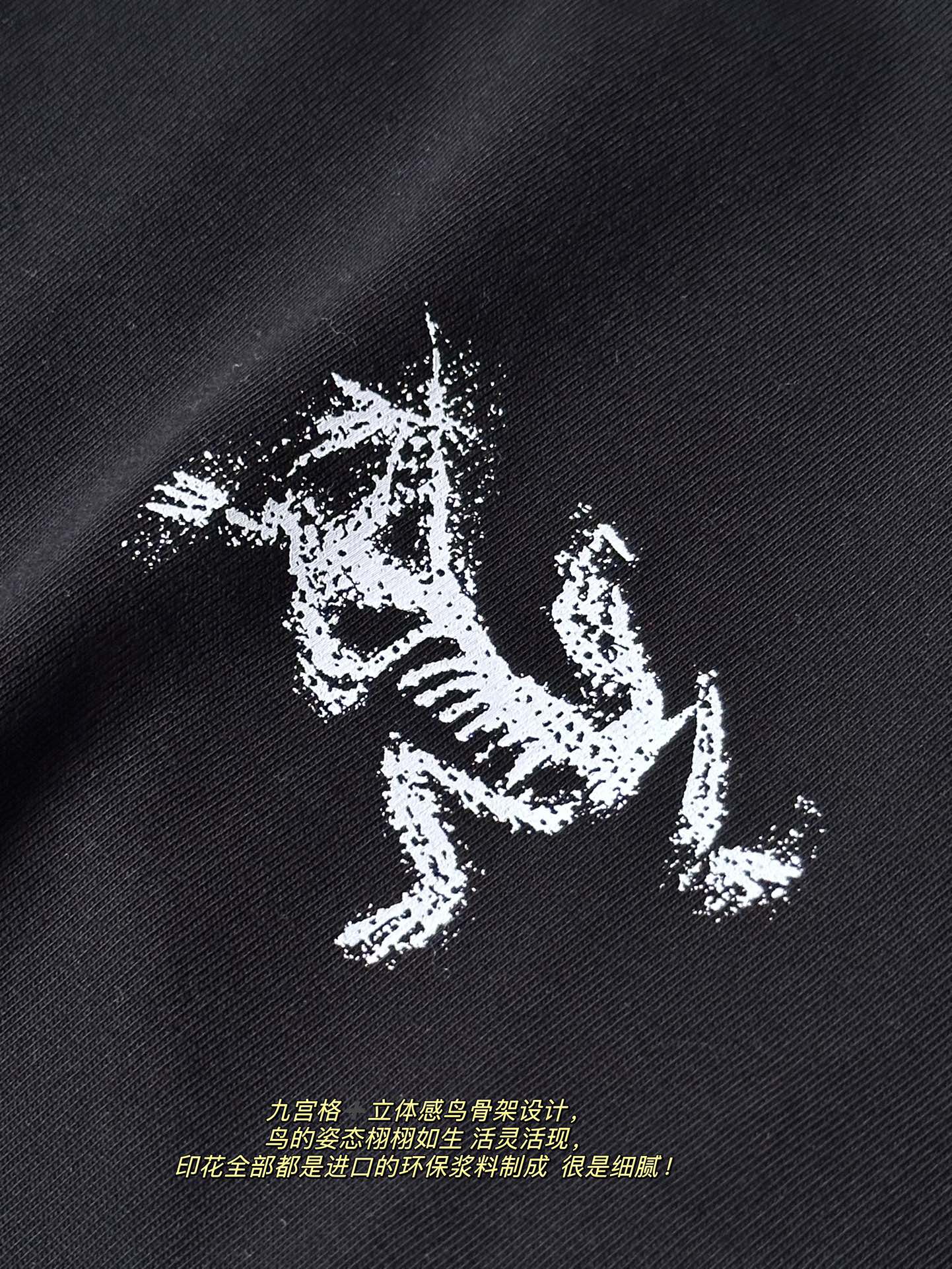 后背超大篇幅的溶解鸟印花,颗粒状的印花全部高温加固,穿洗不易开裂,脱落!!!