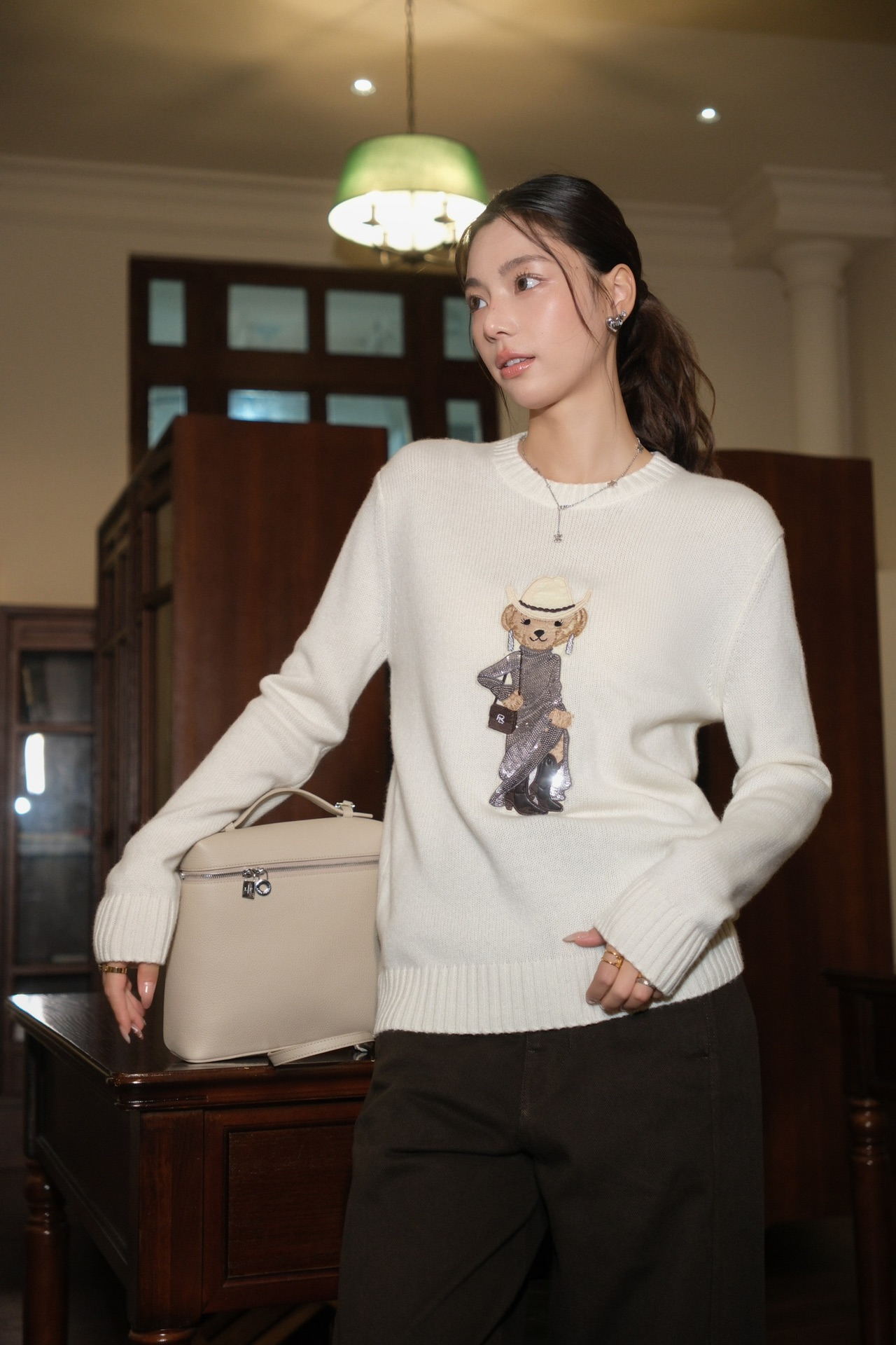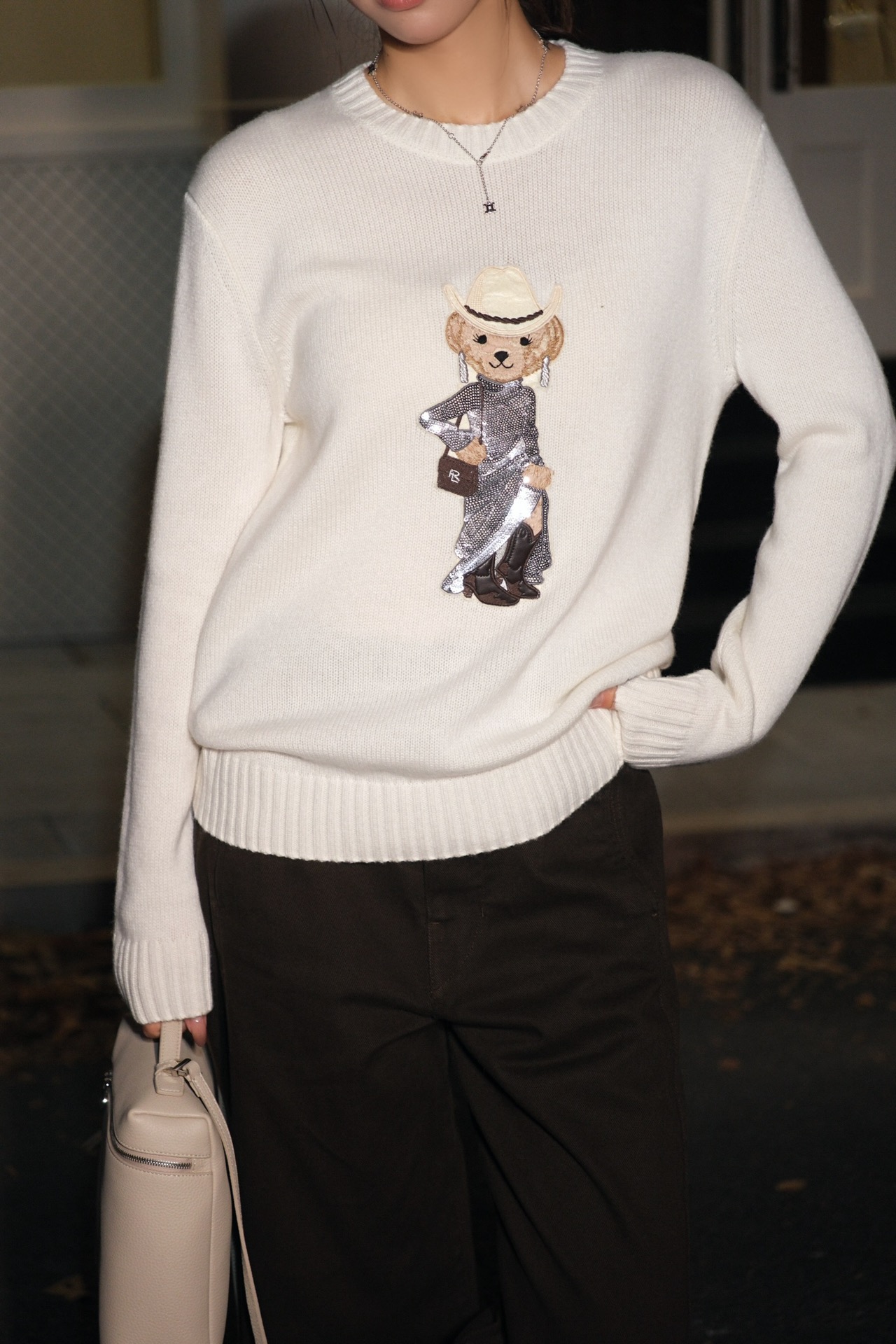 坚持经典永恒的穿搭 打造轻松舒适的雅致单品 轻薄透气又保暖 摩登时尚的晚礼小熊章仔➕刺绣工艺呈现立体感 栩栩如生,简单又高级 在极简的款式上,延续随性自在的版型 整体设计别致俏皮又温婉 轻松get时髦度